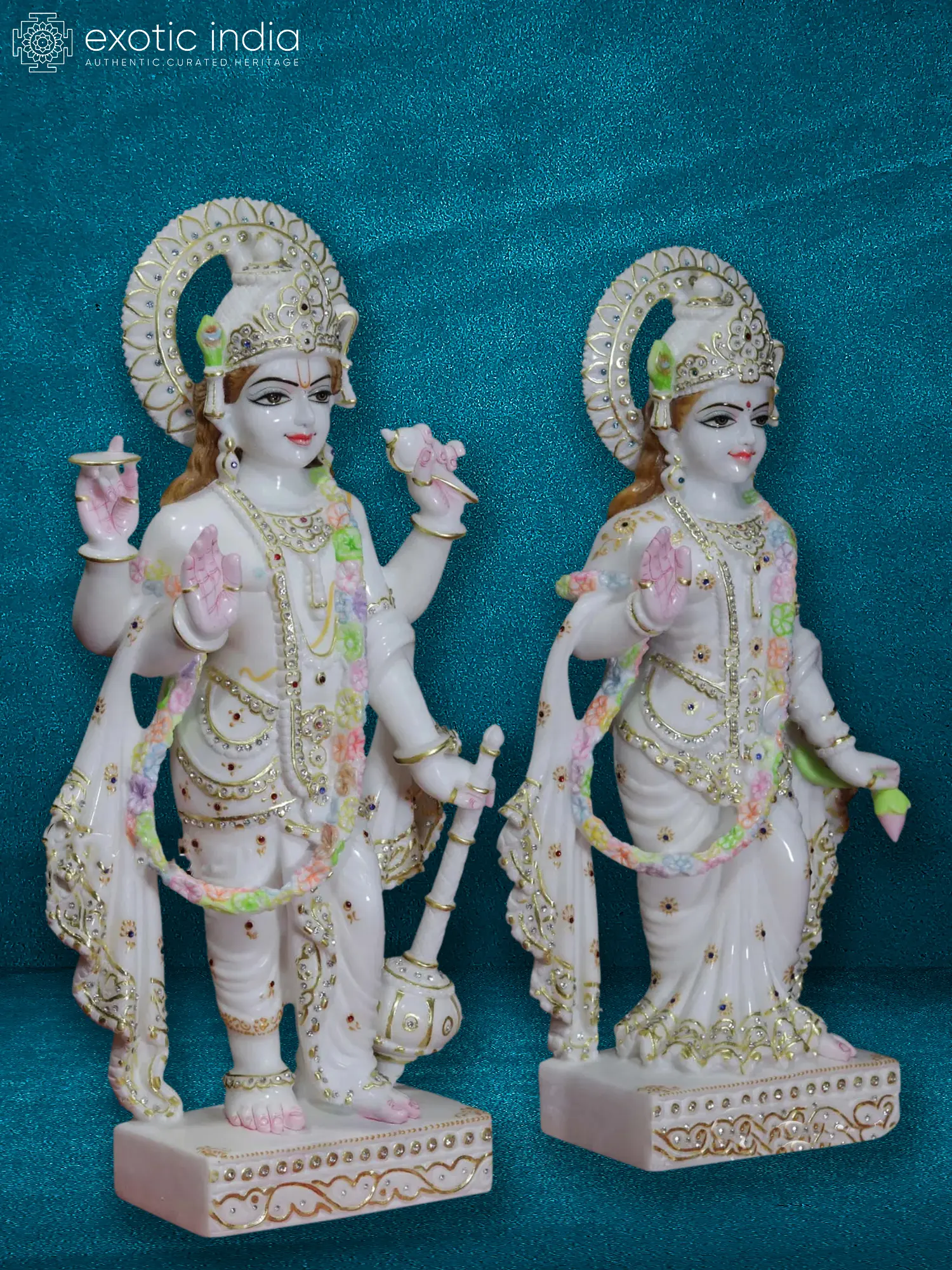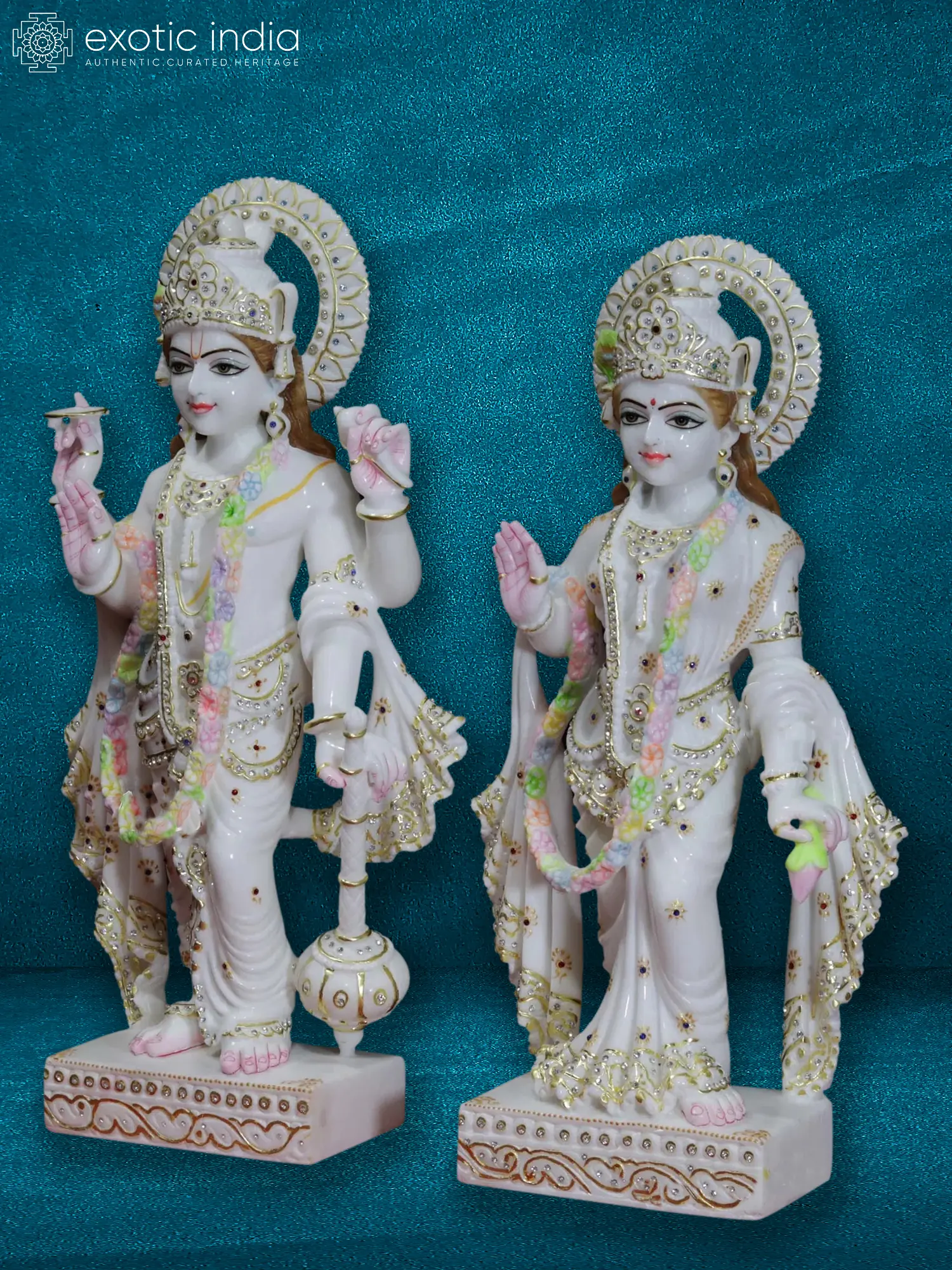 10" Goddess Lakshmi And Lord Narayan Statue | White Makrana Marble Idol