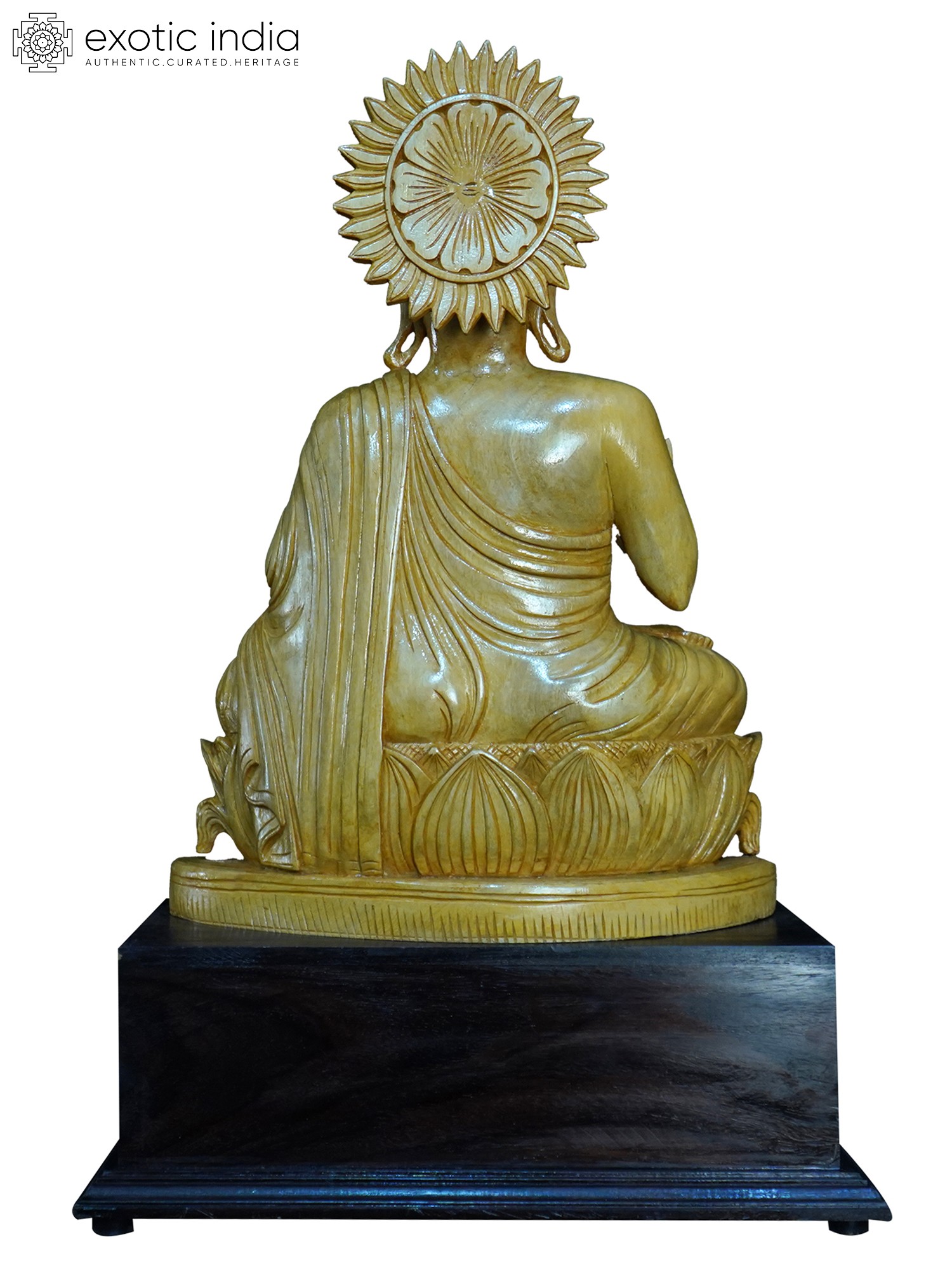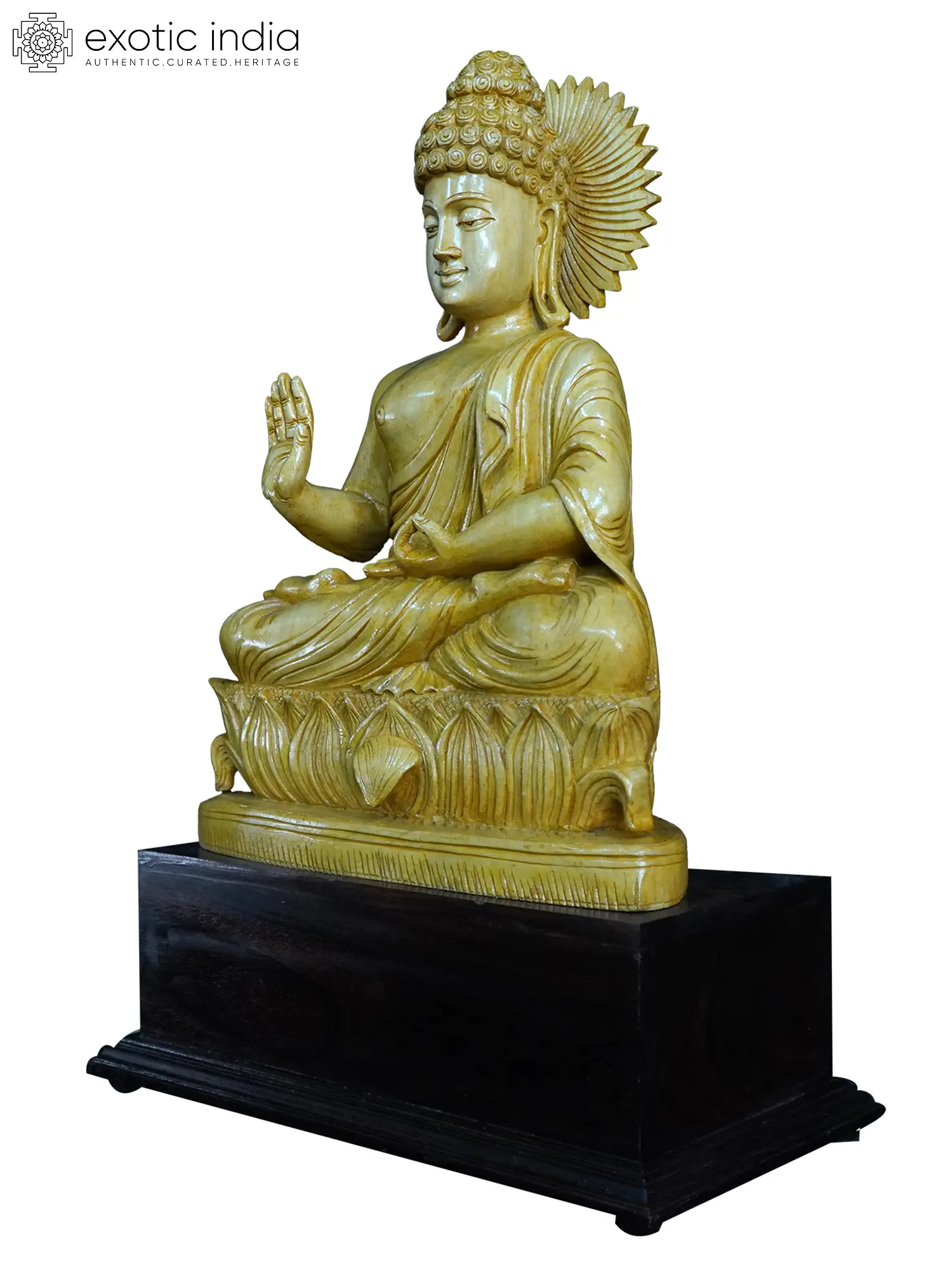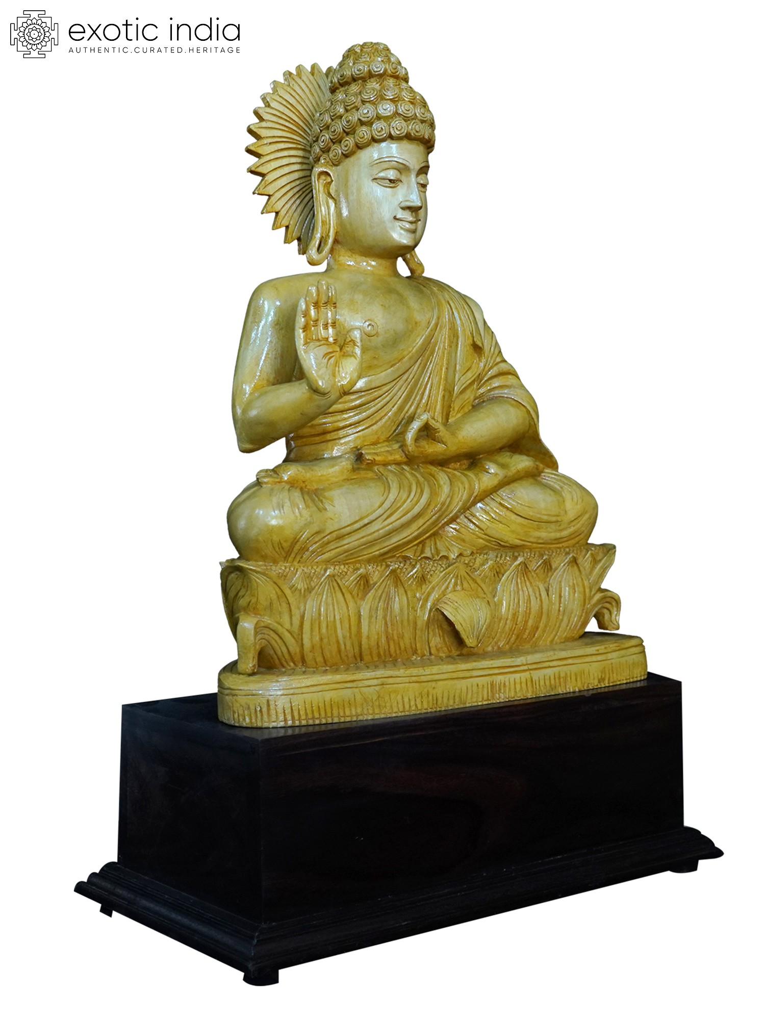 18" Standing Lord Buddha in Vitark Mudra on Lotus Pedestal | Wood Carved Statue
