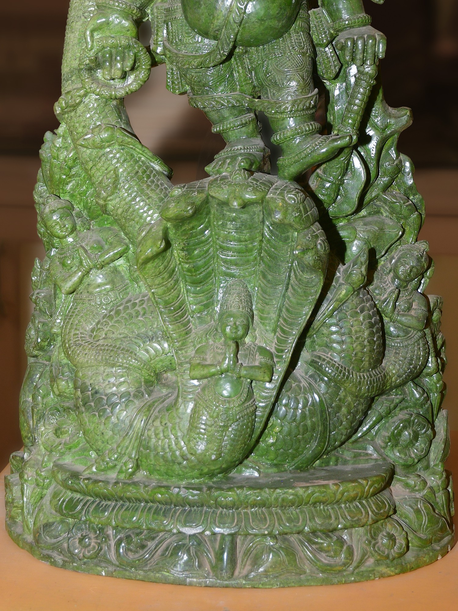 Hailing from the culturally rich state of Odisha in eastern India, this sculpture is a testament to the region's ancient and revered tradition of stone carving. Orissa stone, known for its resilience and the unique way it holds intricate carvings, has been the medium for countless devotional art pieces for centuries. The artisans of Odisha possess a lineage of skill passed down through generations, mastering the art of transforming raw stone into objects of profound spiritual and aesthetic value. This particular piece showcases their mastery of form, texture, and narrative, creating a sculpture that is not merely an idol but a narrative woven in stone, inviting contemplation and devotion. The sheer scale and meticulous detail of this artwork make it a truly captivating centerpiece, embodying both the power of the divine and the enduring legacy of Indian art.