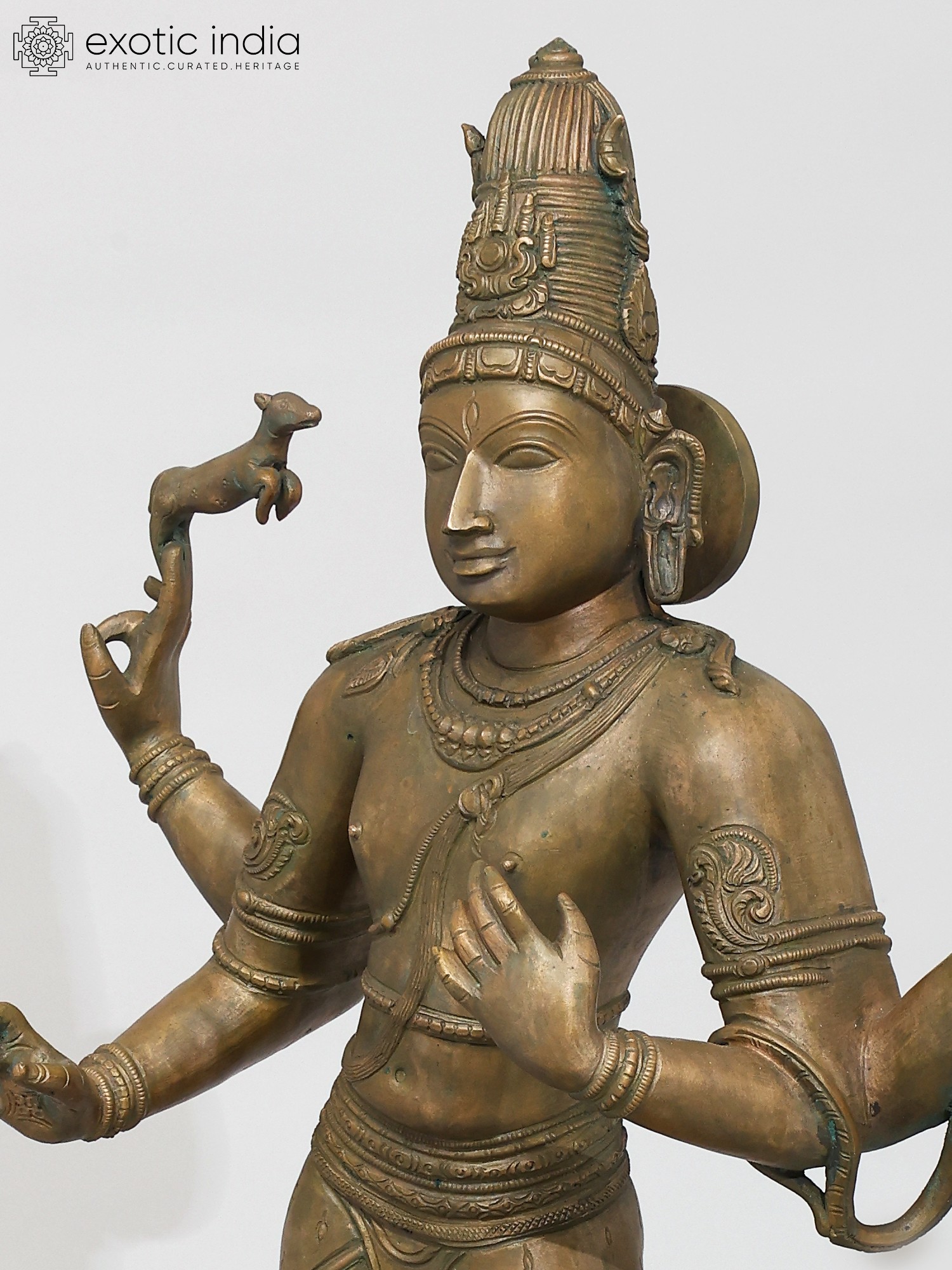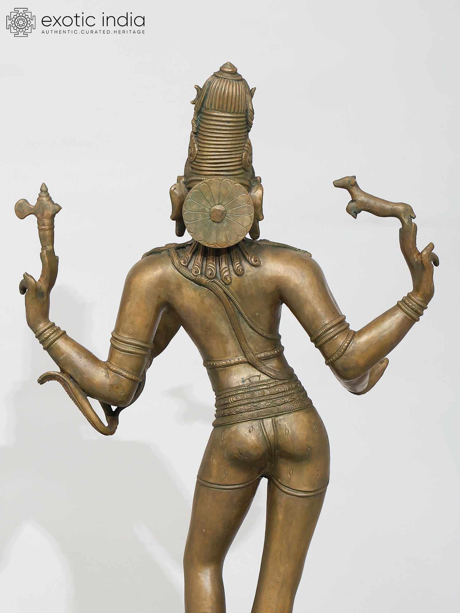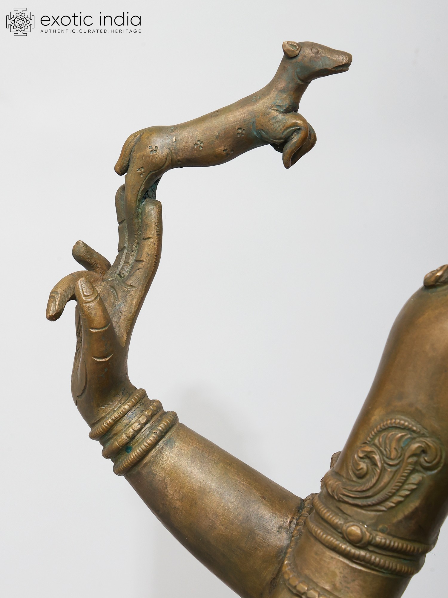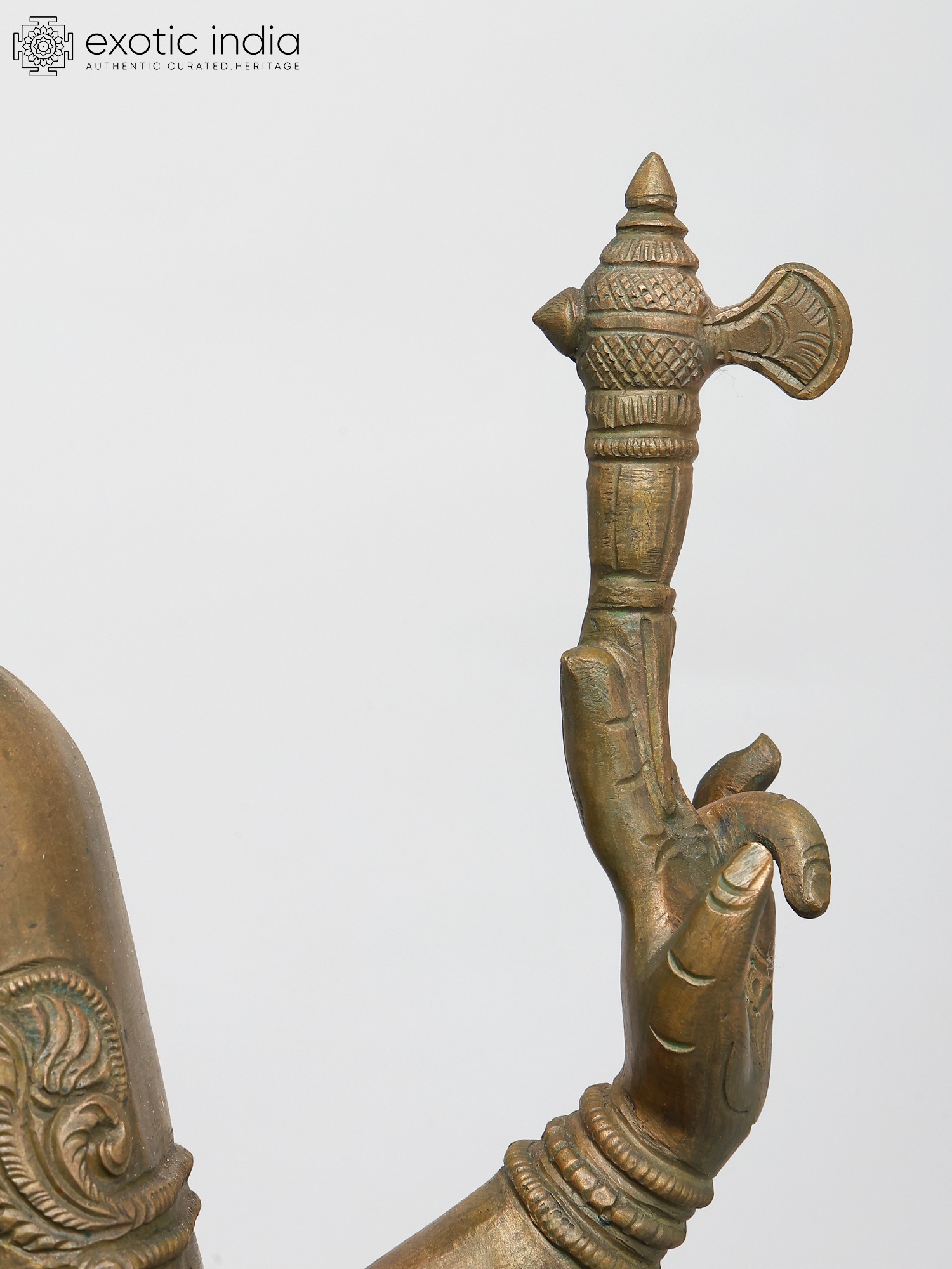In addition to carrying the goad and Pashu (deer insignia), which stand for restraint, Shiva's primary hands are stretched in an exquisite gesture of holding the Veena. Shiva is the perfect teacher, fostering creativity with the melodies of his lute and guiding the soul or Pashu in the proper direction with the goad. With him around, no spiritual or material objective is unachievable.