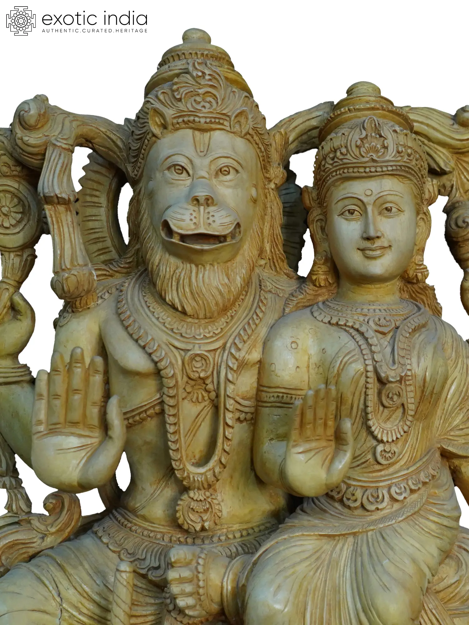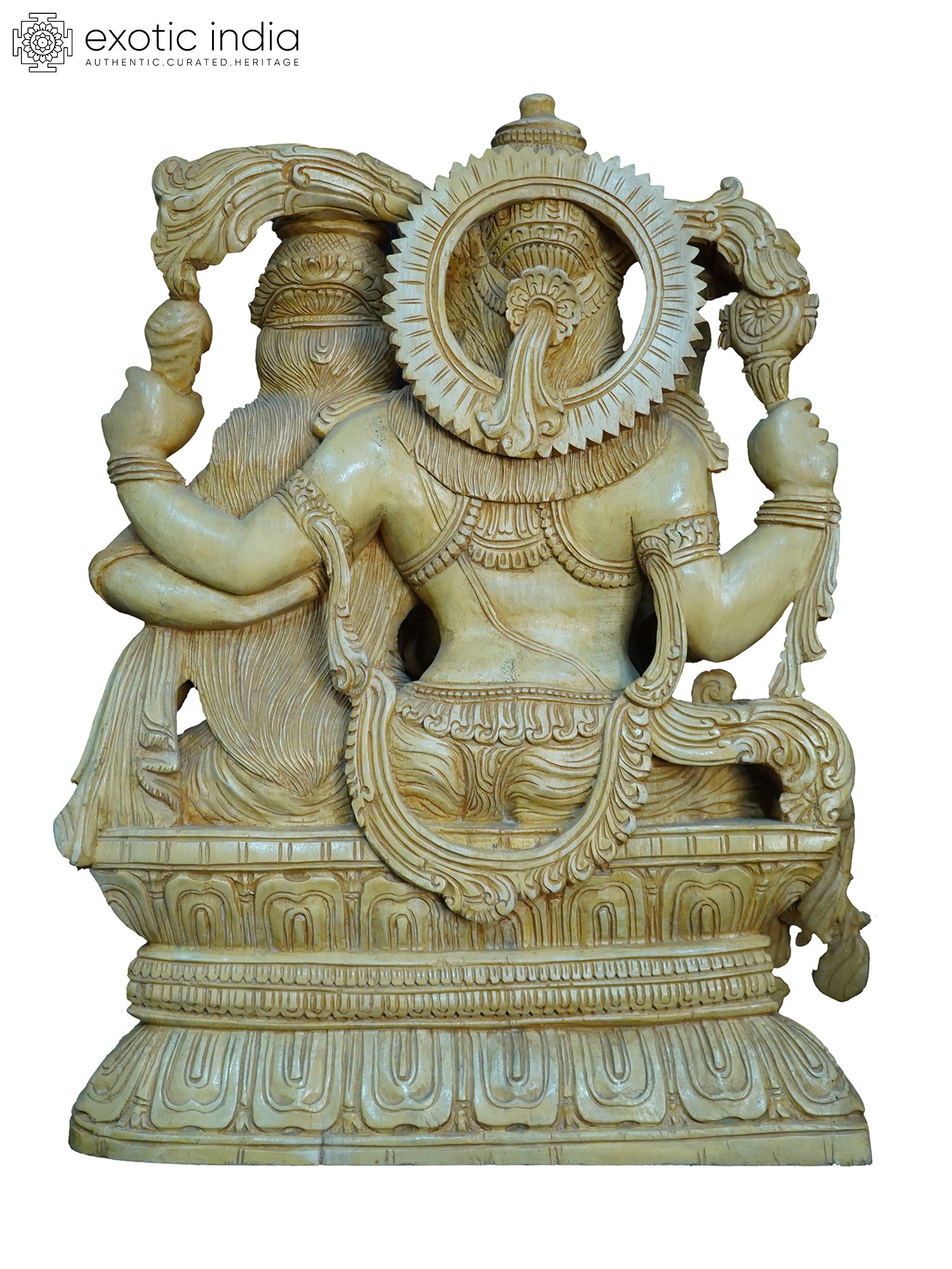 36" Large Lord Hayagriva with Devi Lakshmi | Wood Carved Statue