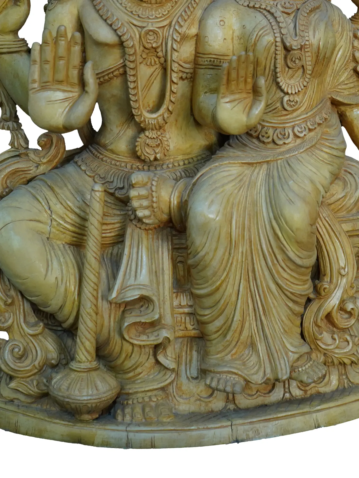 16'' Lakshmi Narayana Seated Together | Wooden Statue