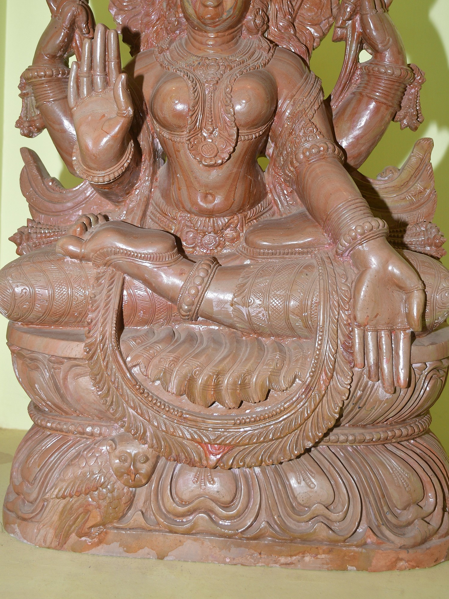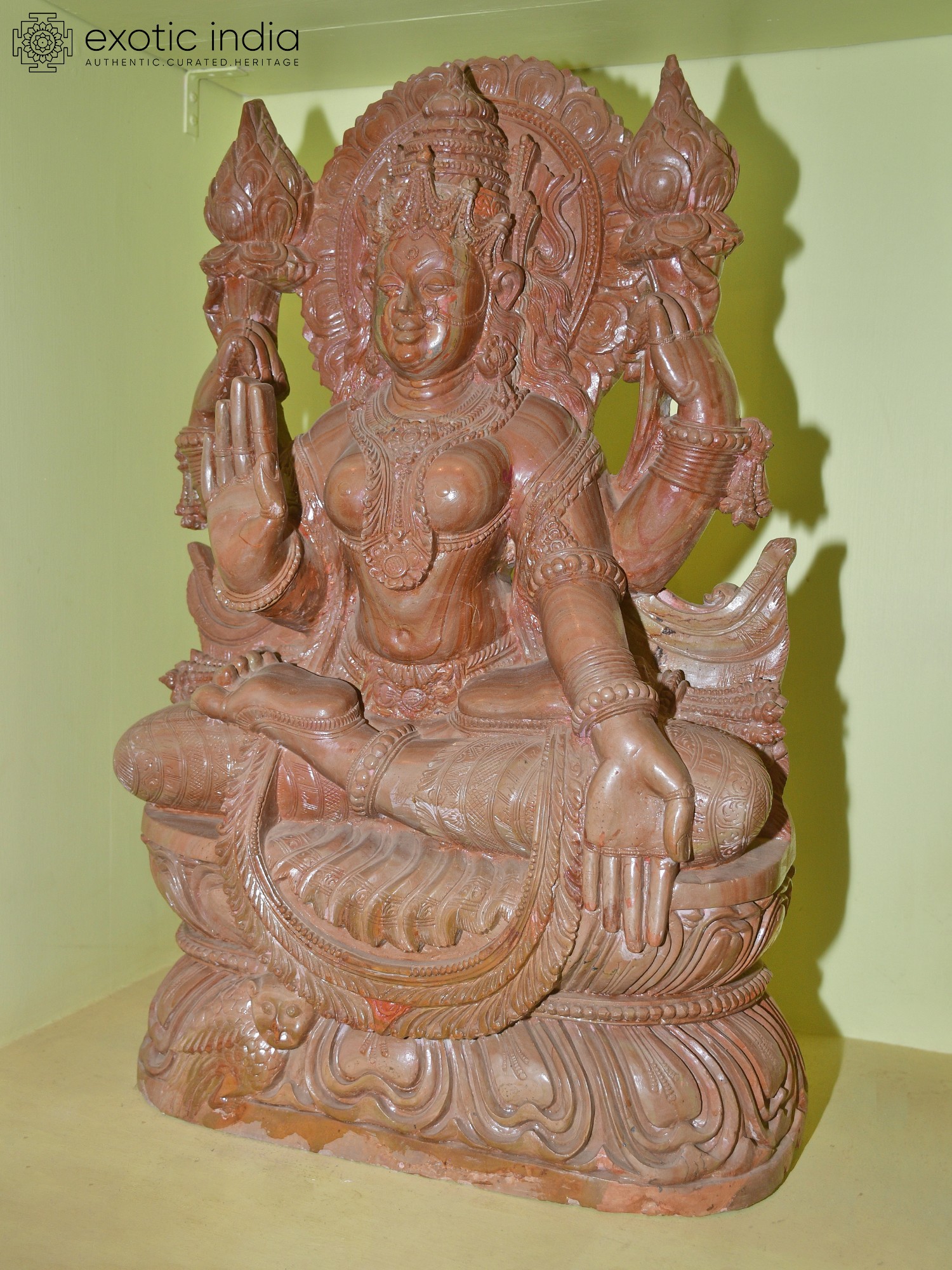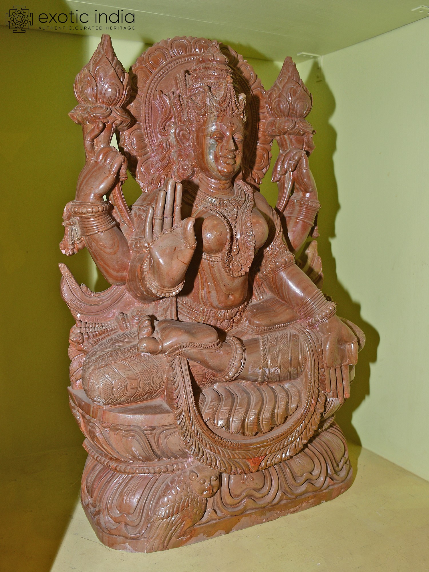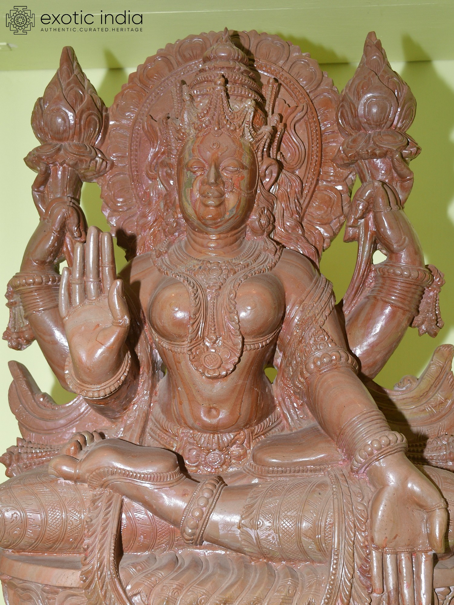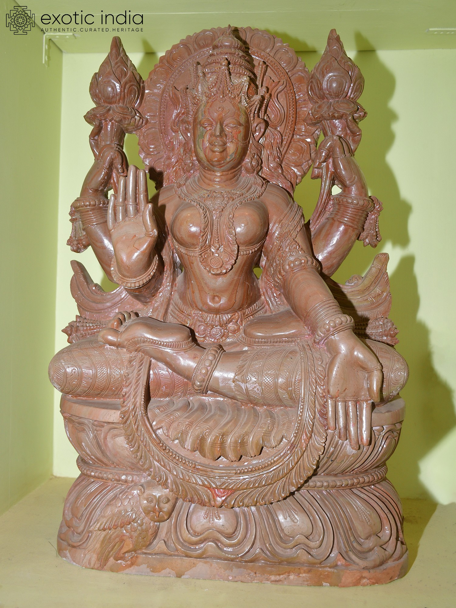 29" Four Armed Sitting Devi Lakshmi Statue | Brass with Inlay Work
