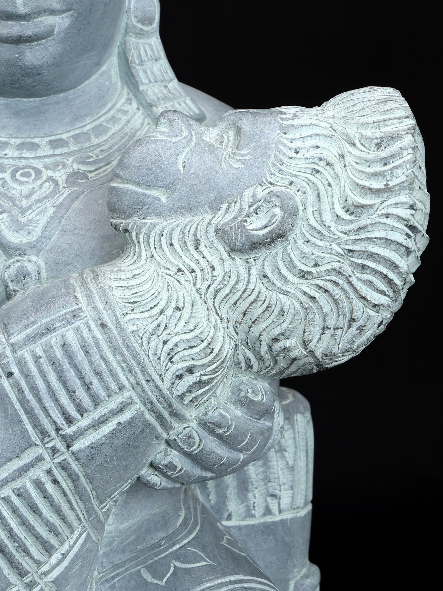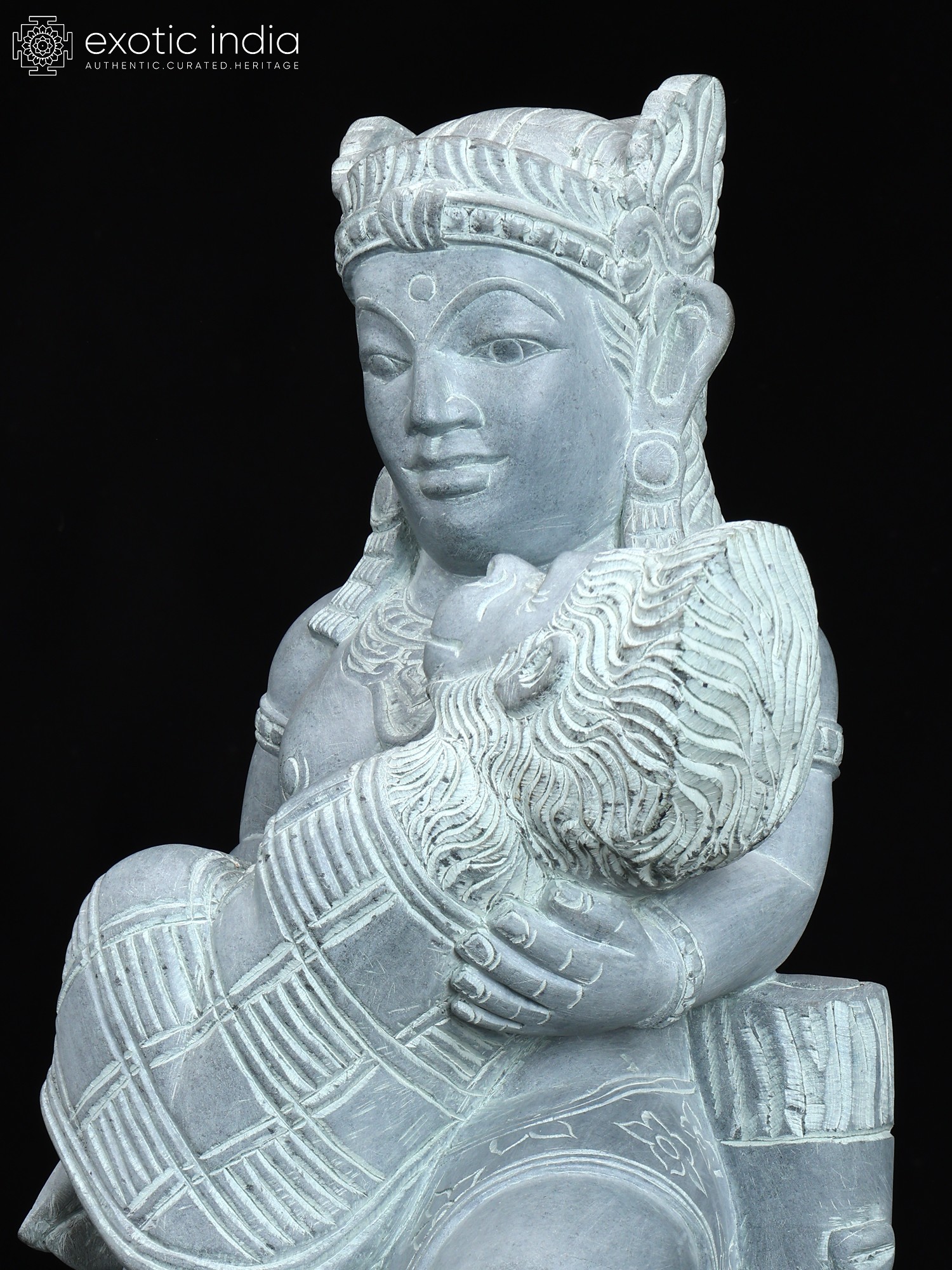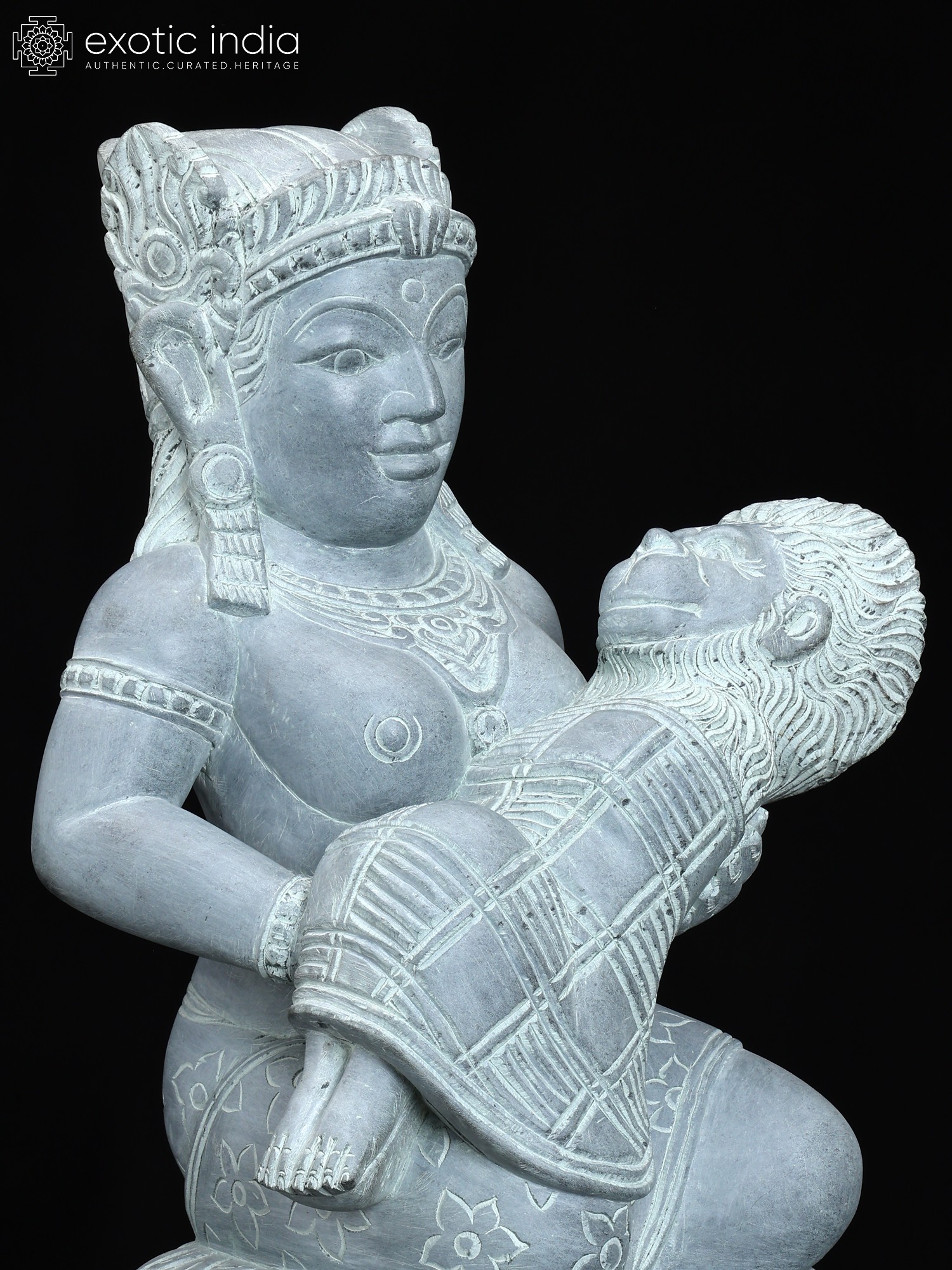 24" Mata Anjani with Baby Hanuman | Granite Stone Statue from Mahabalipuram