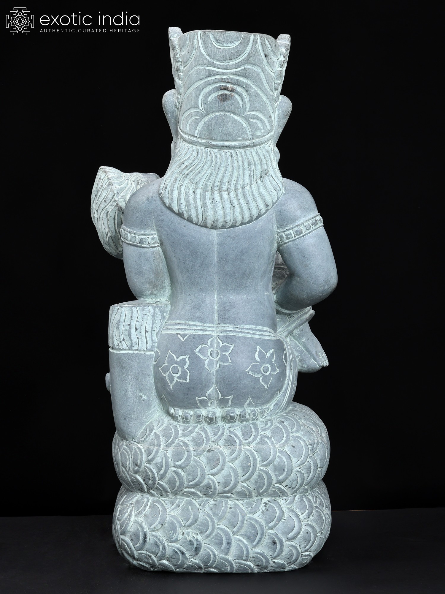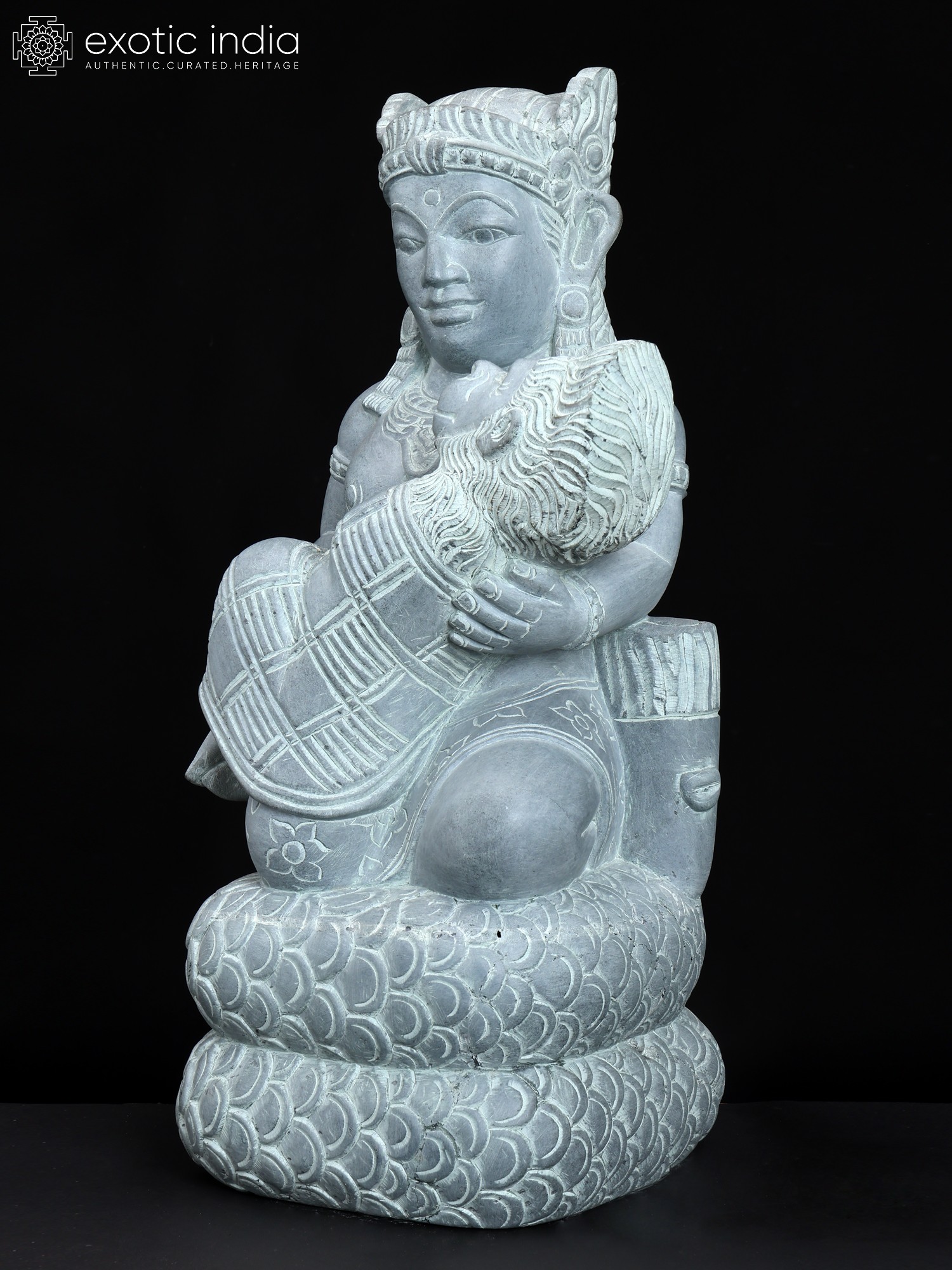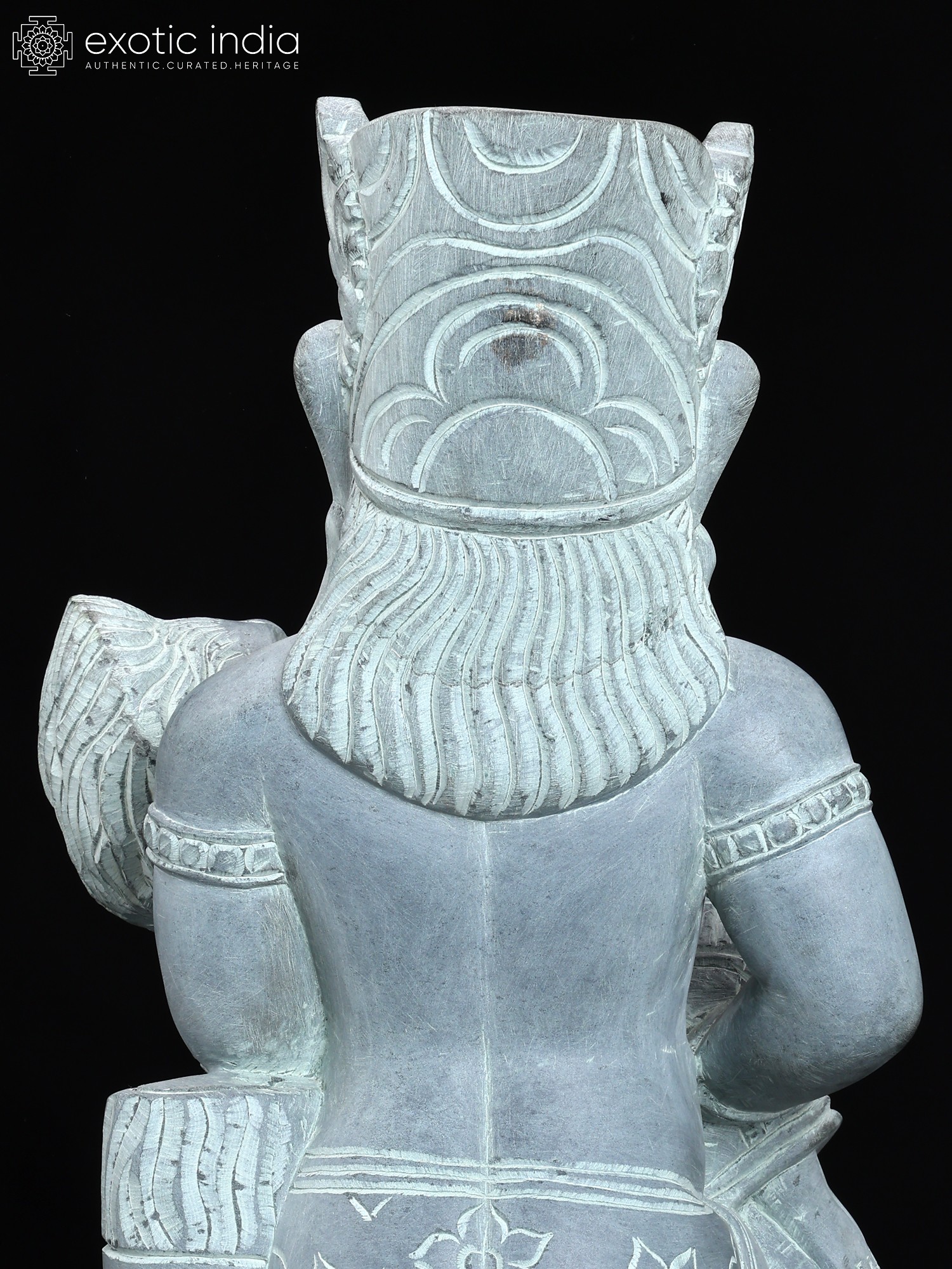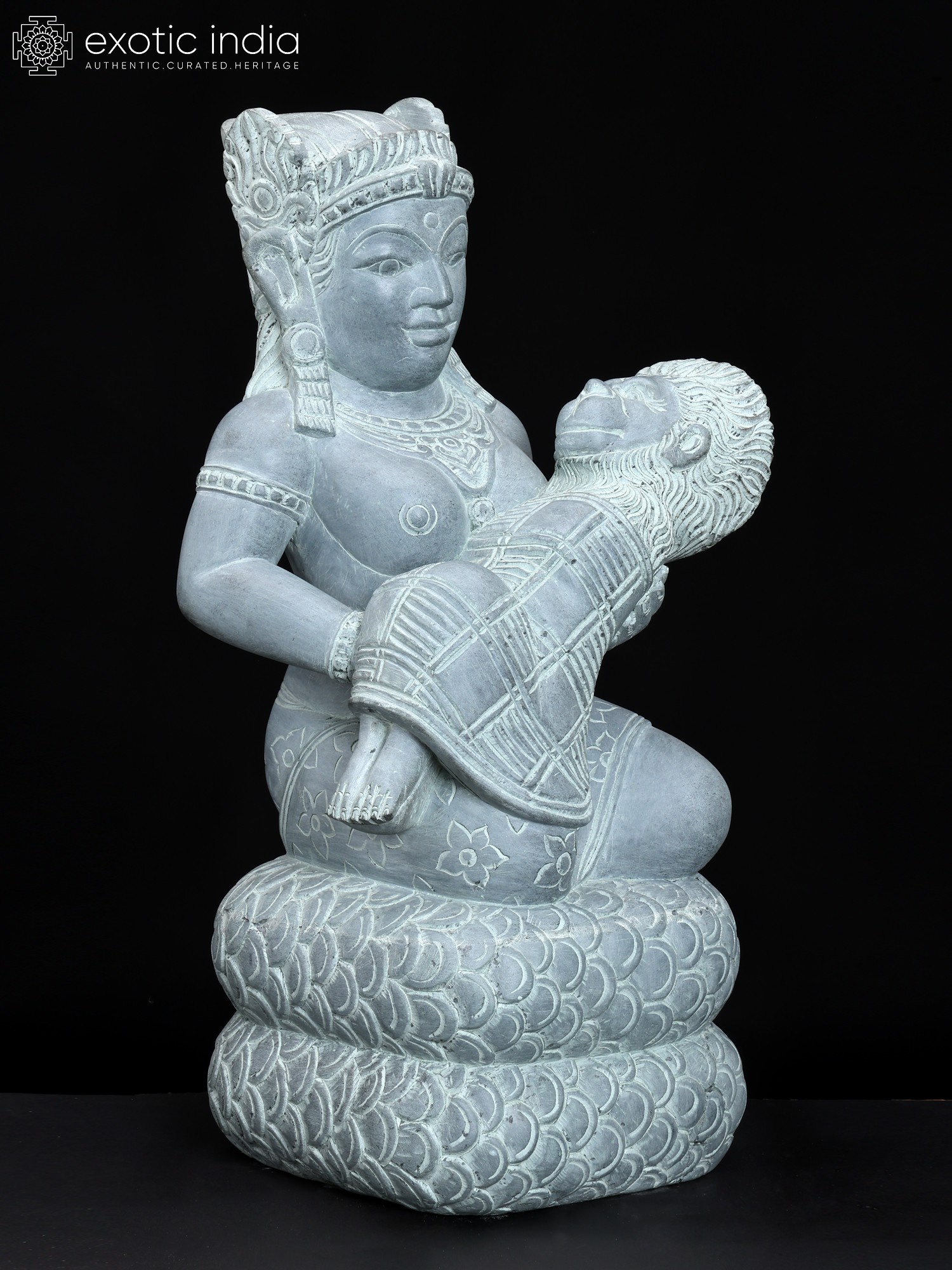 24" Mata Anjani with Baby Hanuman | Granite Stone Statue from Mahabalipuram