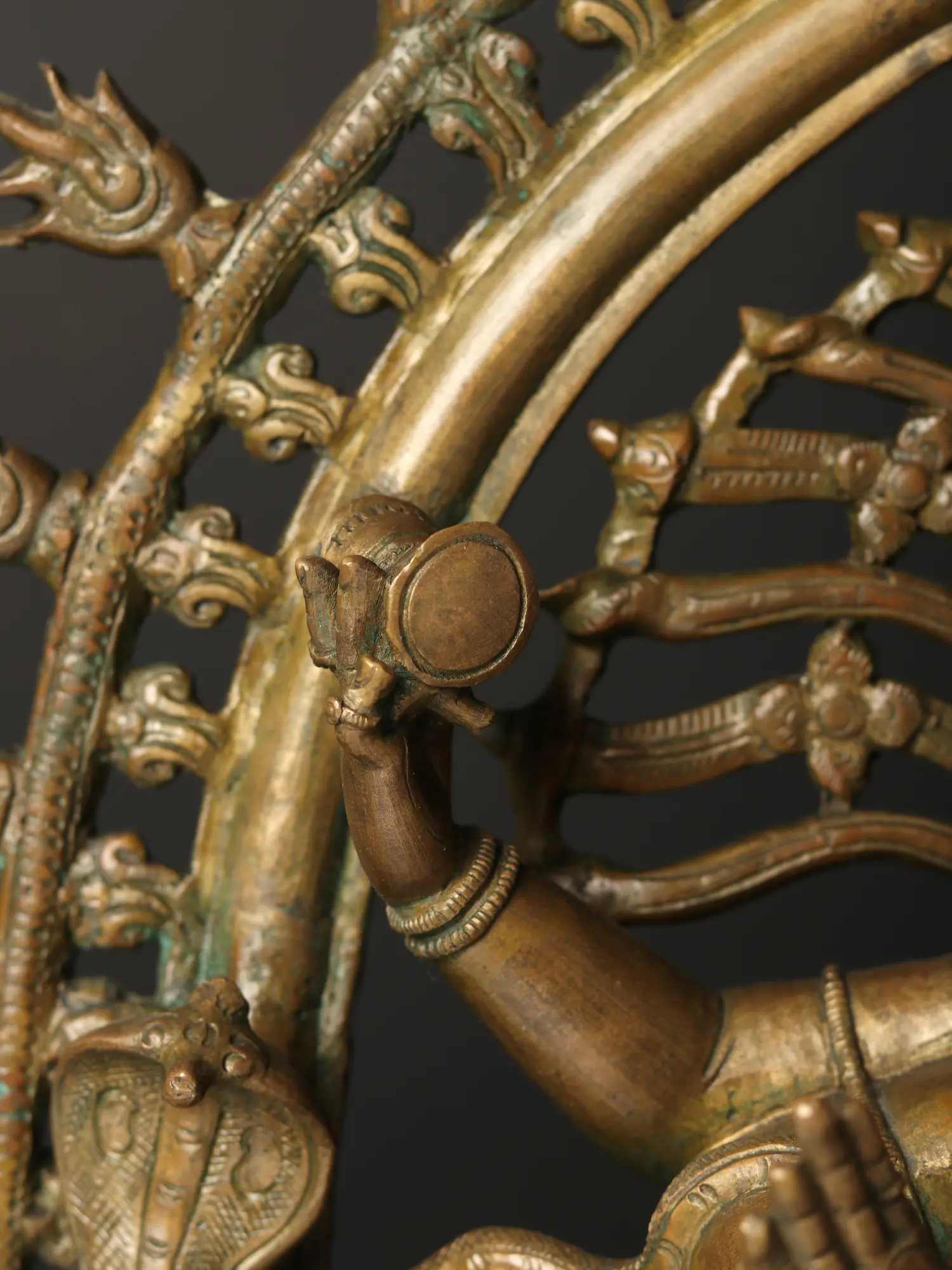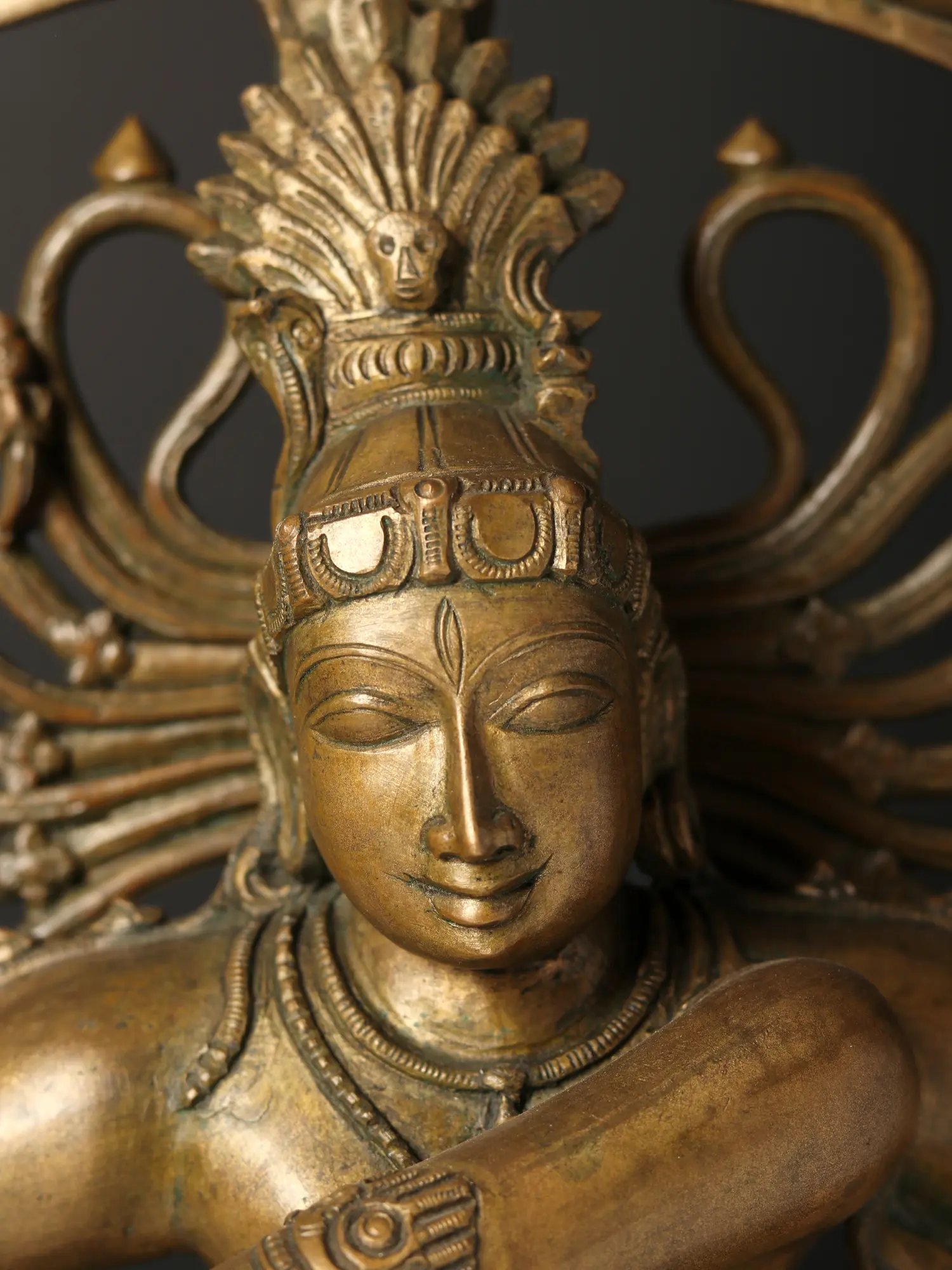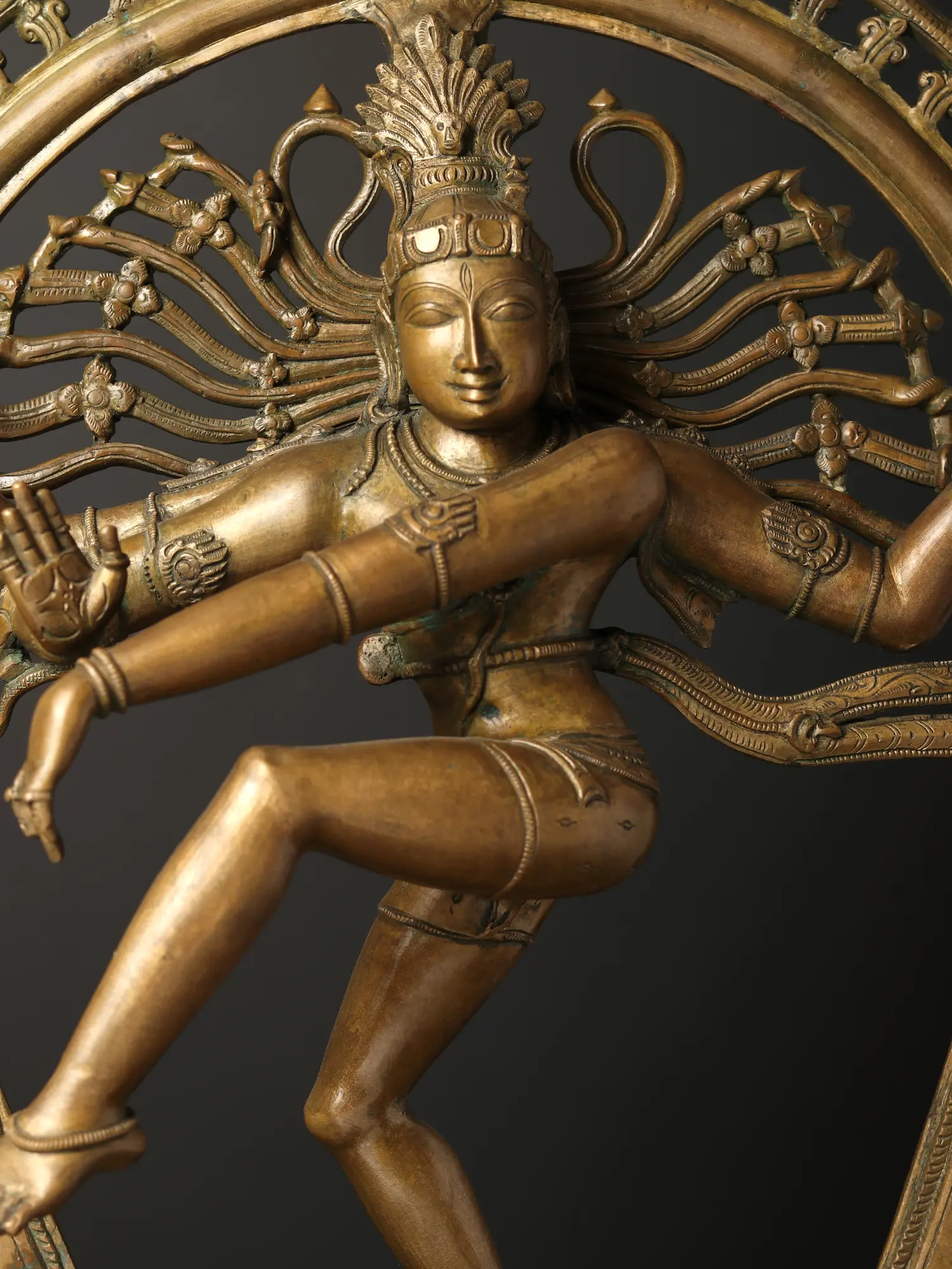 “Shivananda Kuttu”- Shiva’s dance of delight is how the Tamil text Tirumantiram describes the Nataraja form. Enthralling the three realms, Shiva as Nataraja or Lord of Dance is the representative icon of Panchaloha tradition of Swamimalai. This splendid bronze statue depicts the awe-inspiring form, standing atop a two-tiered platform, balancing his cosmic dynamism over Apasmara or the demon of ignorance, radiating an aura which is marked by the aureole emerging from the gaping mouth of Makara.