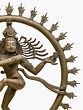 Inside a ring of fire that represents purifying energy that creates and destroys, Shiva dances wearing a crown of feathers, skull, and serpent, his Jata swaying around him.