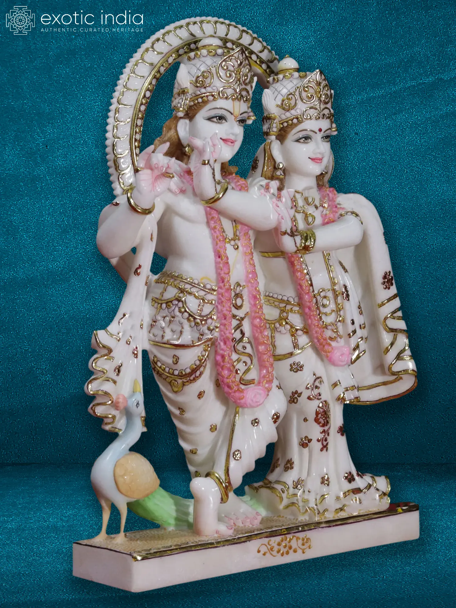 24" Beautiful Statue Of Radha-Krishna | White Makrana Marble Statue