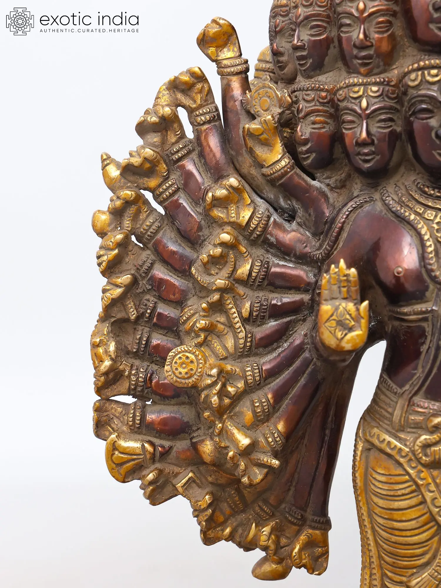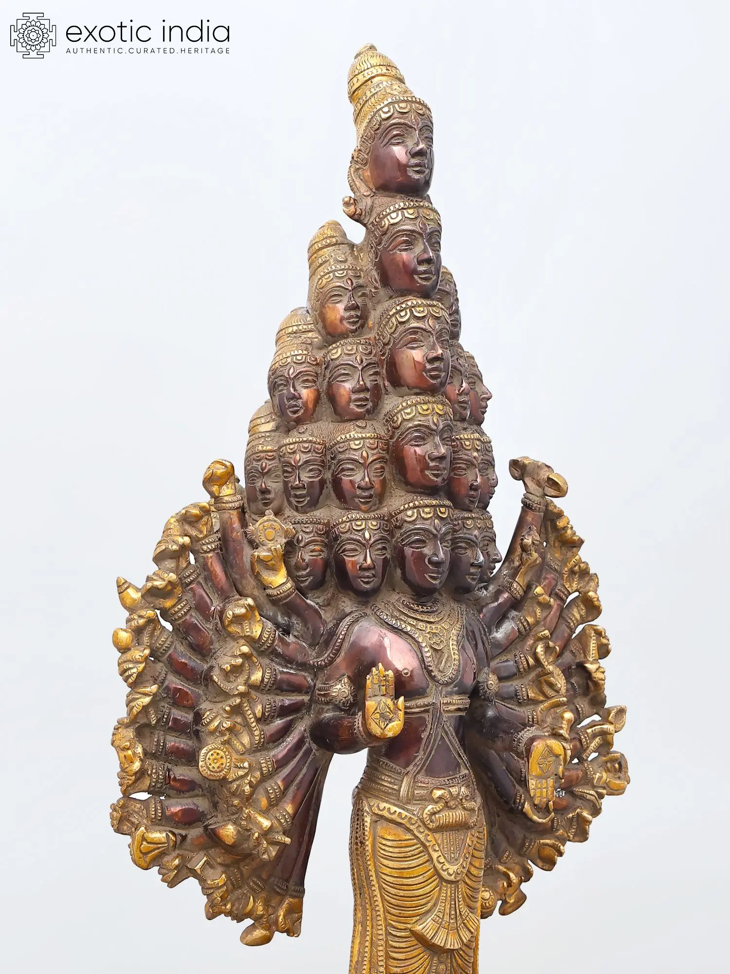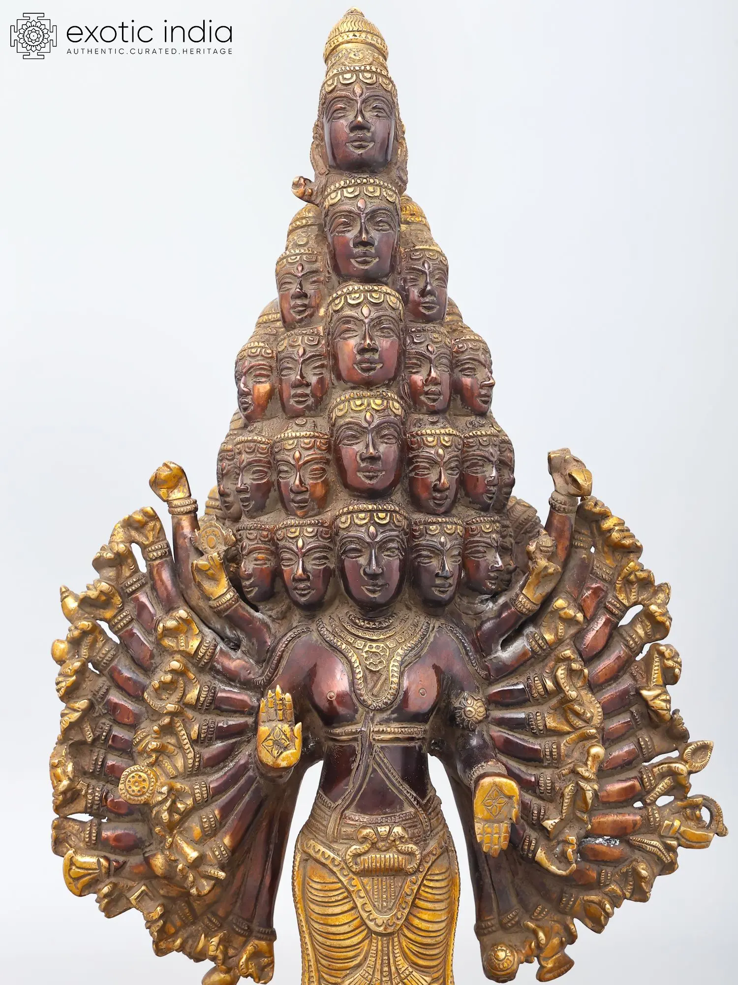 Intricately detailed with numerous faces and arms, showcasing exceptional artistry.
