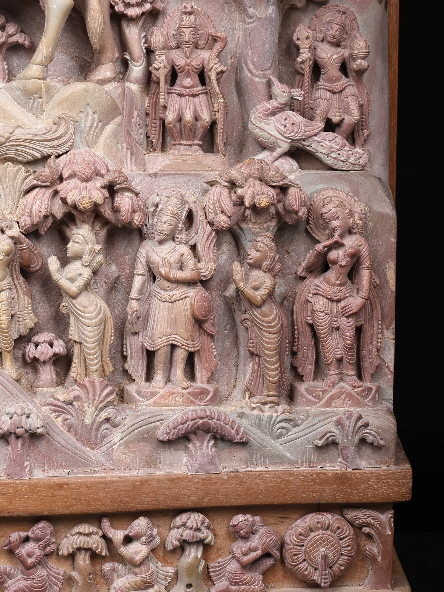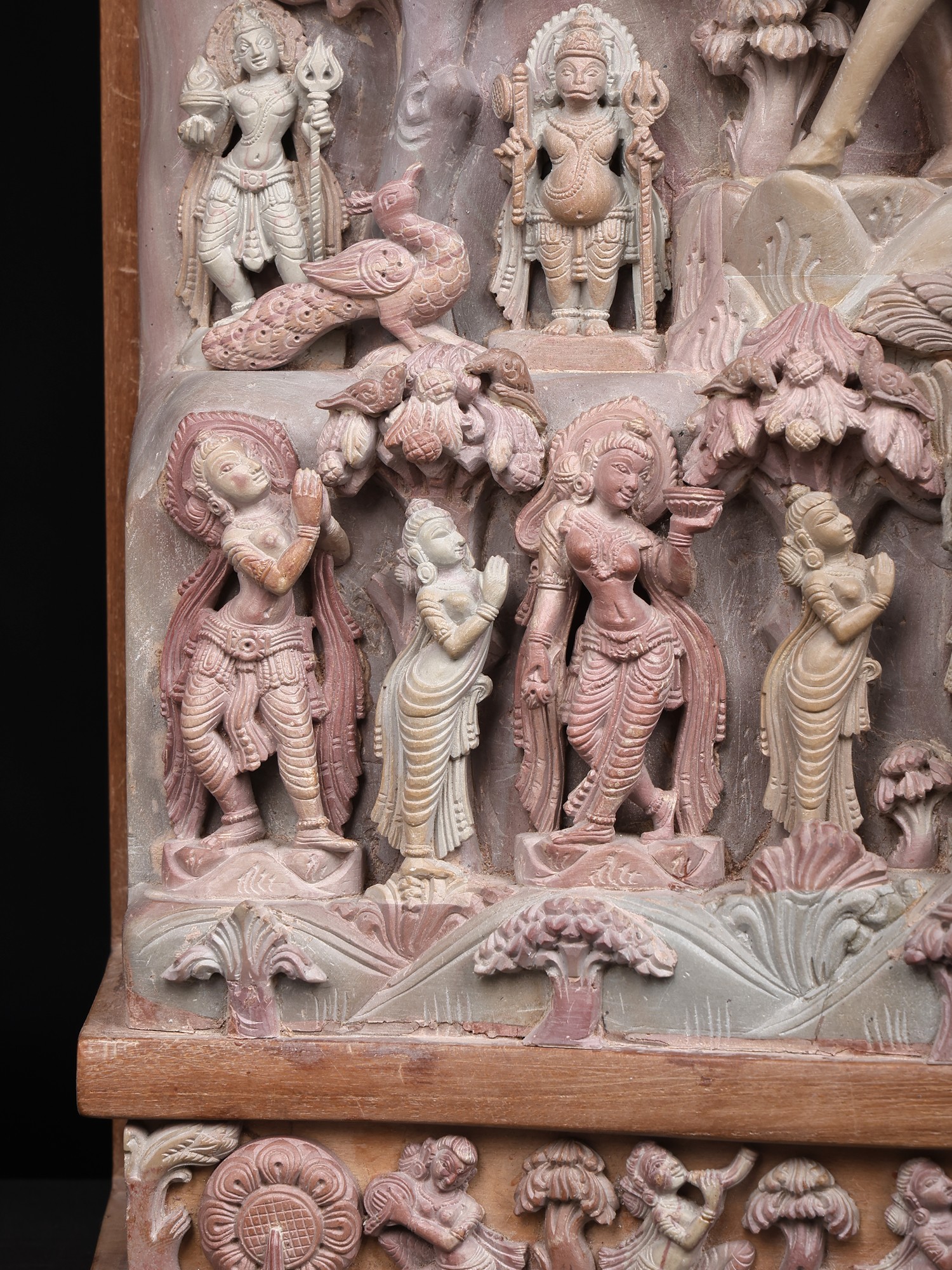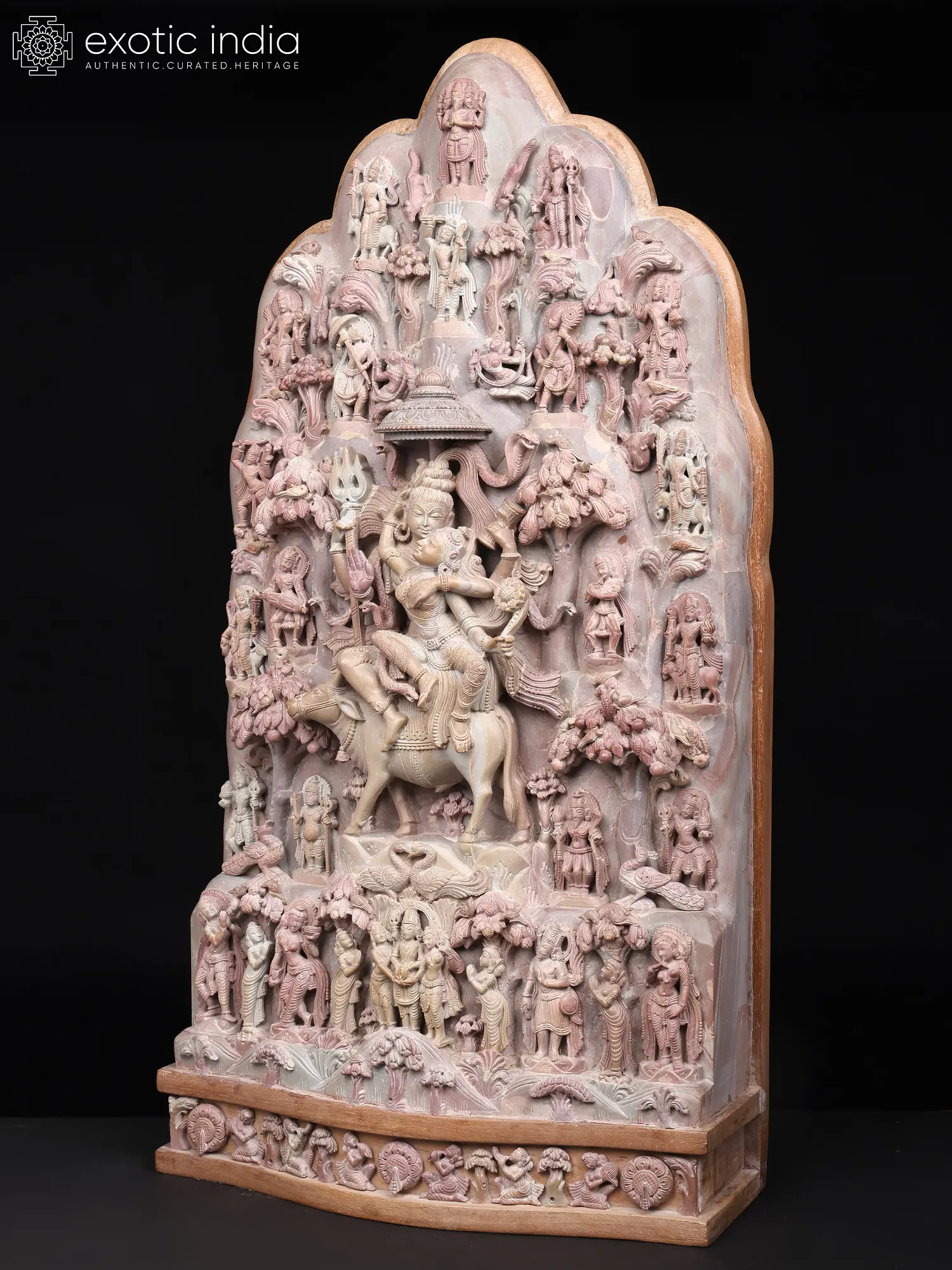 30" Marble Idol Of Baby Ganesha In The Lap Of Shiva With Parvati