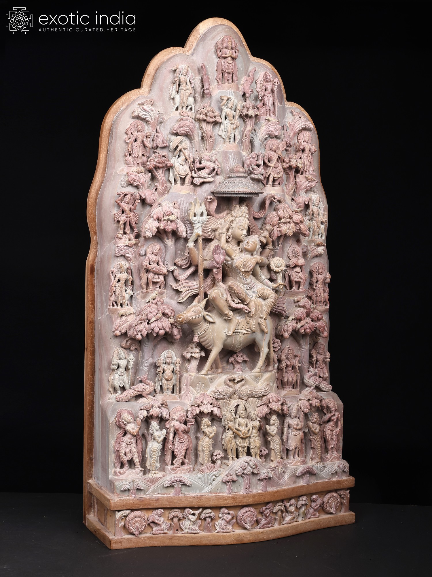 13" Goddess Durga (Mahishasuramardini) Killing Demon Mahishasura | Orissa Stone Statue | Exquisite Handmade Indian Art