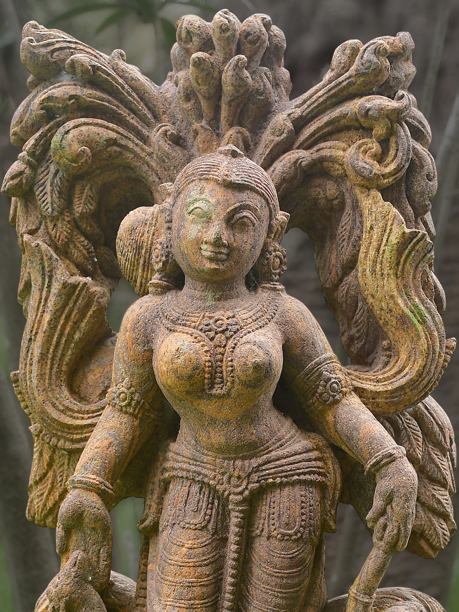 11" Shringar Lady Idol with Peacock | Kattapa Stone Statue