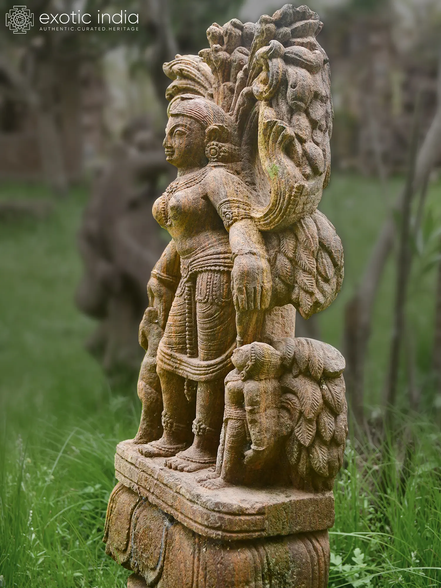 To ensure the enduring splendor of this sandstone masterpiece, simple care is recommended. Periodically dust with a soft, dry cloth to maintain its intricate details. For outdoor placement, a natural patina will develop, enhancing its antique charm. Its inherent resilience and the quality of its creation ensure that this sculptural treasure will be a source of beauty and inspiration for generations to come, a true heirloom piece.