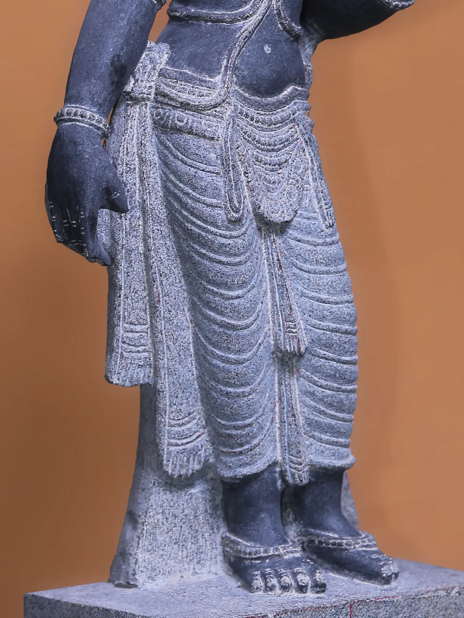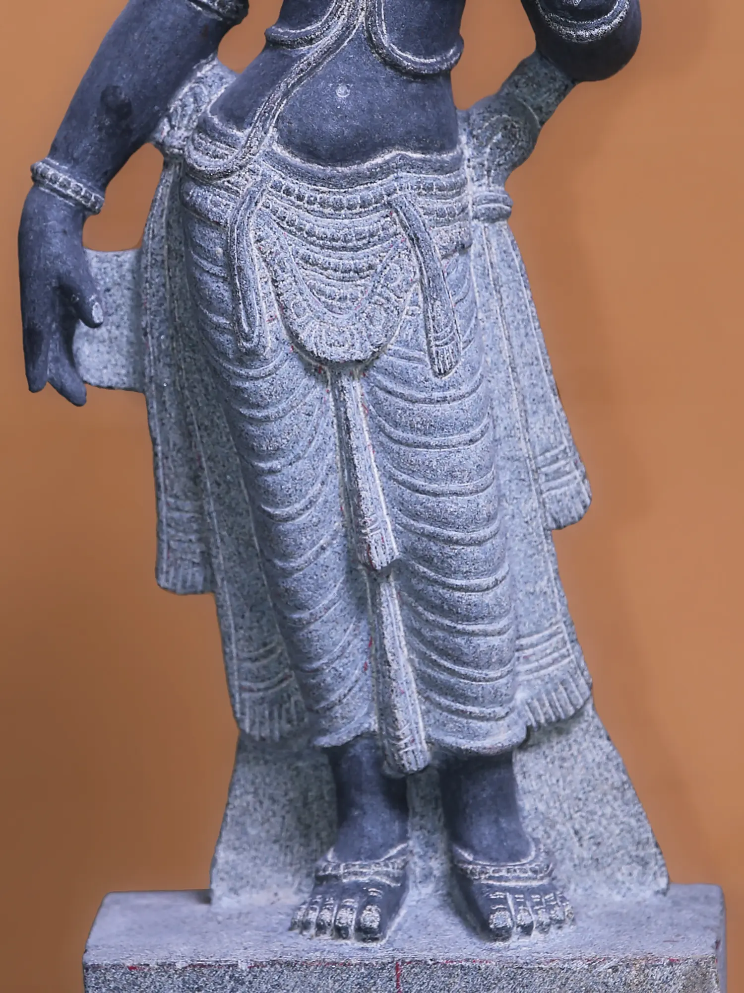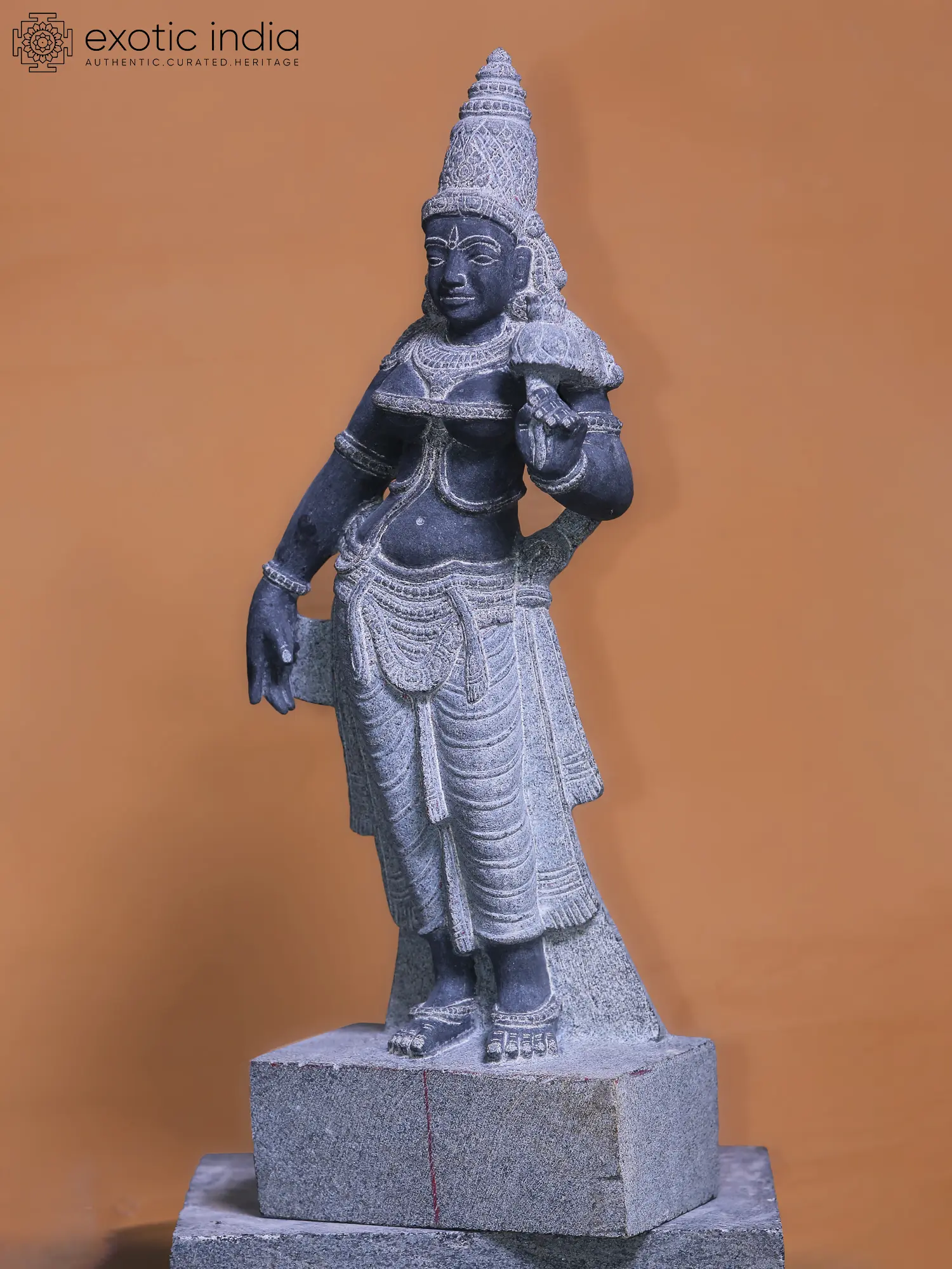 The process that transforms rugged slabs of granite into the most beautiful divine feminine form, can be seen on the reverse of this statue, where Parvati seems to be emerging from the unsculpted piece of stone.