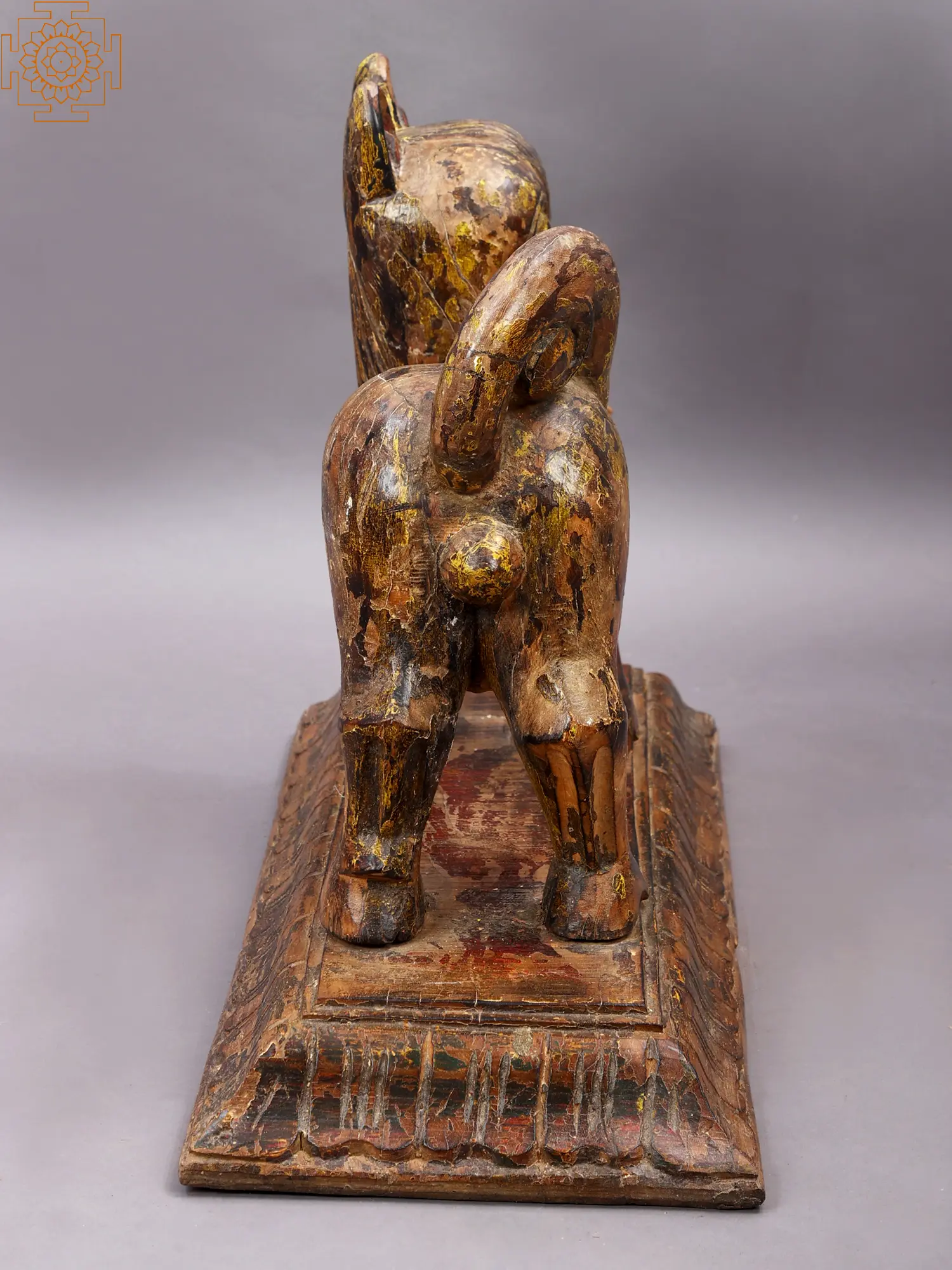 12" Wooden Lord King Ganesha Seated on Throne