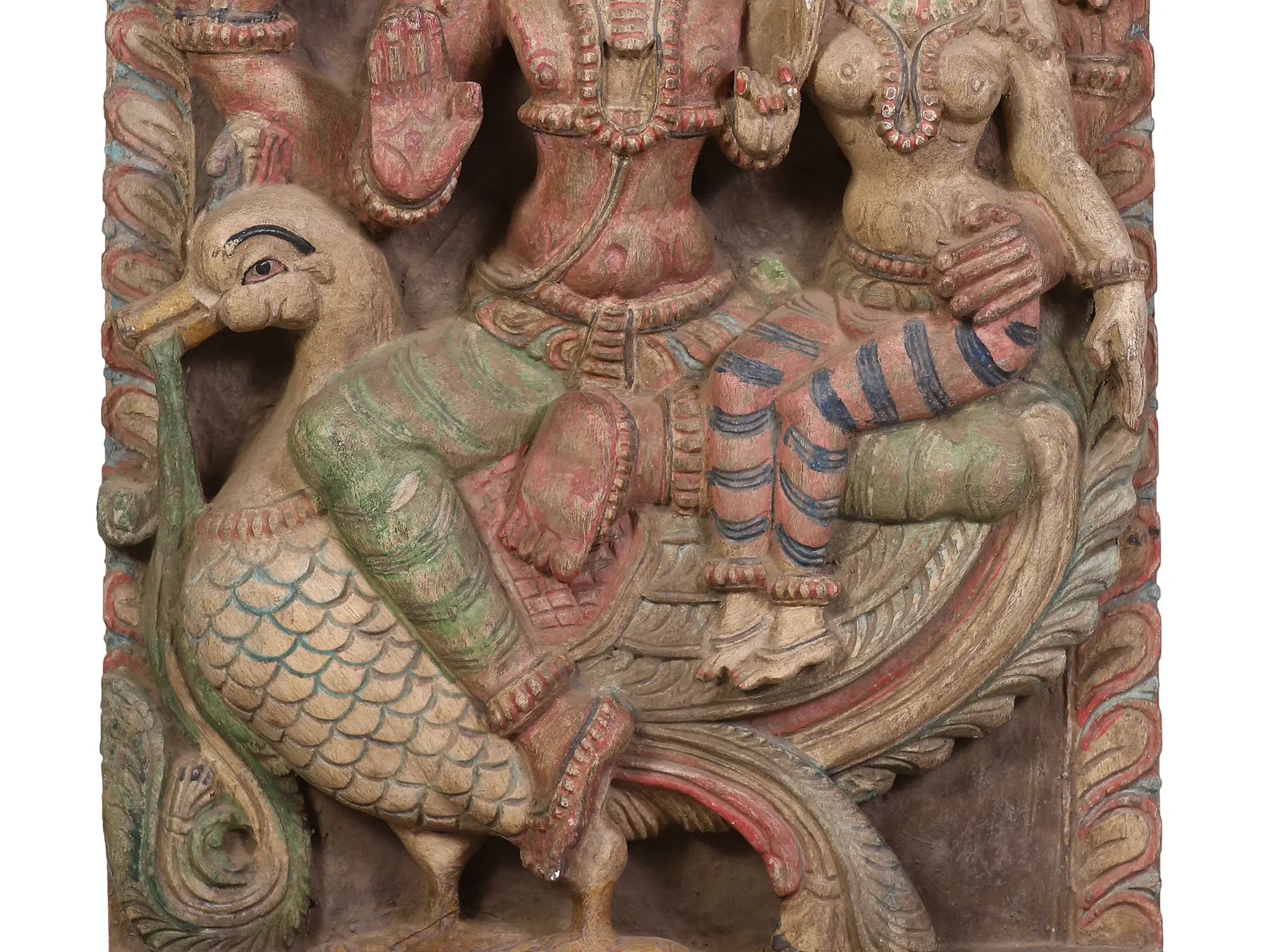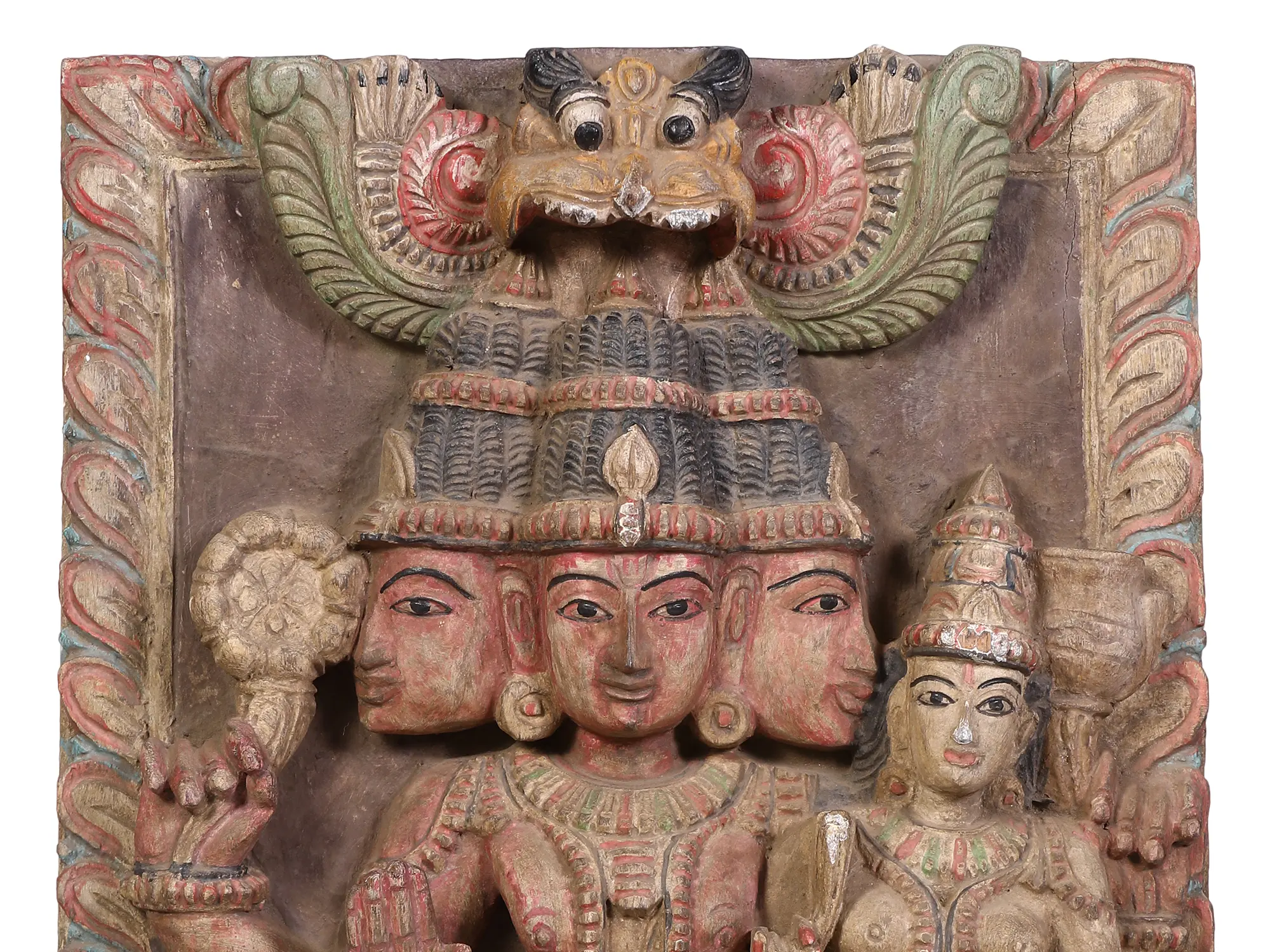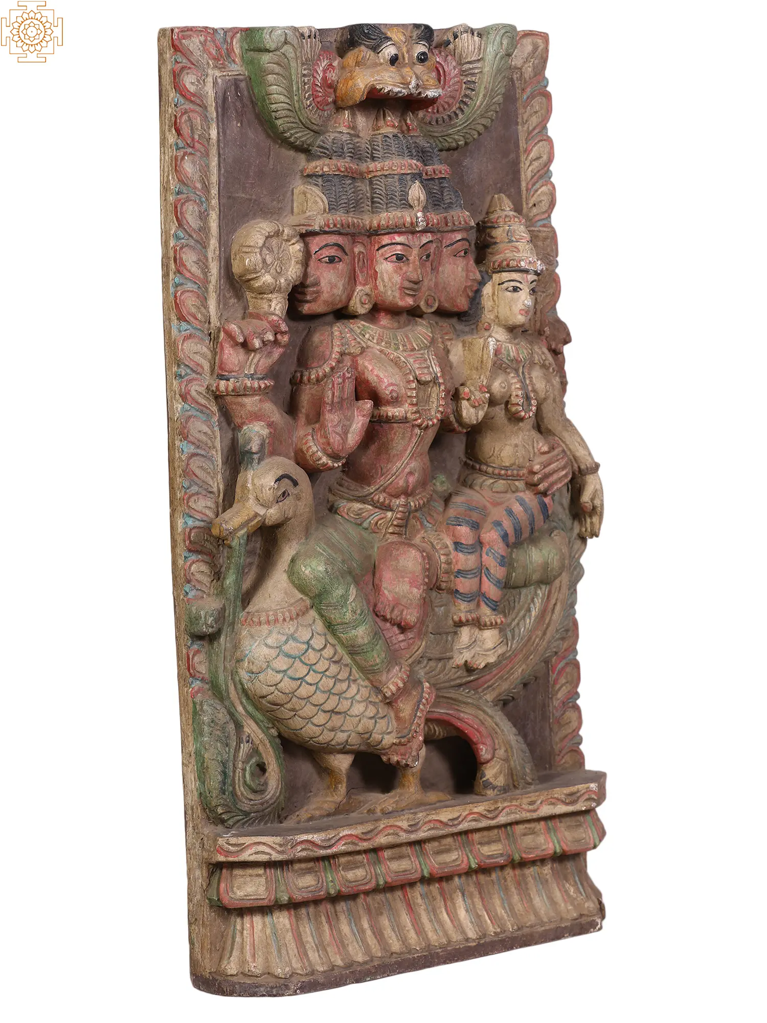 Encounter the divine presence of Bhagawan Brahma and Devi Saraswati, depicted in this sacred portrayal of cosmic harmony and creative abundance. With Bhagawan Brahma, the creator of the universe, seated majestically alongside Devi Saraswati, the embodiment of wisdom and knowledge, this depiction exudes divine grace, creativity, and enlightenment.