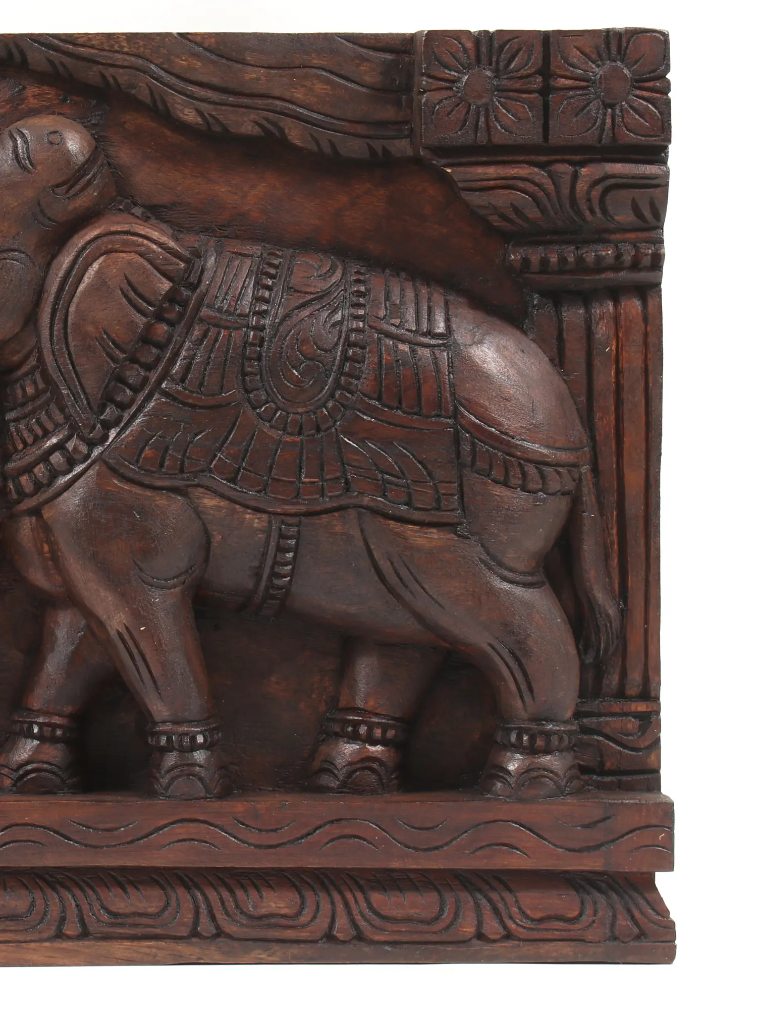 This wooden masterpiece is a carved optical illusion. The artwork depicts a sacred bull and a sacred elephant cuddling. When viewed from one perspective, the heads of these two creatures are carved in such a way that they only display one head. The art is kept traditional by carving old-fashioned decorations on both creatures. This is a unique piece of art in which science and woodworking have harmoniously combined. This wooden sculpture is a must-have for everyone who appreciates unusual yet traditional patterns.