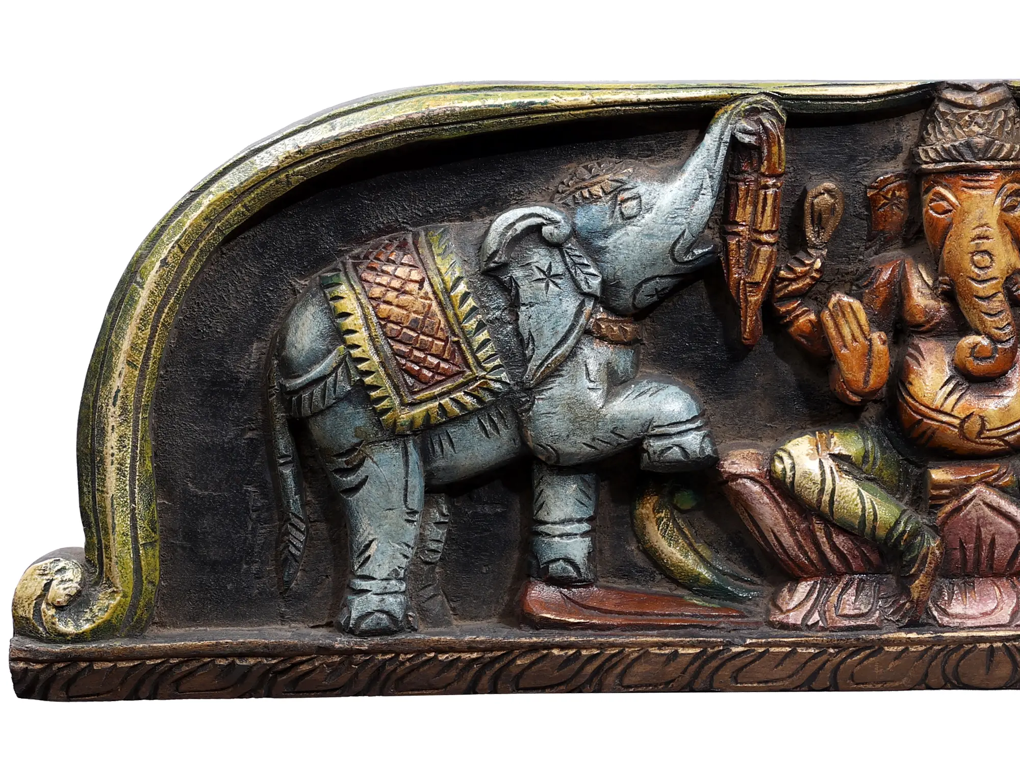 Embrace Divine Auspiciousness: The Gaja Ganesha Wooden Panel