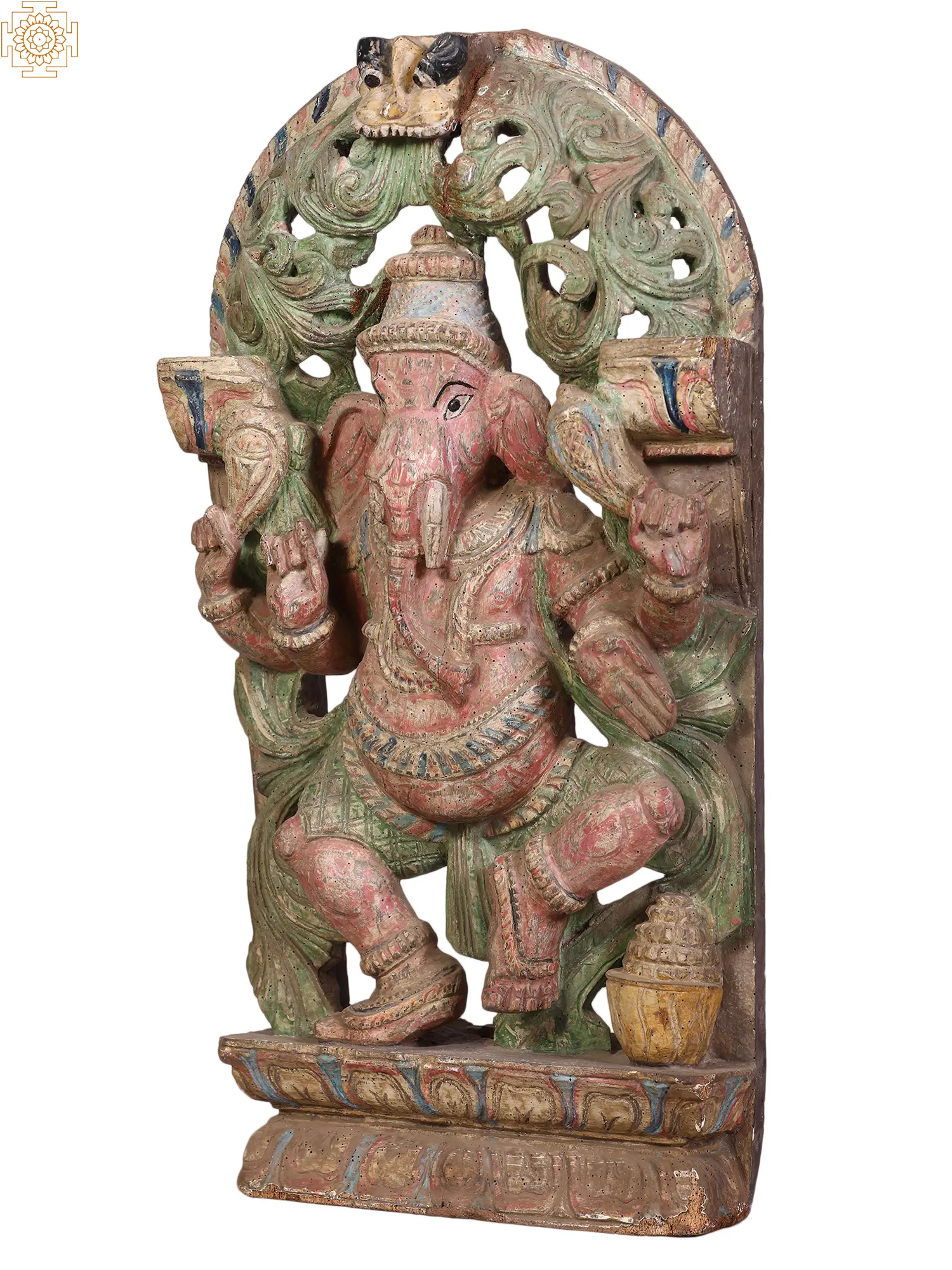 18" Wooden Ganapati Sculpture with Kirtimukha