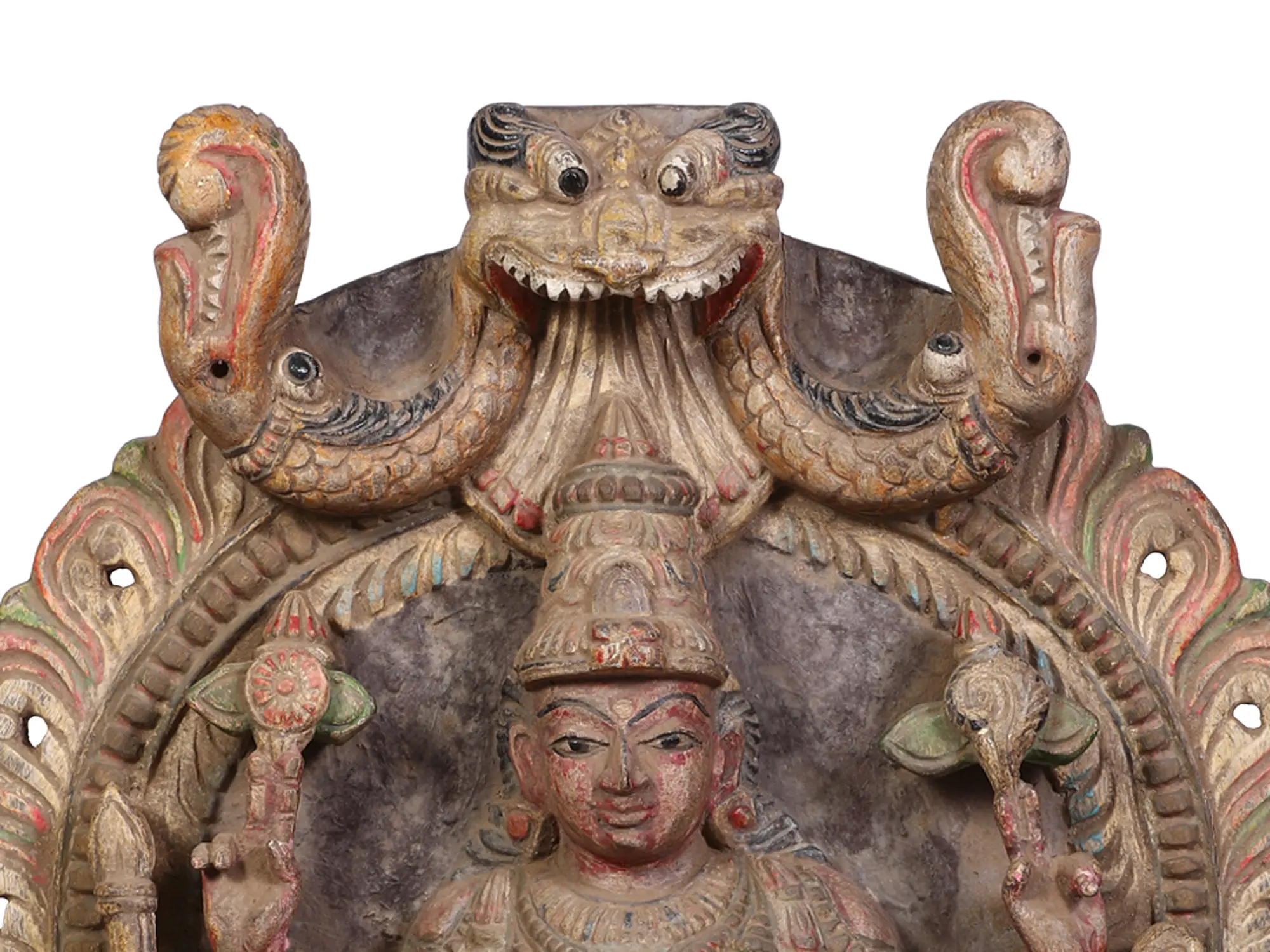 36" Large Wooden Dancing Apsara with Parrot in Her Hand