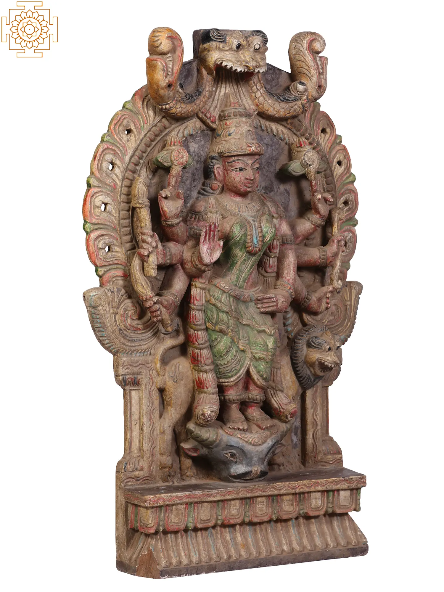 15" Brass Statue of Goddess Rajarajeshwari in Wood Framed | Wall Hanging Decor