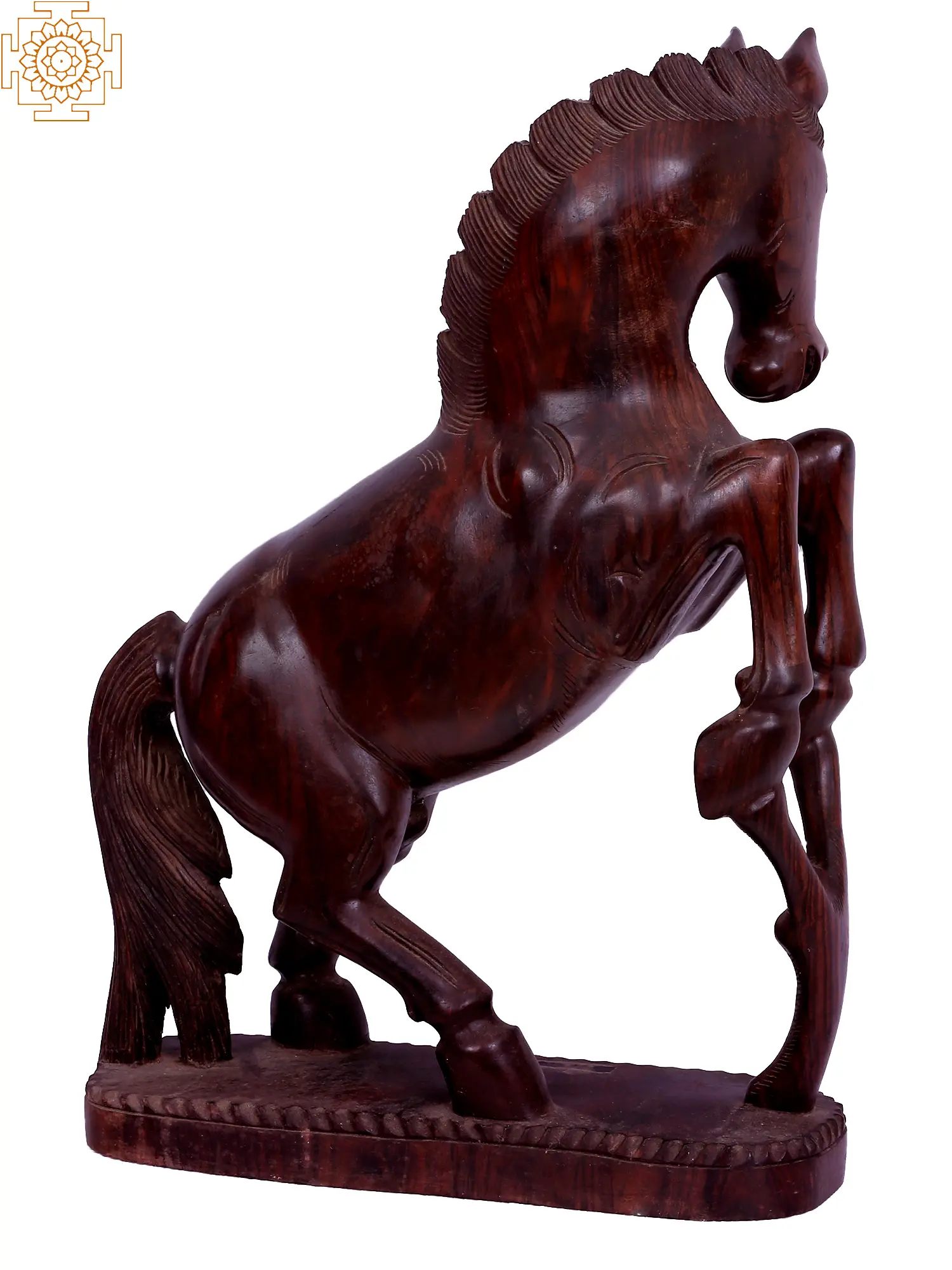Presenting this majestic Horse – a symbol of grace and strength, meticulously carved from premium wood to captivate both your senses and imagination. Its flowing mane, frozen mid-gallop, exudes an ethereal energy, capturing the essence of untamed beauty.