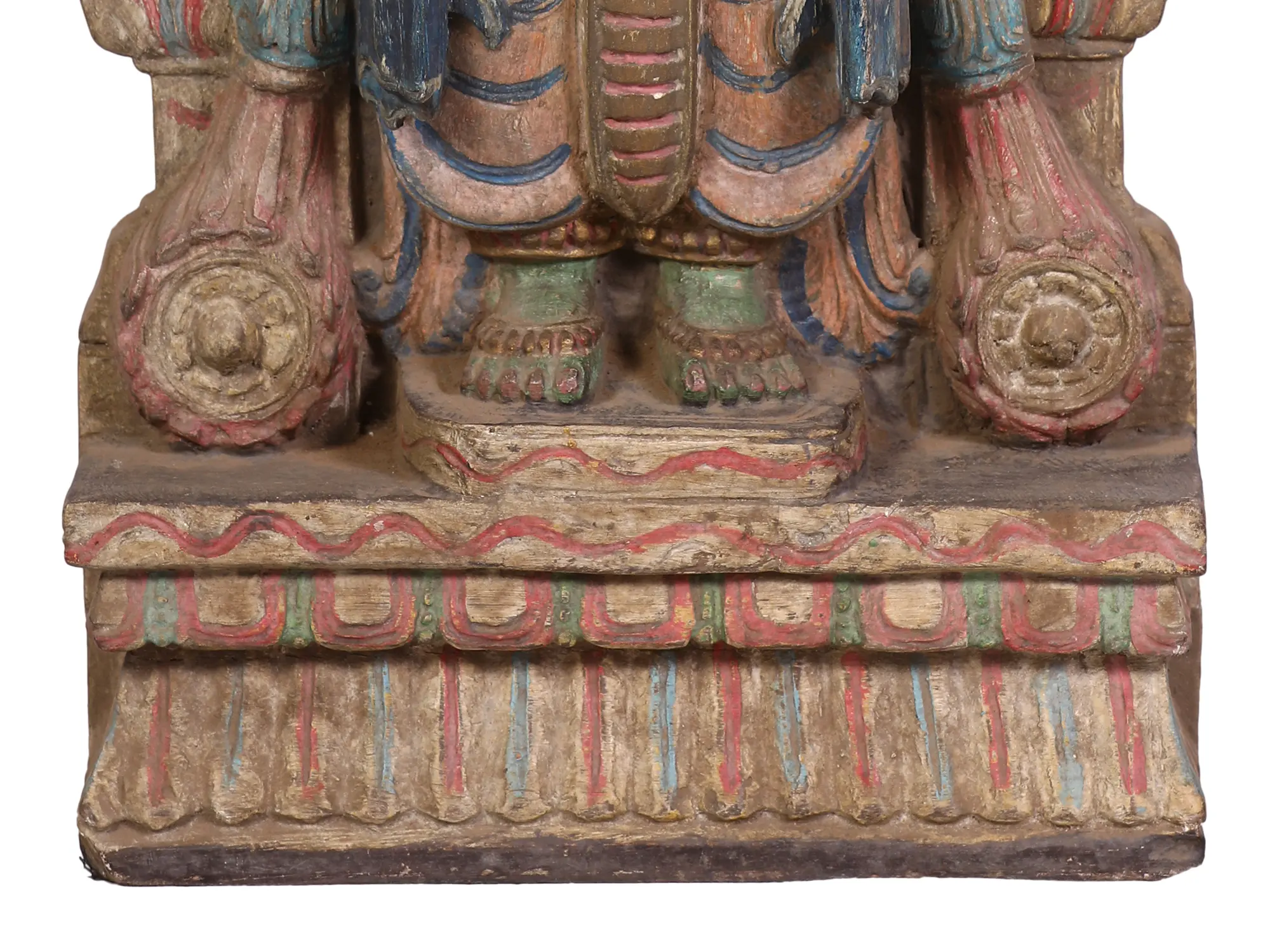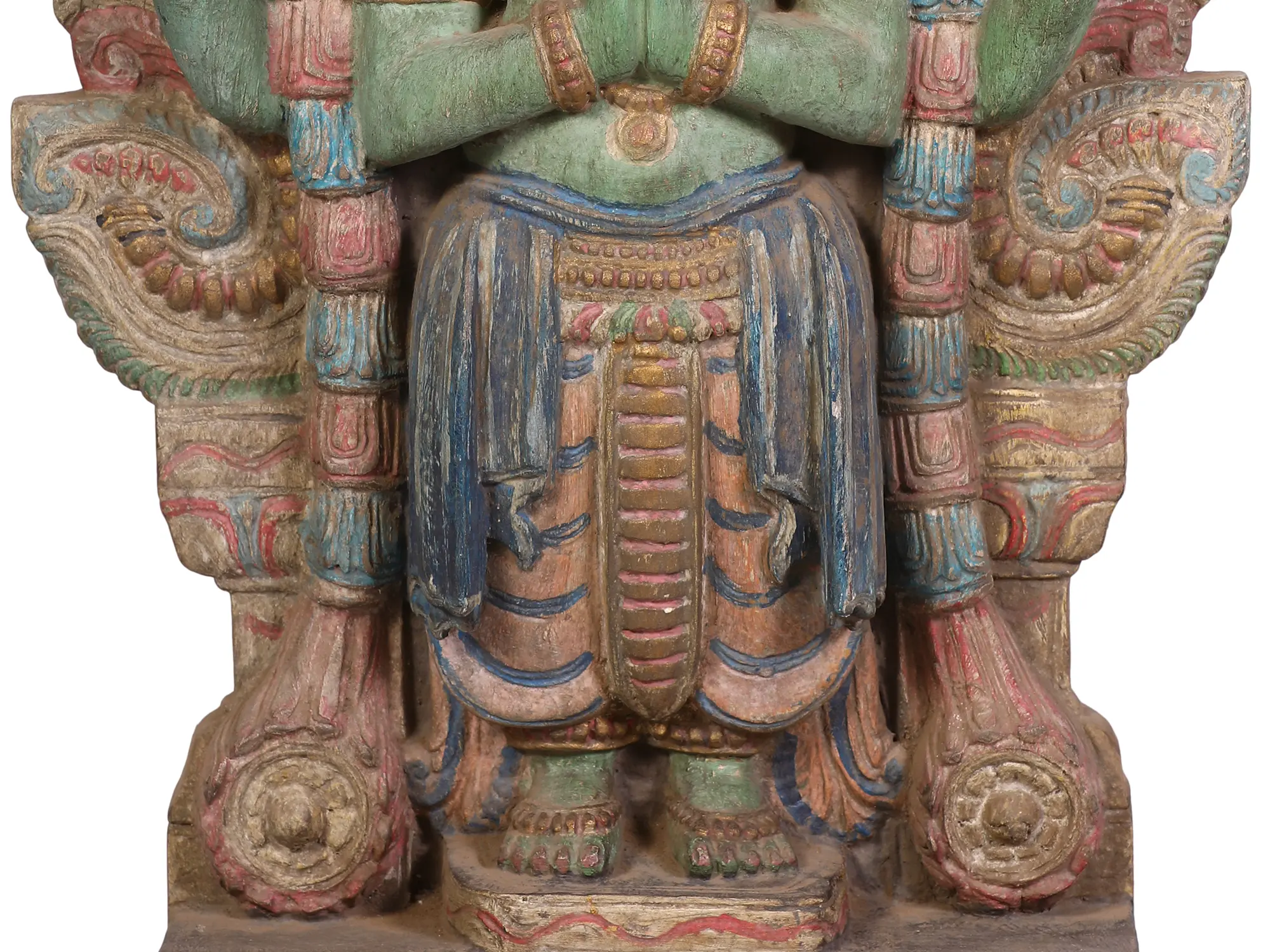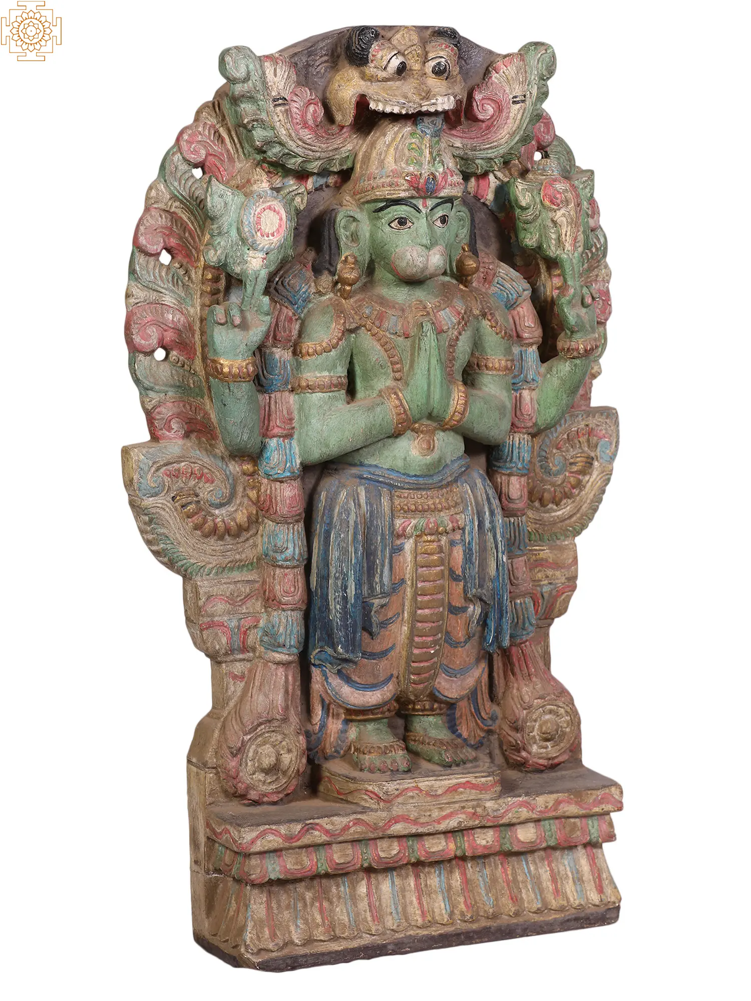 36" Large Vaishnava Symbols (Shankha, Chakra and Tilak) with Garuda and Hanuman | Wood Carved Panel