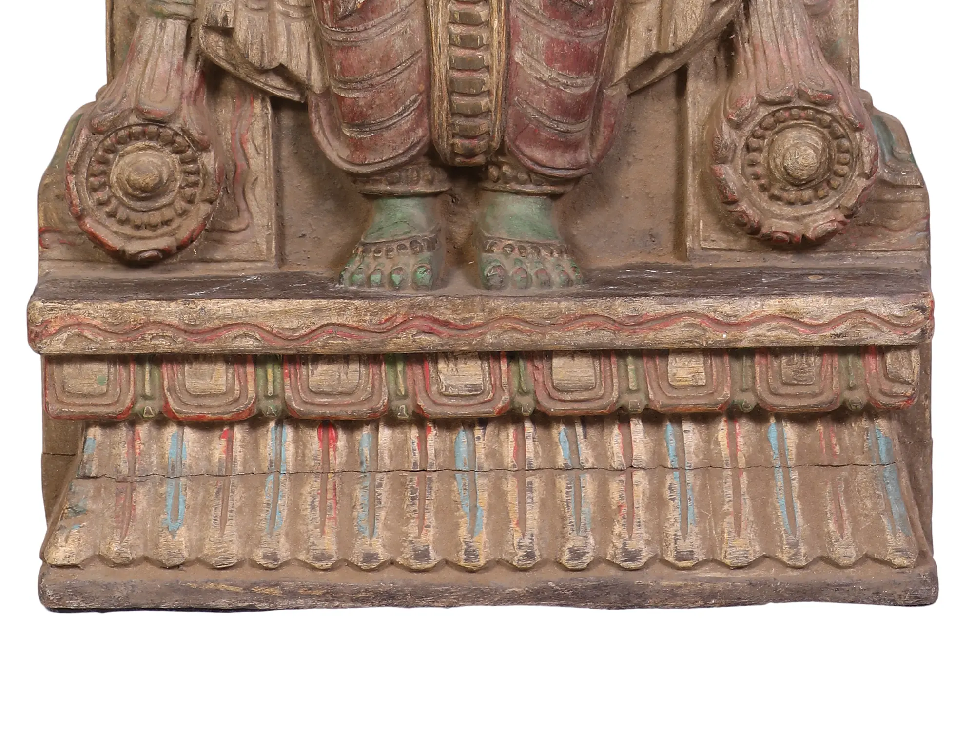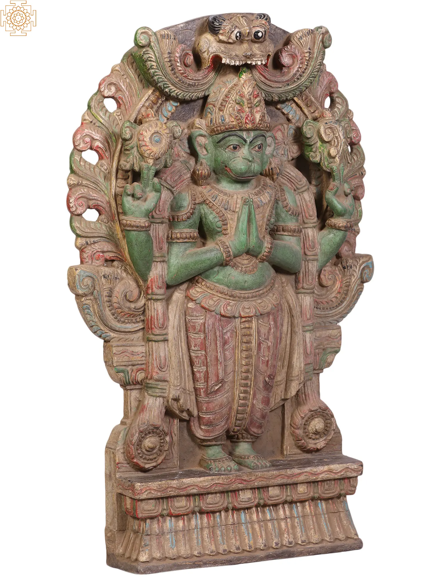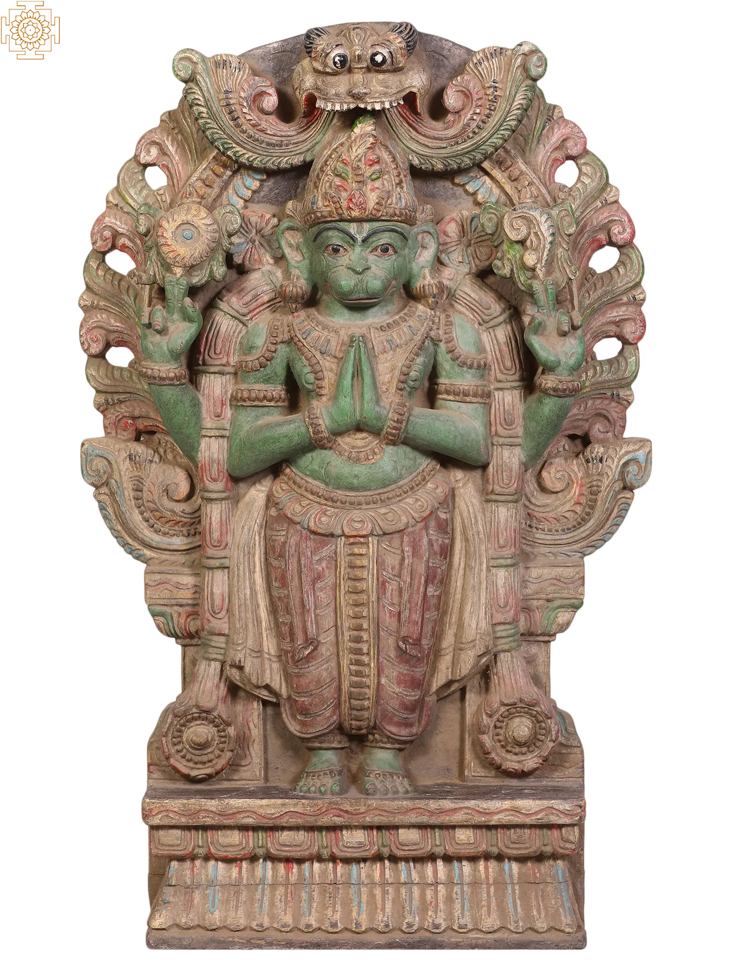 36" Large Vaishnava Symbols (Shankha, Chakra and Tilak) with Garuda and Hanuman | Wood Carved Panel