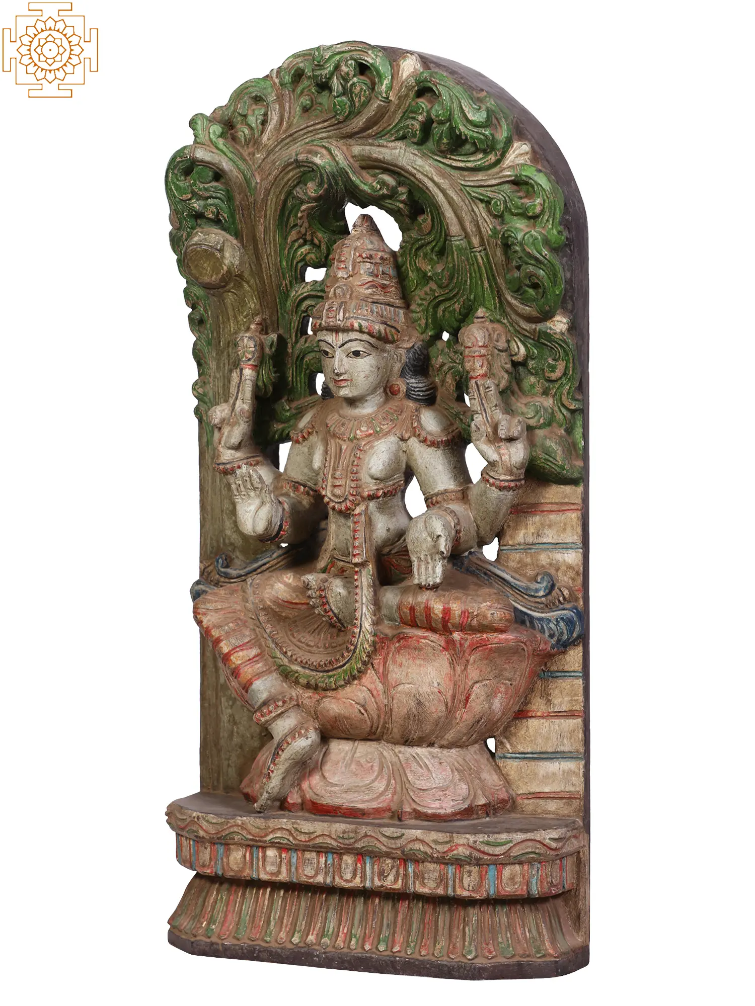 36" Lord Vishnu With Goddess Lakshmi | Wood Statue and Wall Hanging