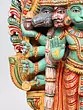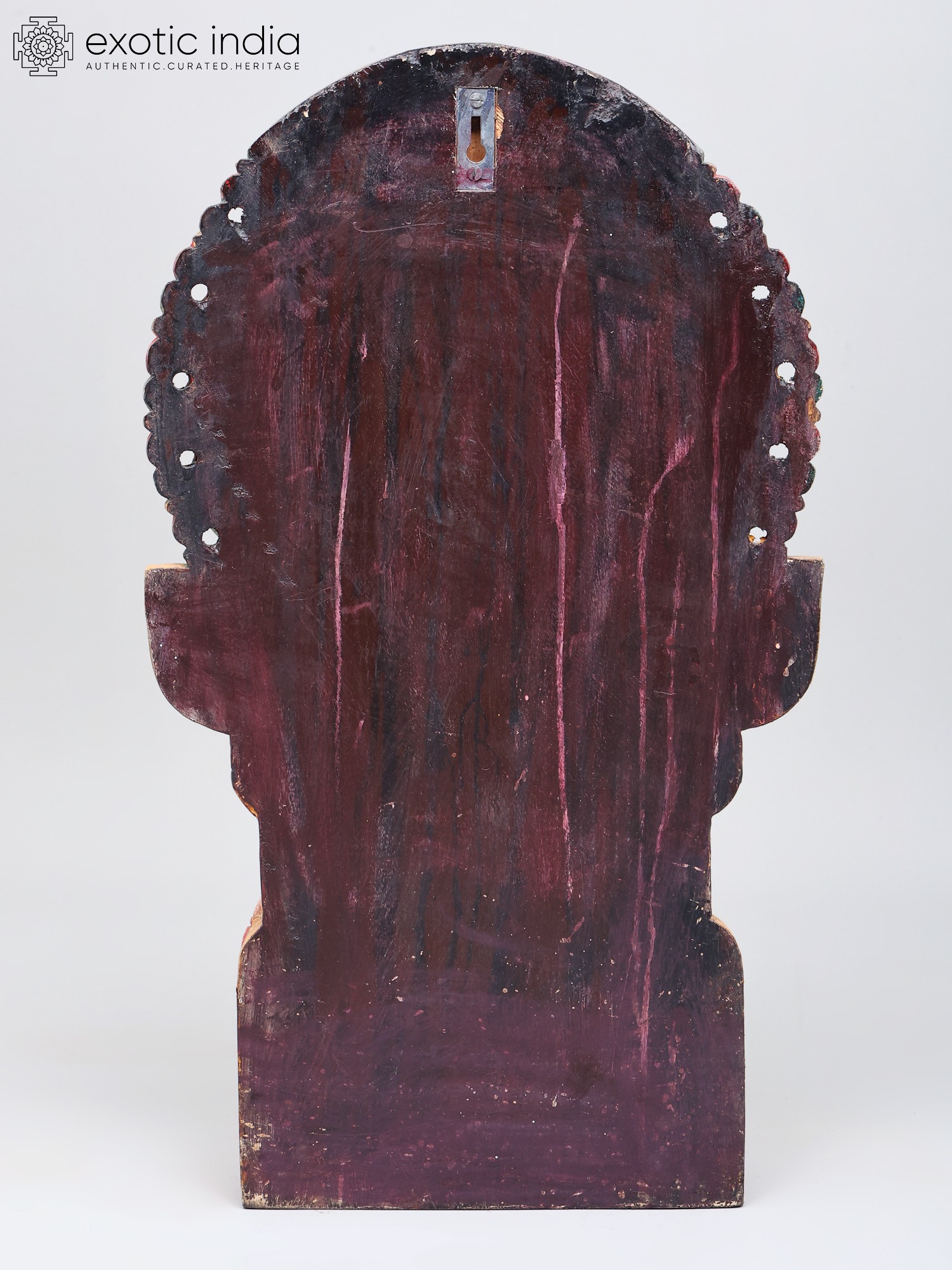 Crafted from wood, this sculpture is a testament to the enduring legacy of traditional Indian woodworking. The rich patina and subtle imperfections that come with age only enhance its authenticity and character, telling a story of dedication and skill passed down through generations. The detailed carving and the rich, layered pigments, now weathered by time, evoke a sense of history and sacredness. Each stroke of the chisel has been imbued with reverence, resulting in a piece that is not merely decorative but spiritually resonant. This exquisite wooden carving is a perfect addition to any sacred space, meditation room, or as a statement piece in your home, bringing with it the blessings of strength, courage, and divine protection.