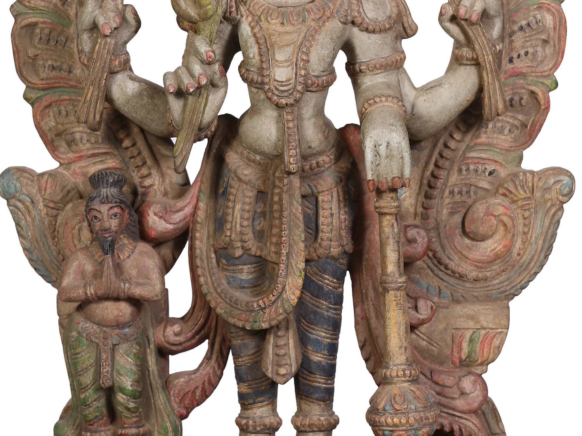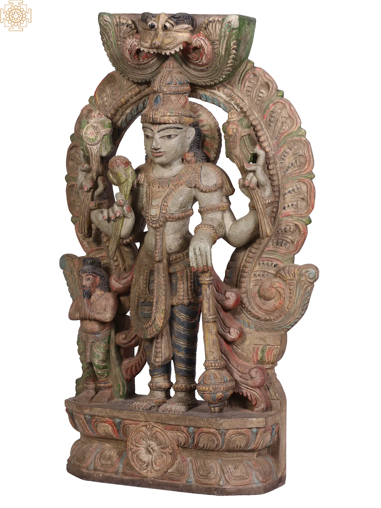 50" Large Teakwood Carved Dashavatara Wall Panel with Lord Vishnu at Center