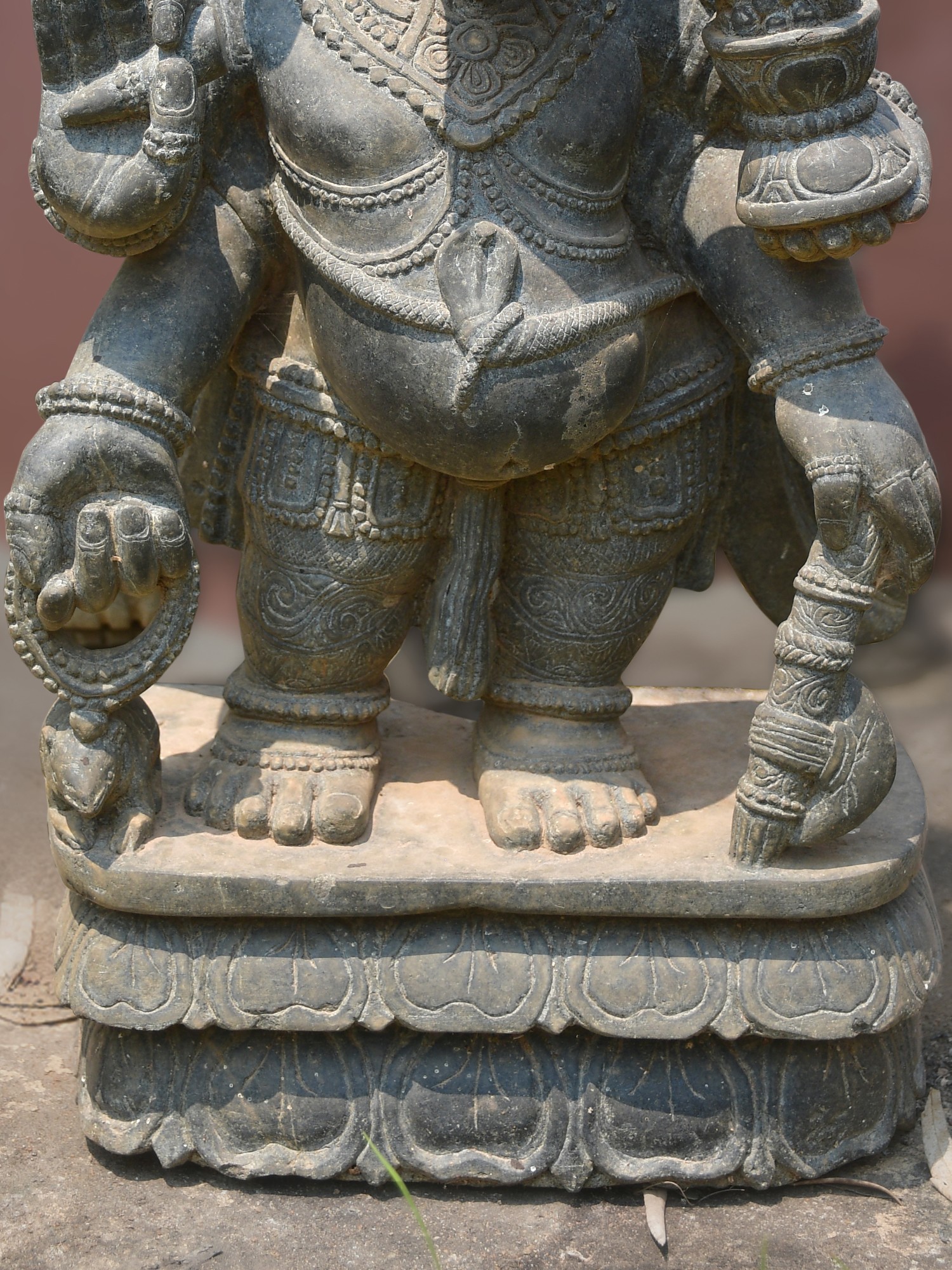 The sculptor has masterfully captured the divine form, with its characteristic elephant head and benevolent gaze. Notice the exquisite ornamentation adorning the divine figure, from the elaborate headdress to the intricate patterns on the garments, all rendered with remarkable precision. The proportions are balanced, and the stance conveys both stability and gentle authority, inviting you to appreciate the artistic choices that elevate this piece beyond mere representation.