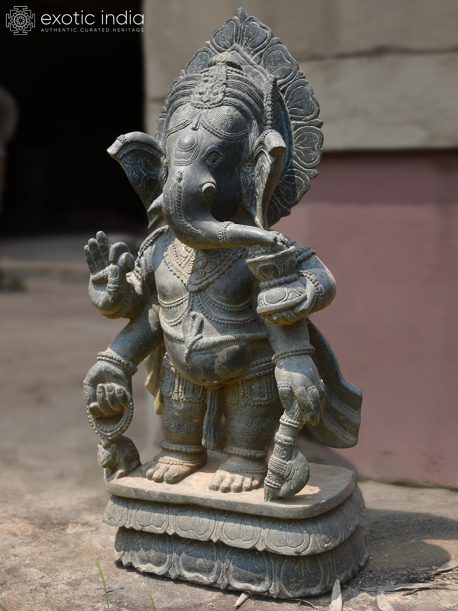 To ensure its lasting beauty, simply dust periodically with a soft, dry cloth. The inherent durability of Orissa stone means that with minimal care, this sculpture will retain its grandeur for generations, becoming a cherished heirloom that continues to inspire and bless. Its timeless appeal and artisanal quality guarantee its enduring value.