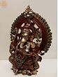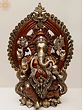 25" Brass Lord Ganesha Seated on Lotus Pedestal with Kirtimukha Prabhavali
