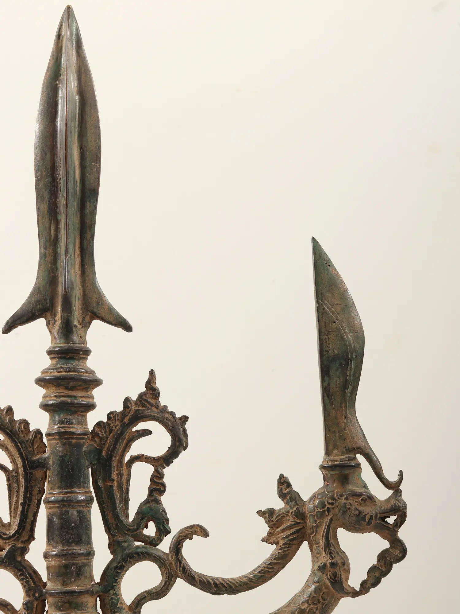 The blades enhance its functionality and aesthetic appeal. Often seen in historical and cultural contexts, such halberd heads with nagas and blades serve as both practical weapons and artistic expressions, reflecting the fusion of martial and artistic traditions.