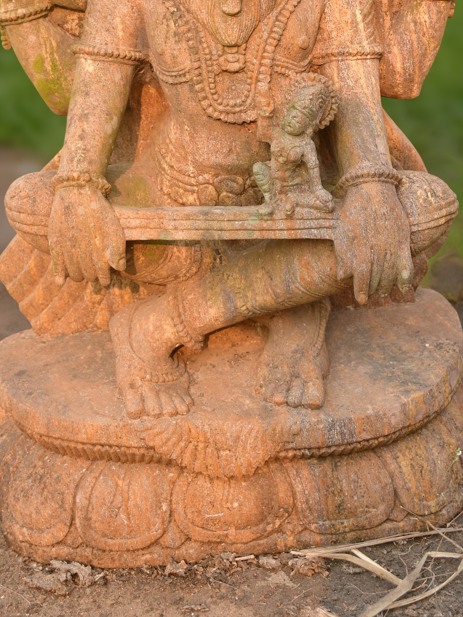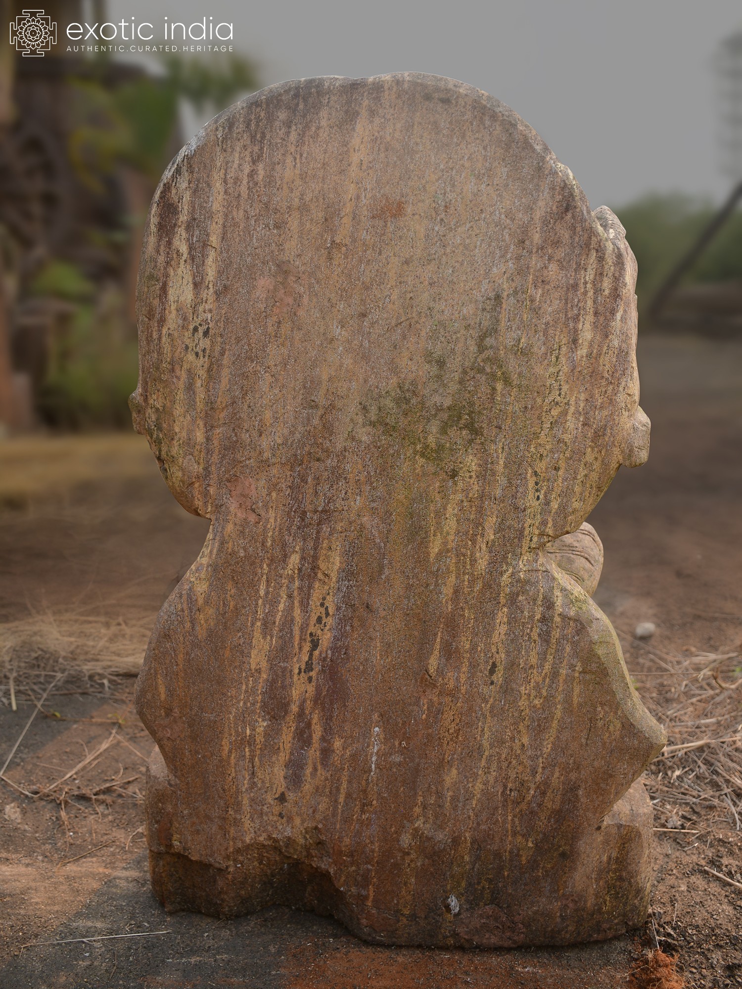Painstakingly carved from the finest Orissa sandstone, this piece is a testament to generations of artisanal mastery. Each curve and contour is meticulously shaped by skilled hands, imbuing the stone with a palpable sense of life and divine energy. The natural variations in the sandstone lend a unique character and rich texture, ensuring that your sculpture is truly one of a kind.