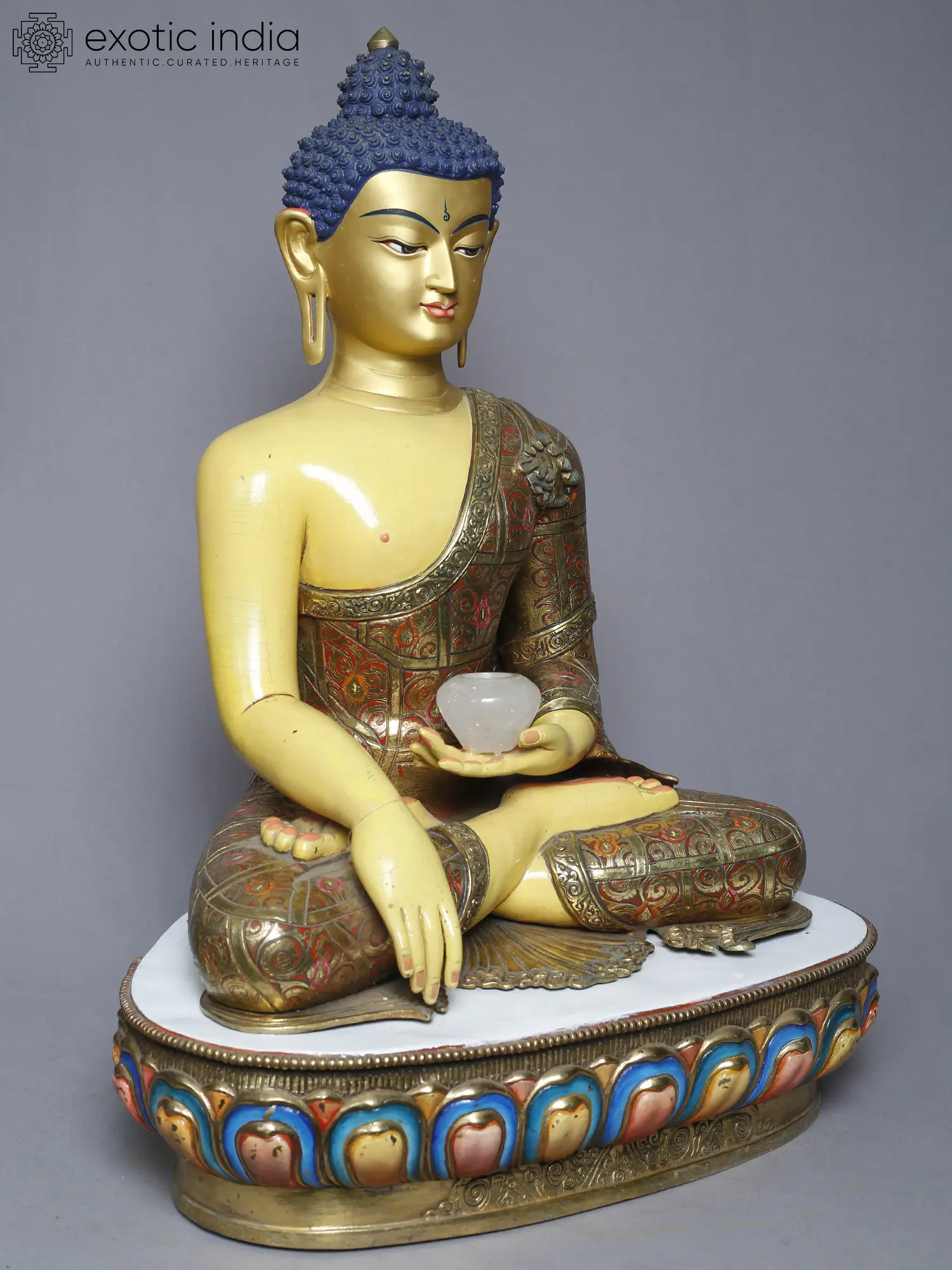 13" Shakyamuni Buddha Idol from Nepal | Copper Statue with Gilded Gold