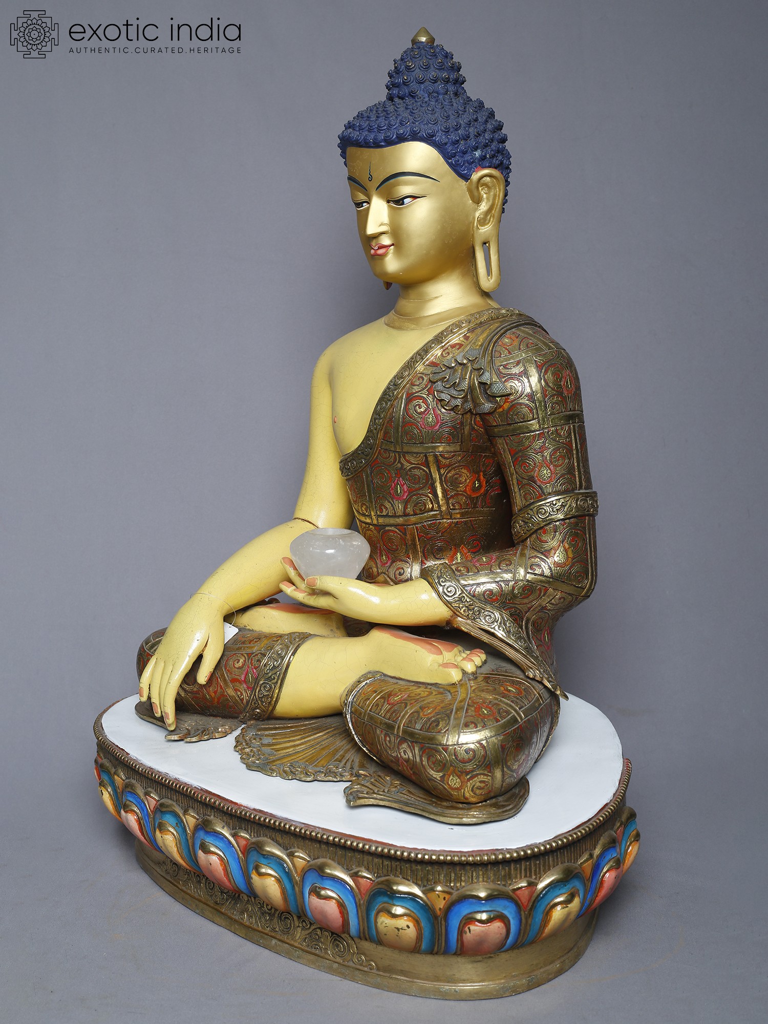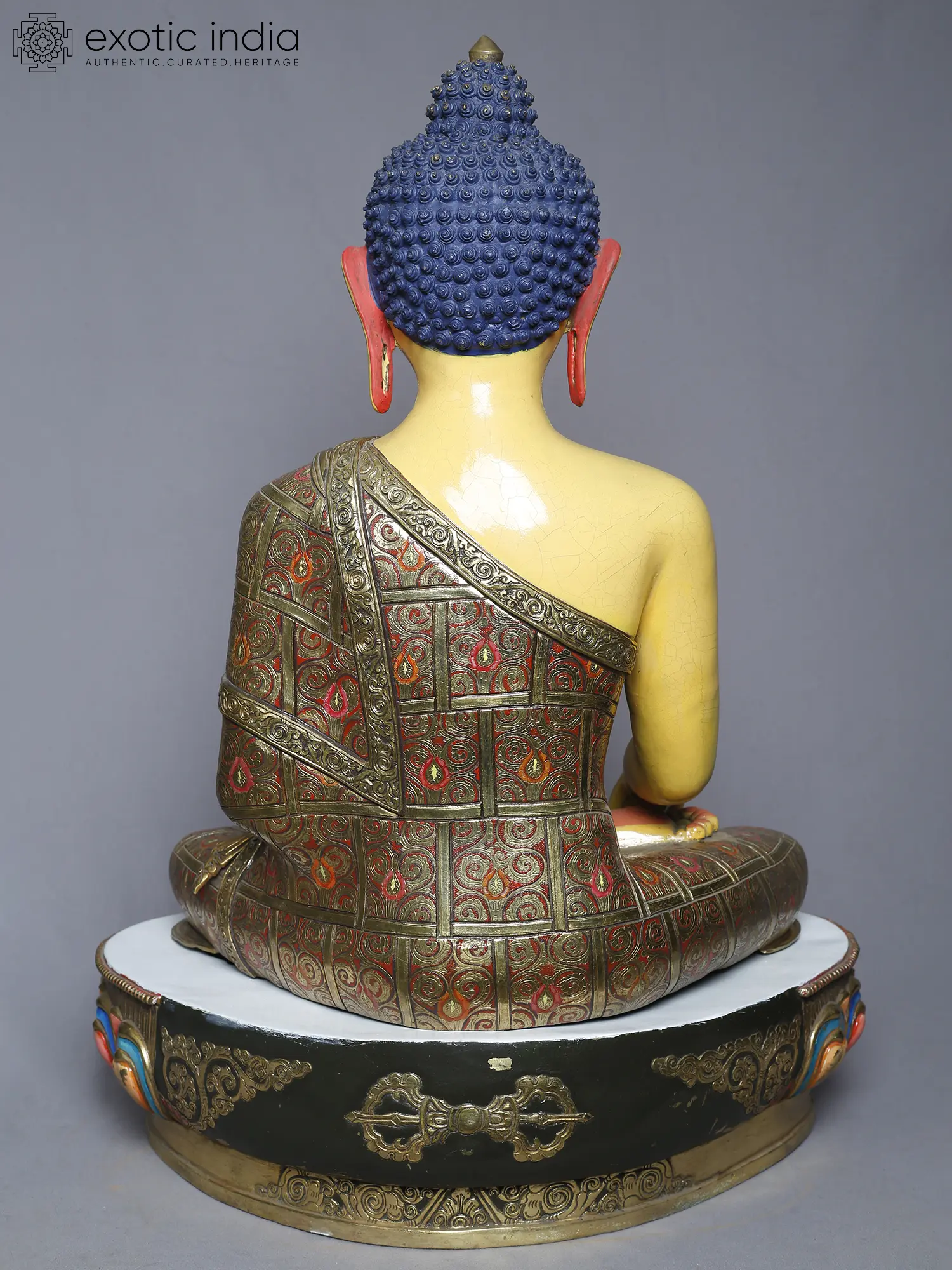 11" Lord Shakyamuni Buddha Statue In Copper Gold Plated From Nepal | Handmade Statue