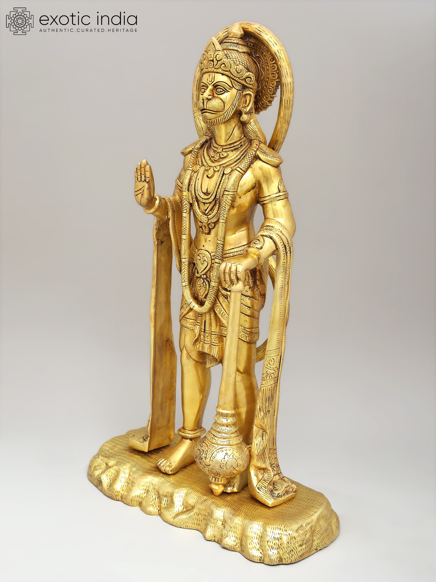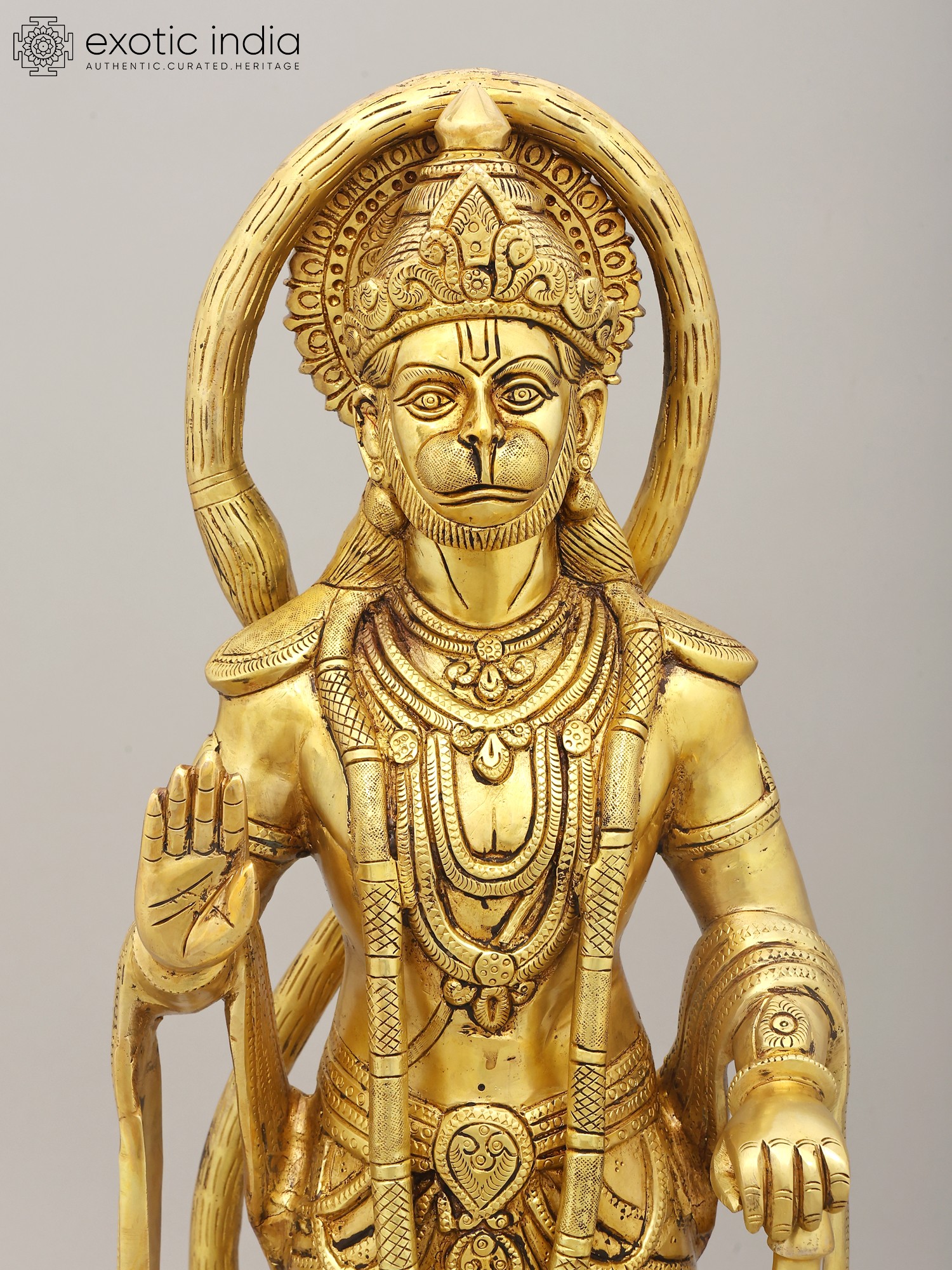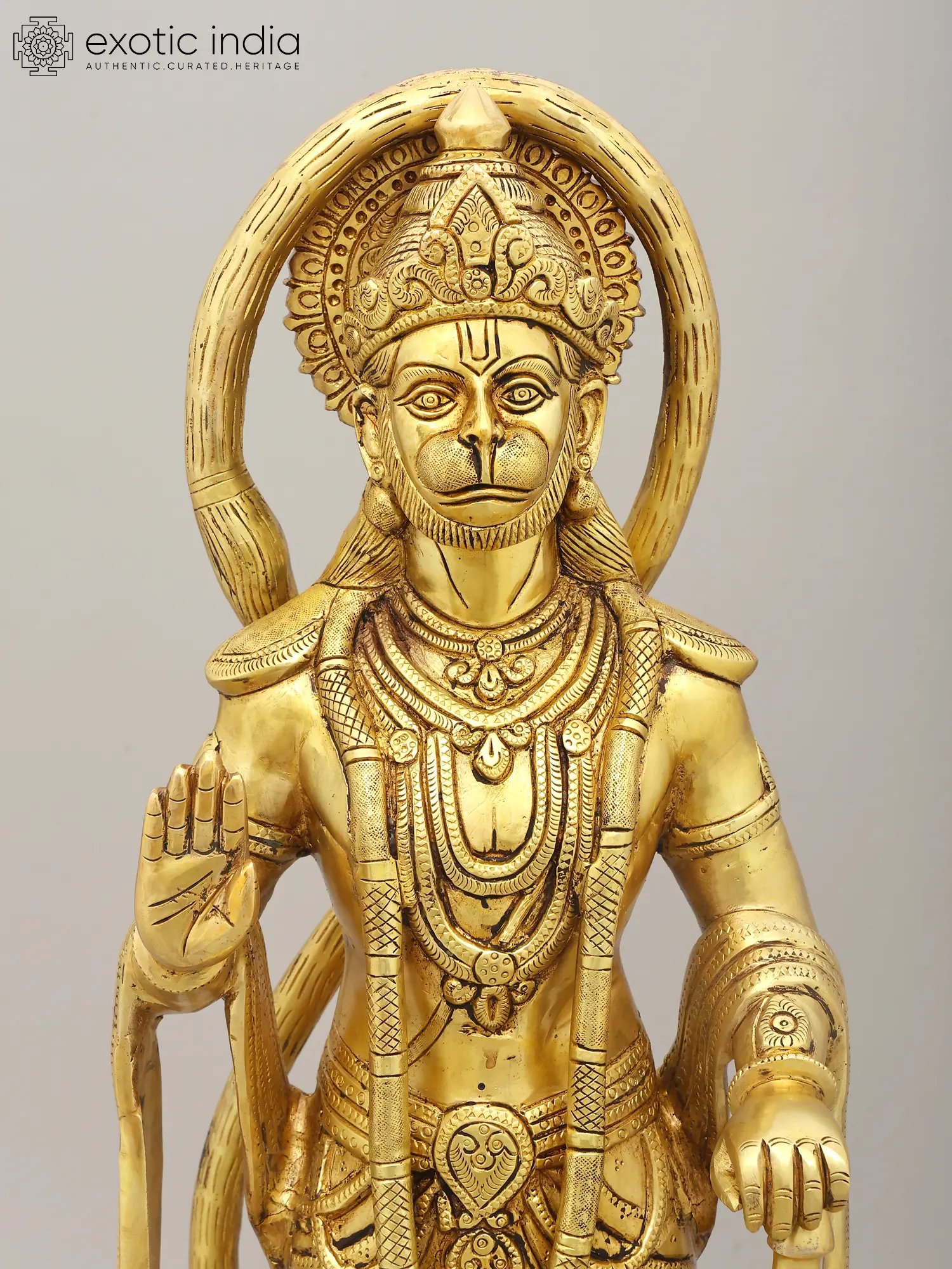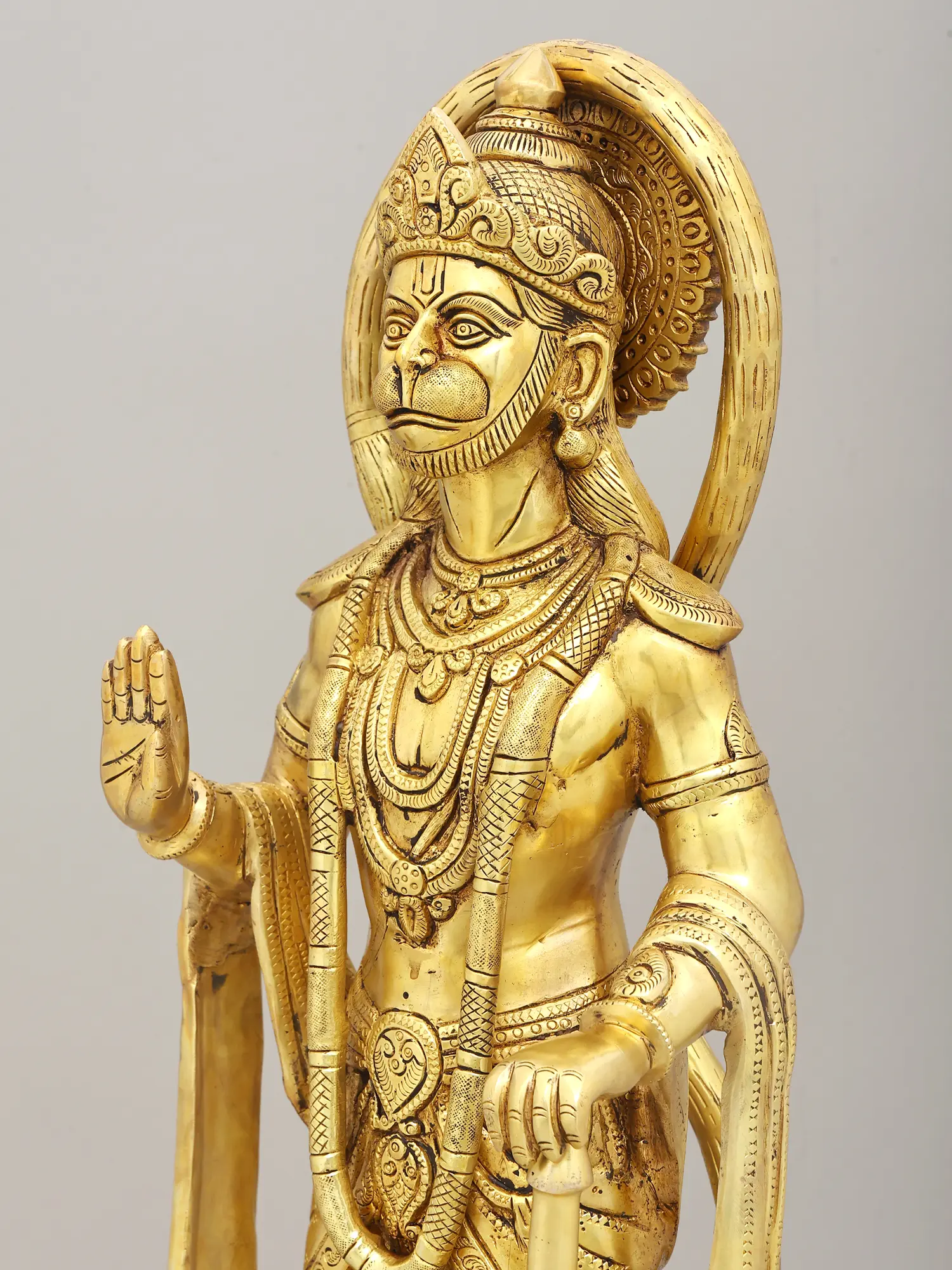 66" Large Standing Lord Hanuman Brass Idol | Handmade | Made in India