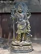 Imagine this commanding figure adorning your meditation room, becoming a silent witness to your spiritual journey. It also makes a striking statement piece in an entryway or a serene addition to your garden, where its timeless presence can inspire awe and tranquility. Its substantial form, approximately eleven inches wide and five inches deep, ensures it will stand with grace and dignity.