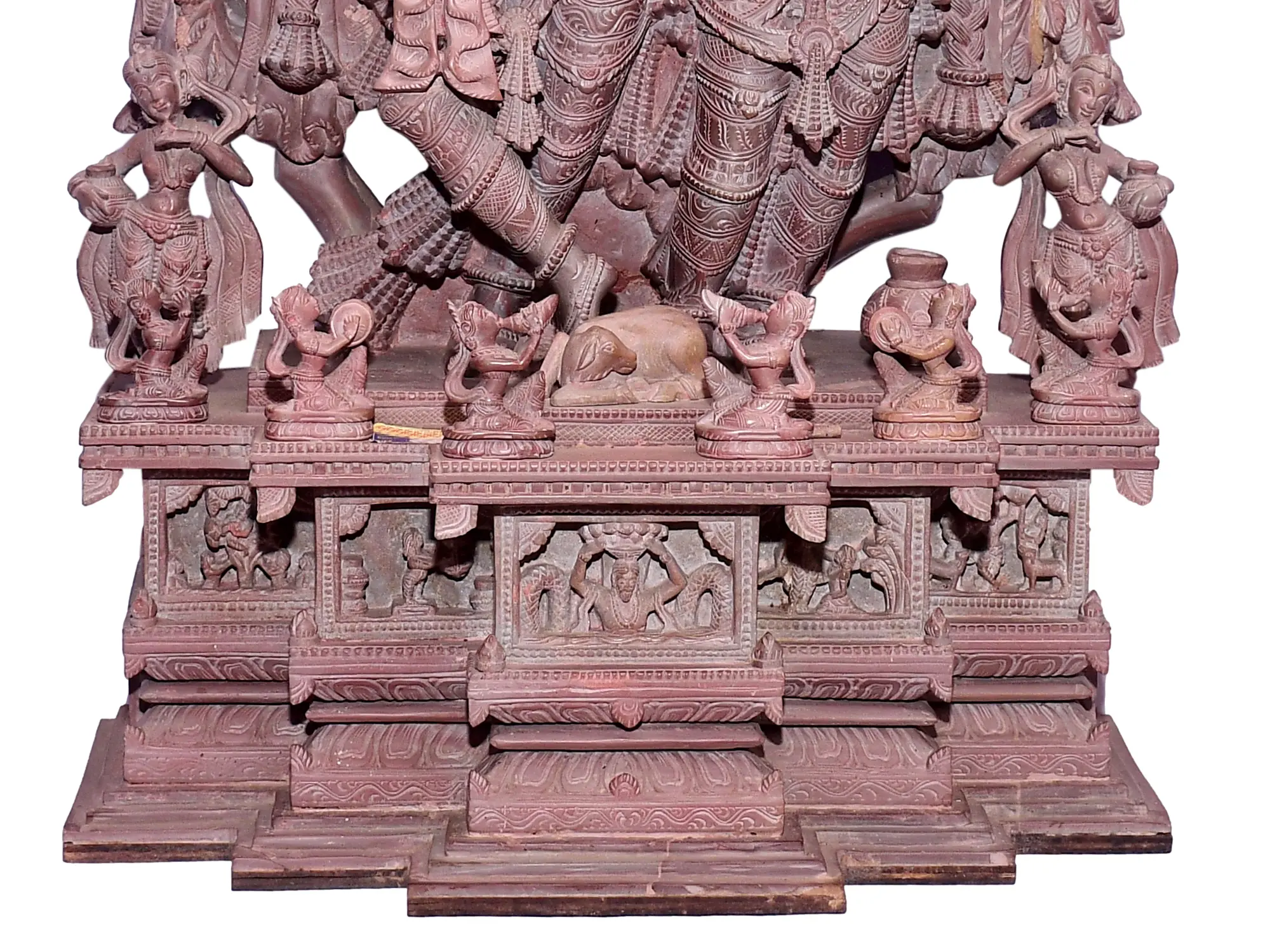12" Radha Krishna with Gopis | Red Stone Statue | Hand Carved