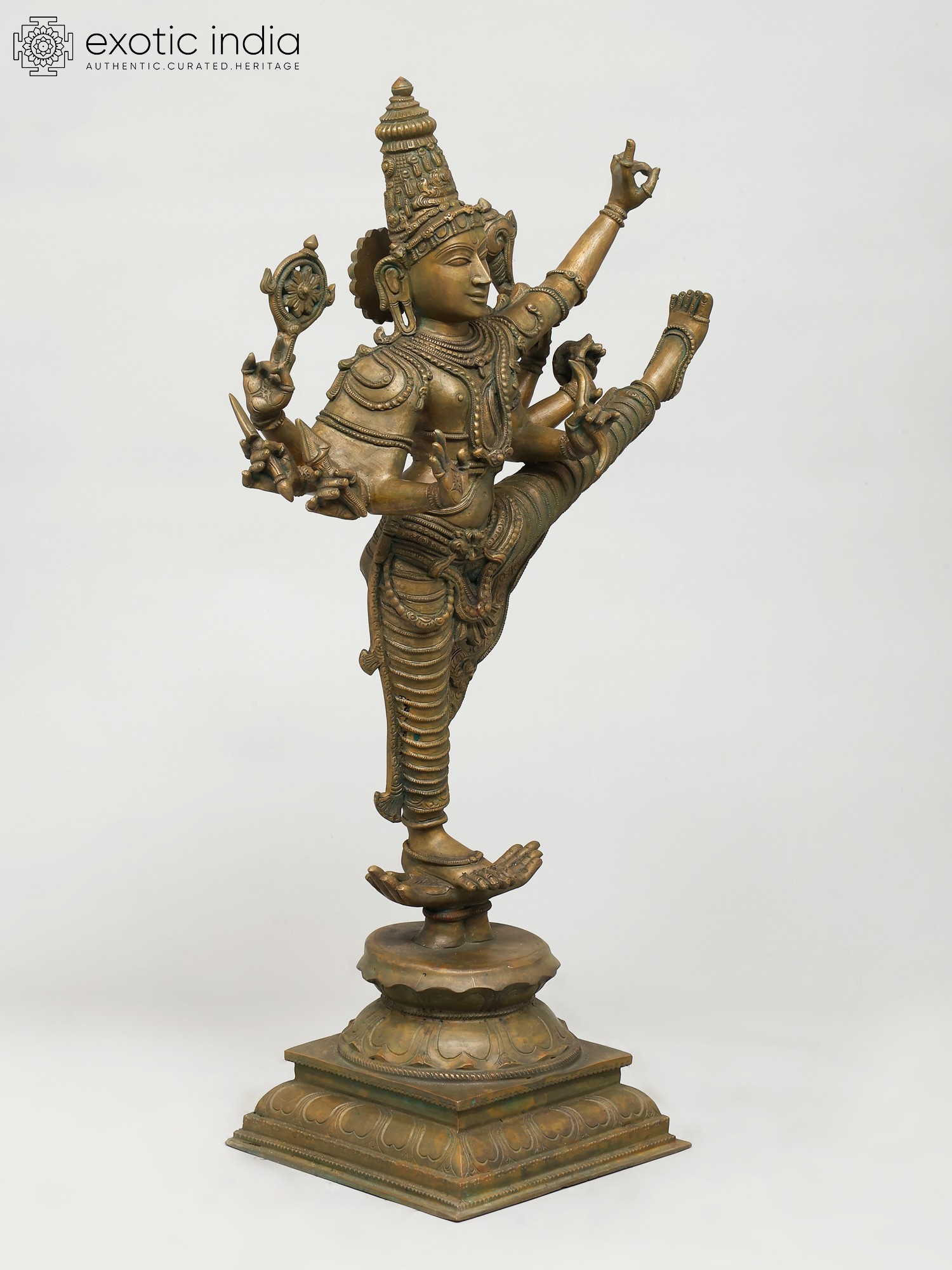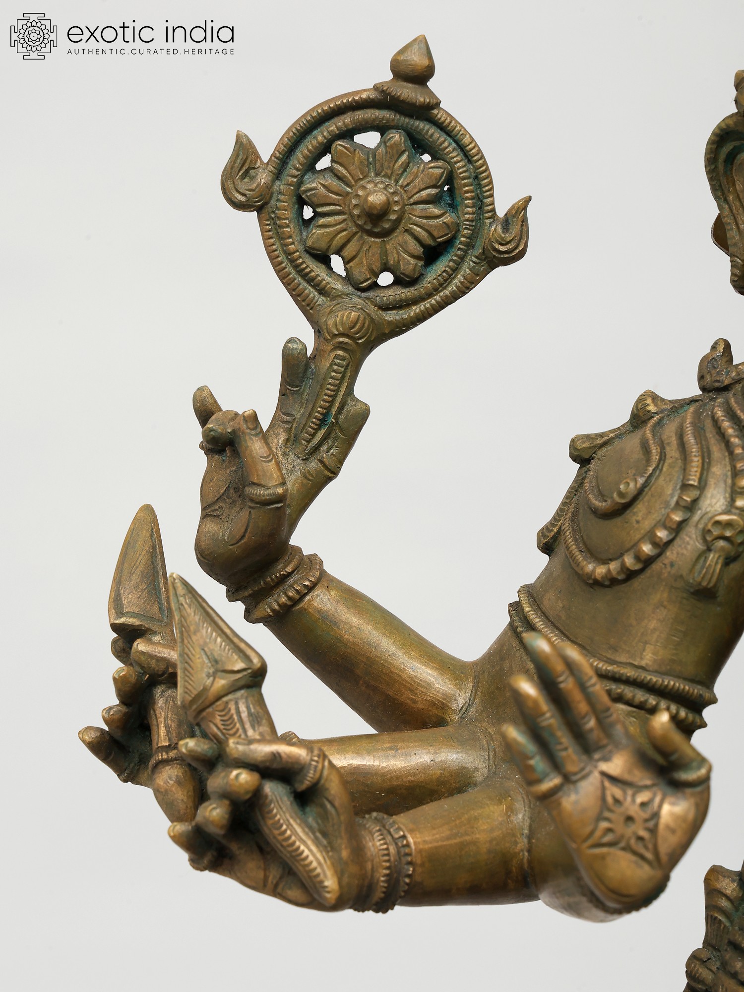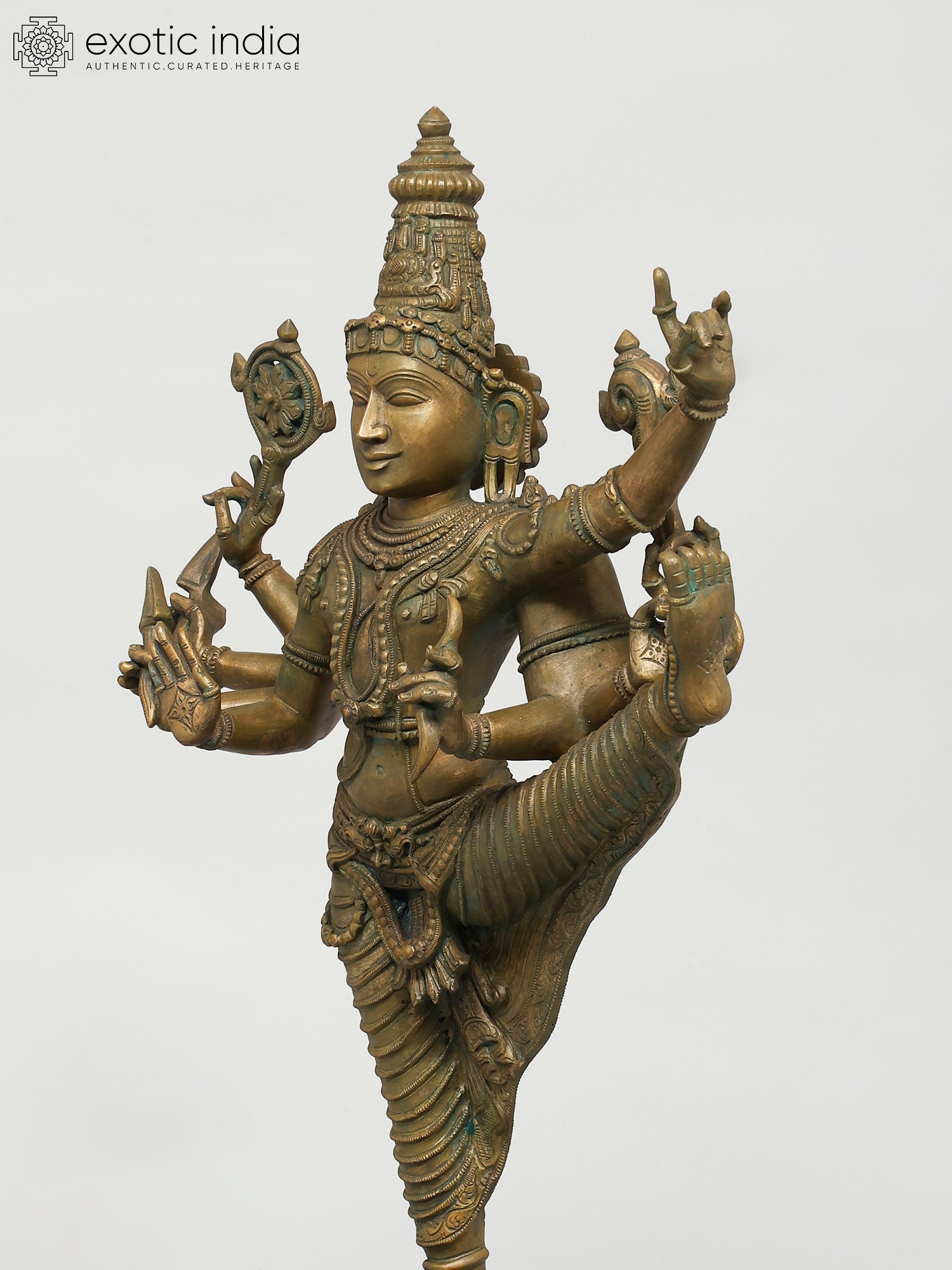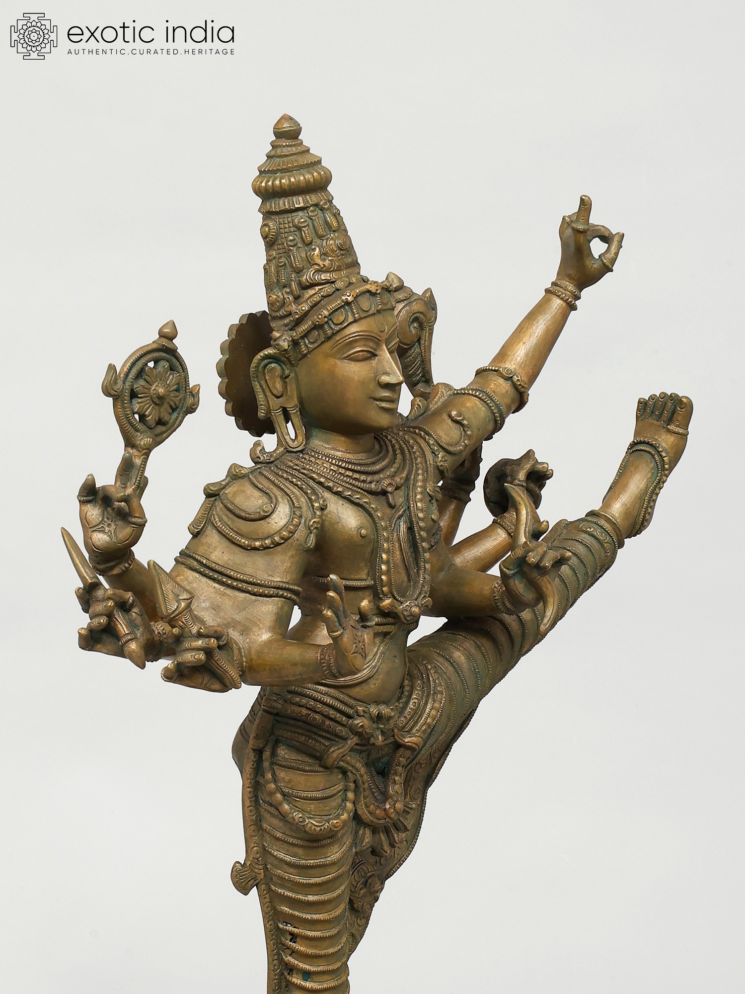 Focus on elements such as the dhoti of Vishnu, flowing with a realism that makes the metal appear like soft fabric as if swayed by an unseen breeze.