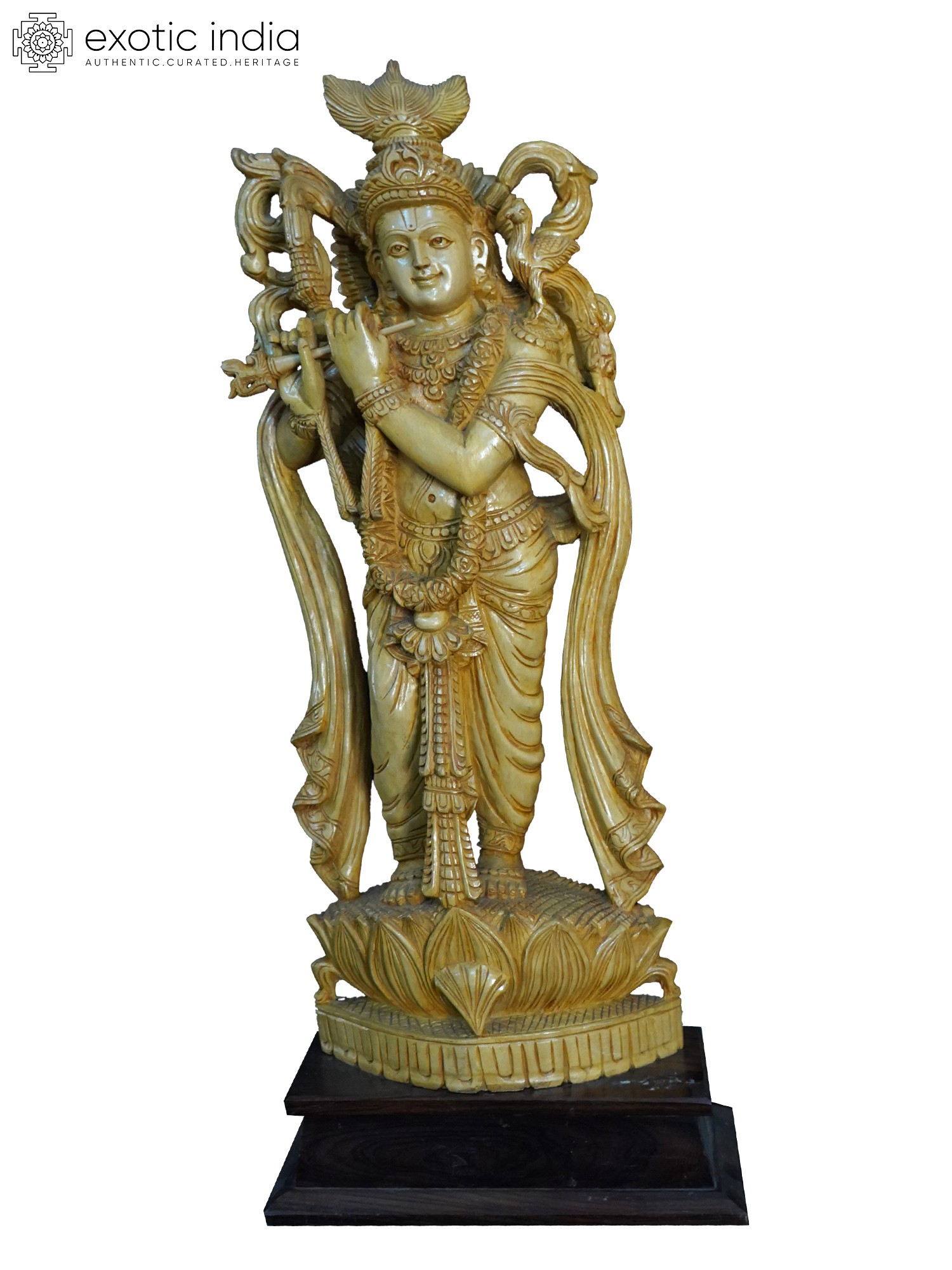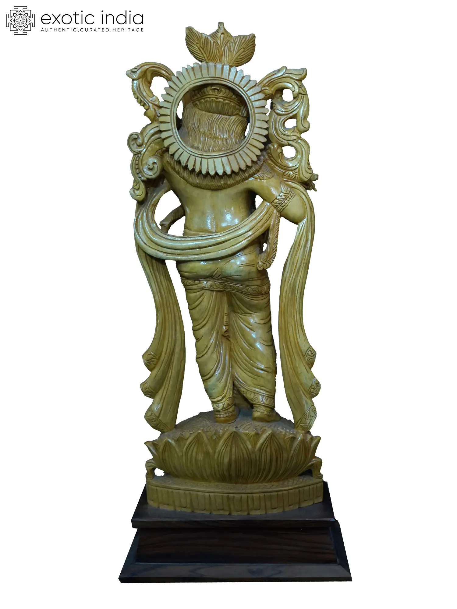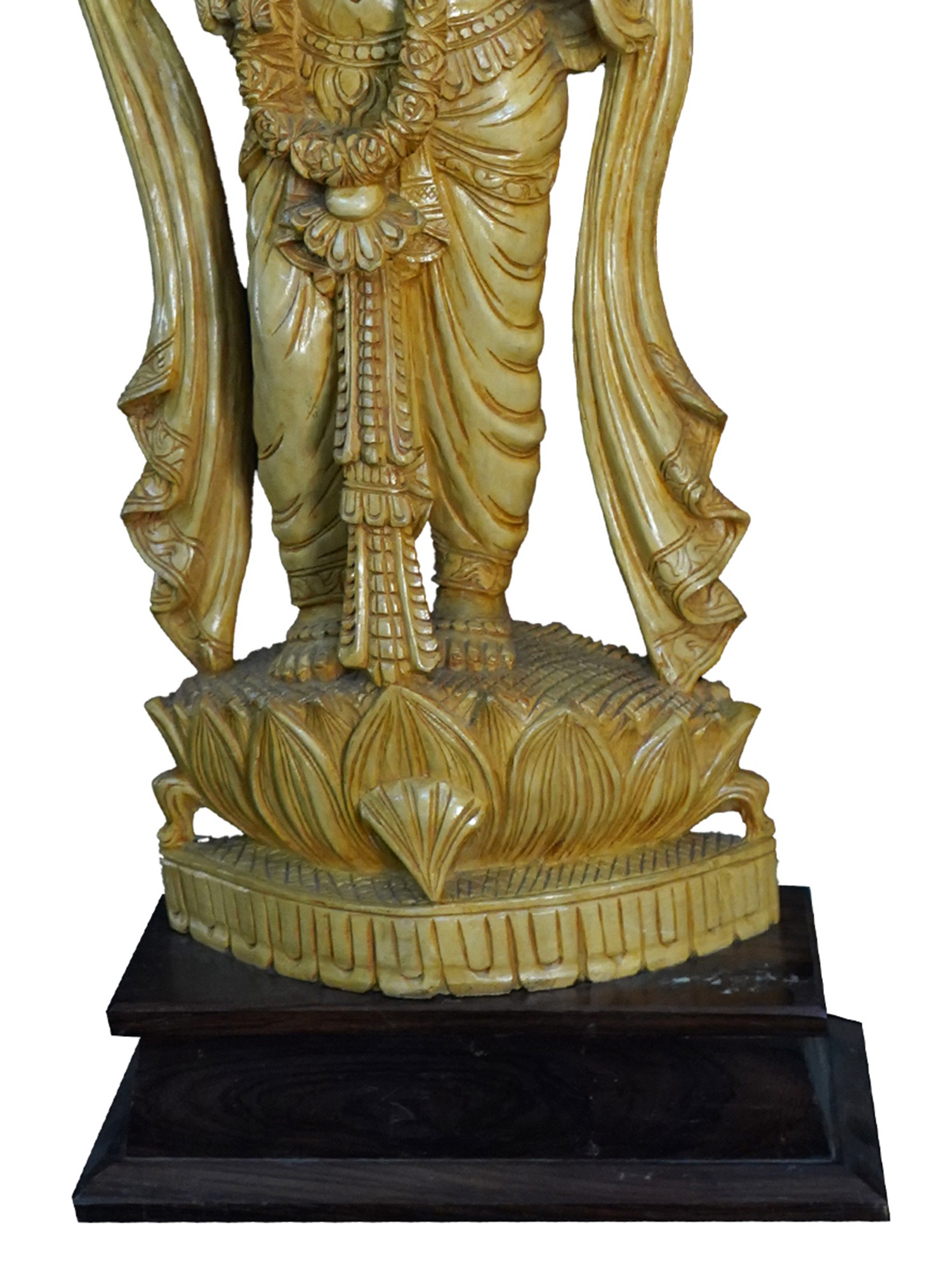 36" Large Wooden Colorful Ganesha, Gaja Lakshmi and Saraswati Wall Panel
