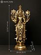 Gazing ahead with sublime expressions, Sri Vishnu carries his discus, conch, lotus, and mace- each weapon beautifed with elaborate tassles, an extravagant quality found in classic Hoysala artworks. Standing upright on the lotus pedestal with a lotus aura around him, Vishnu has no parallel in the three realms. No wonder the goddess of wealth and auspiciousness, Sri Lakshmi, garlanded him her beloved!