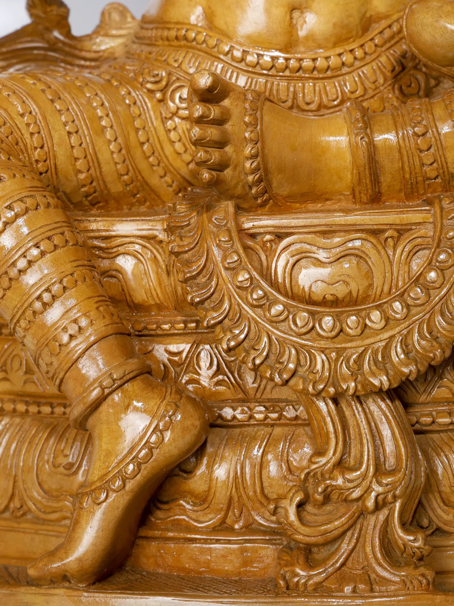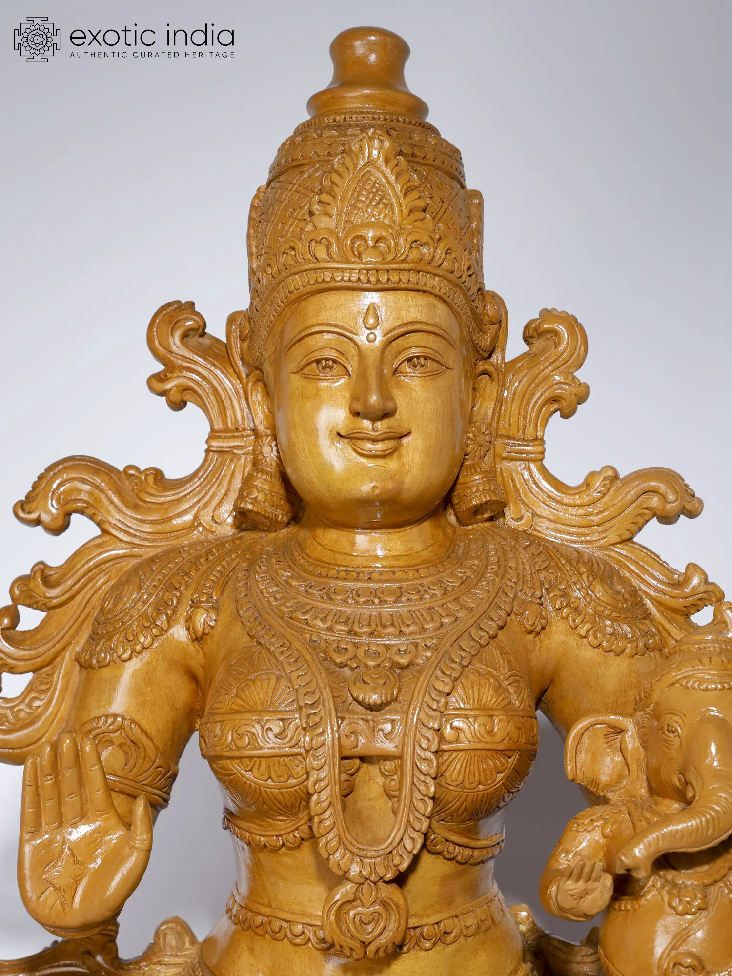Rich ornaments and detailed carvings unveil the beauty of goddess Parvati, while Ganesha is presented as a dotting toddler, smiling with his eyes and holding a Modak in his hand.