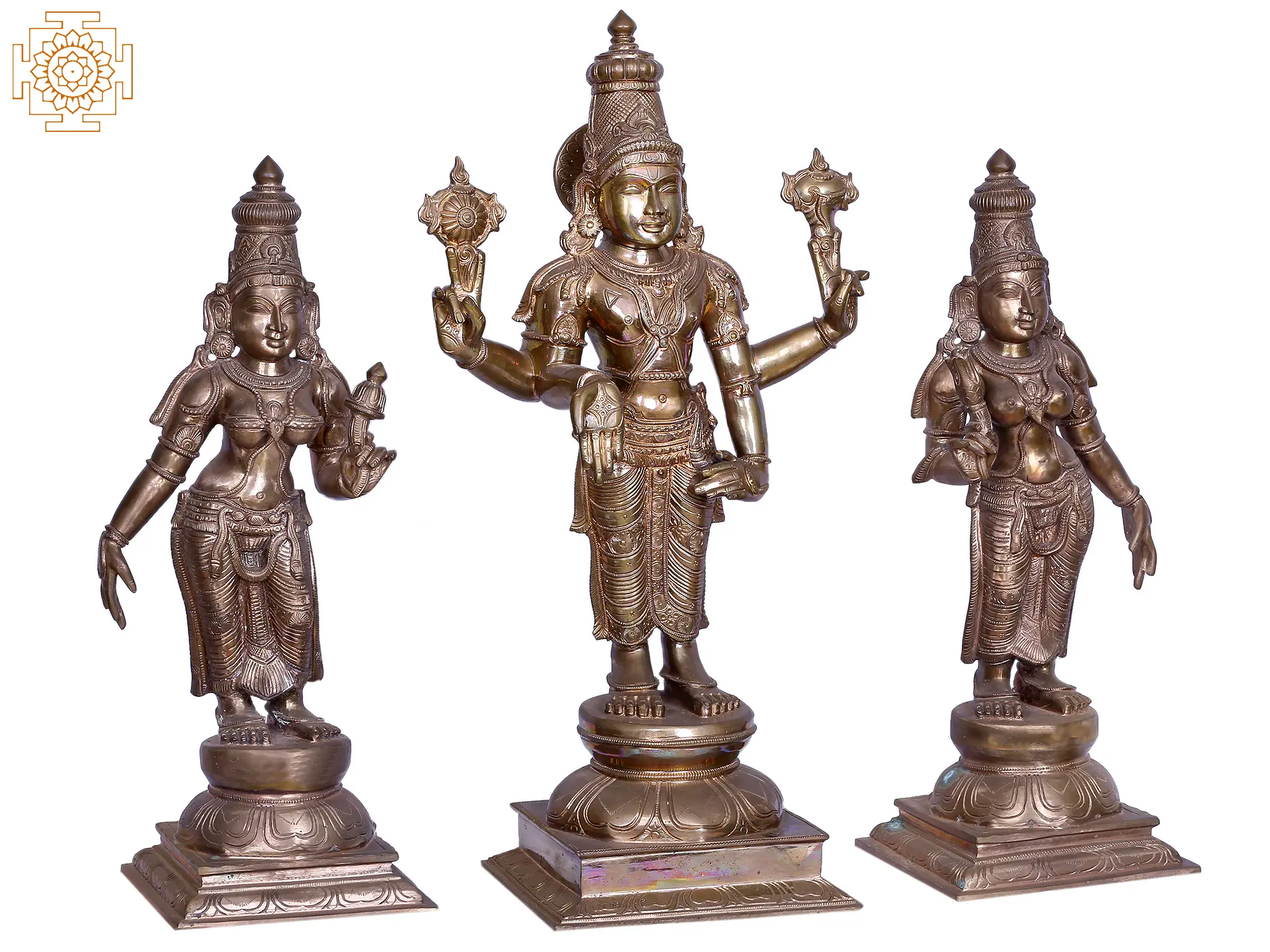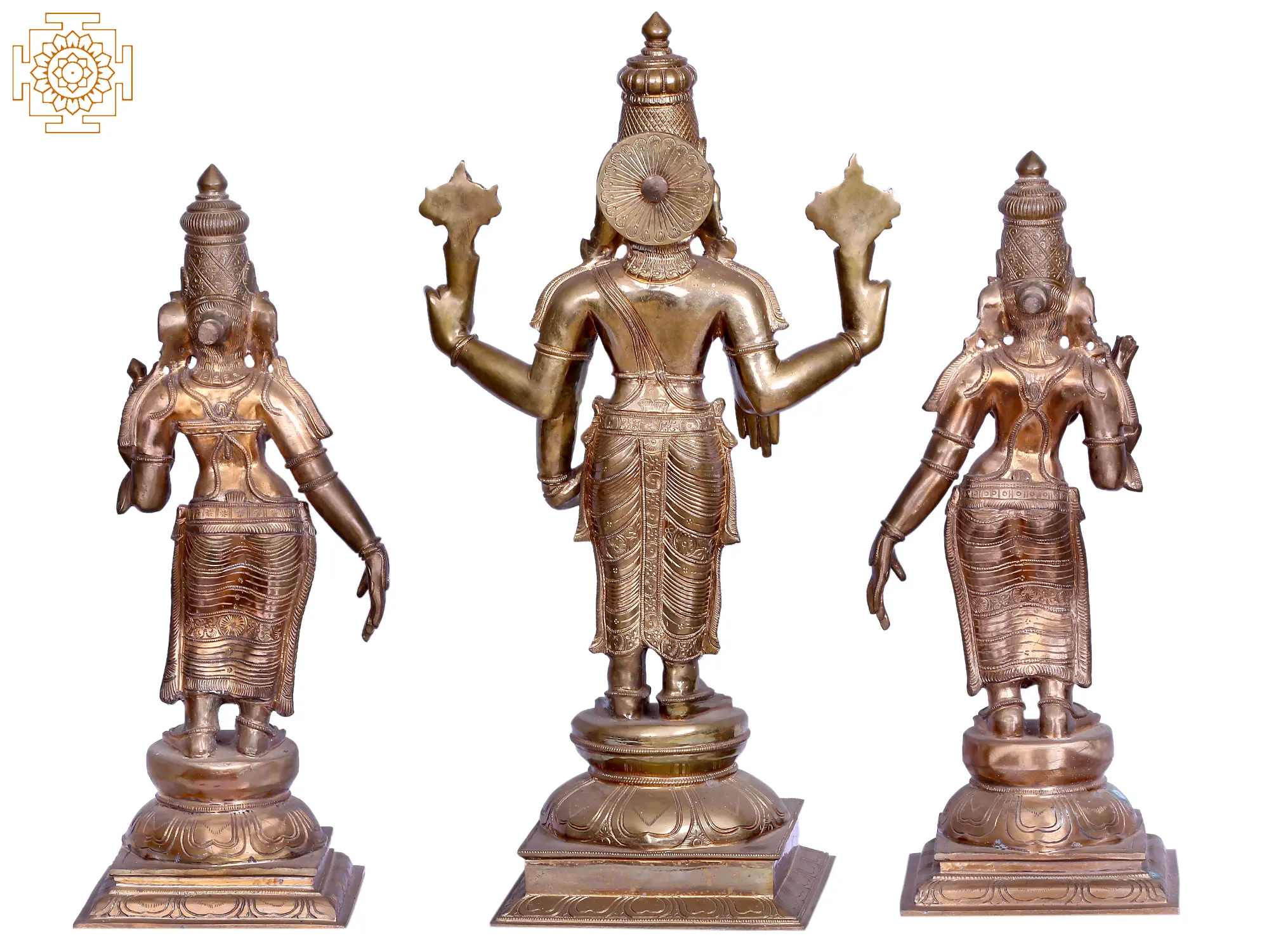 Together, all three stands for the harmonic fusion of authority, prosperity, and blessings, highlighting the cosmic balance that Lord Vishnu upholds. The universe is blessed by their heavenly presence, safeguarding the welfare and well-being of all beings.