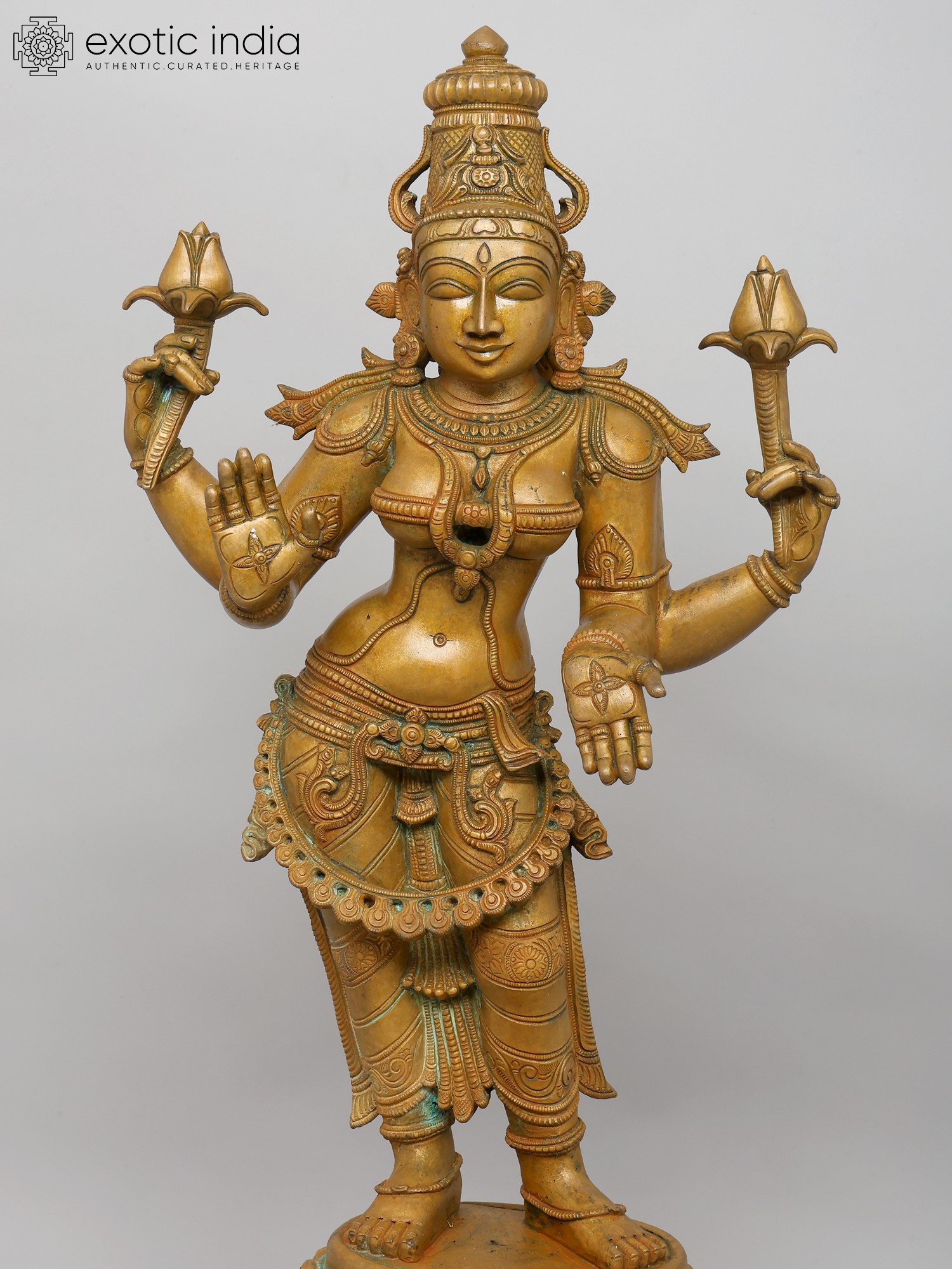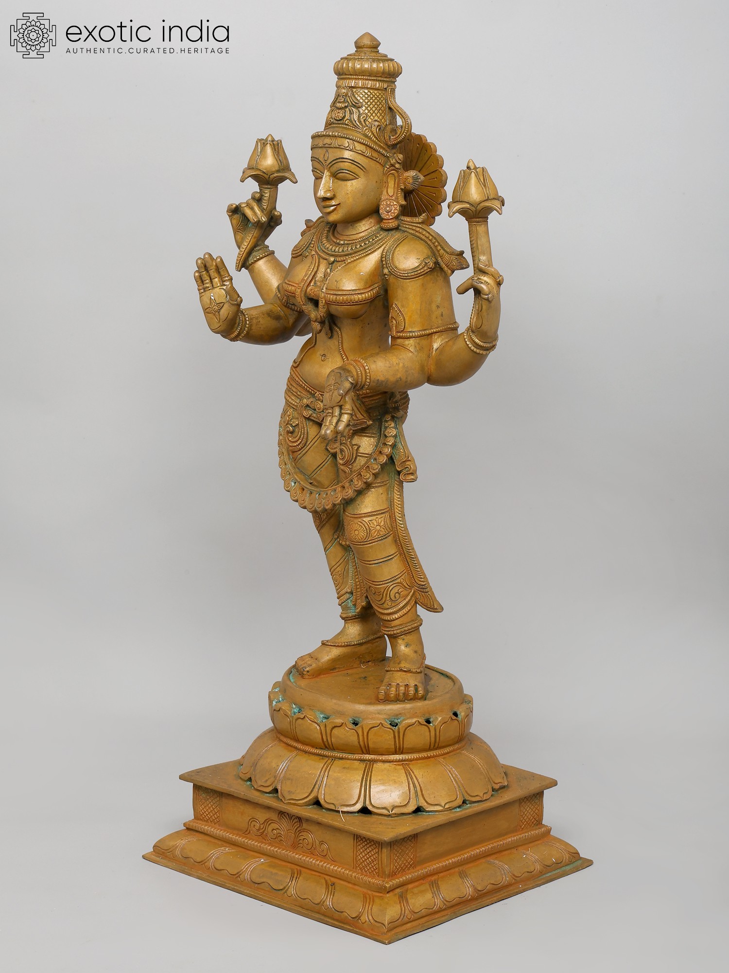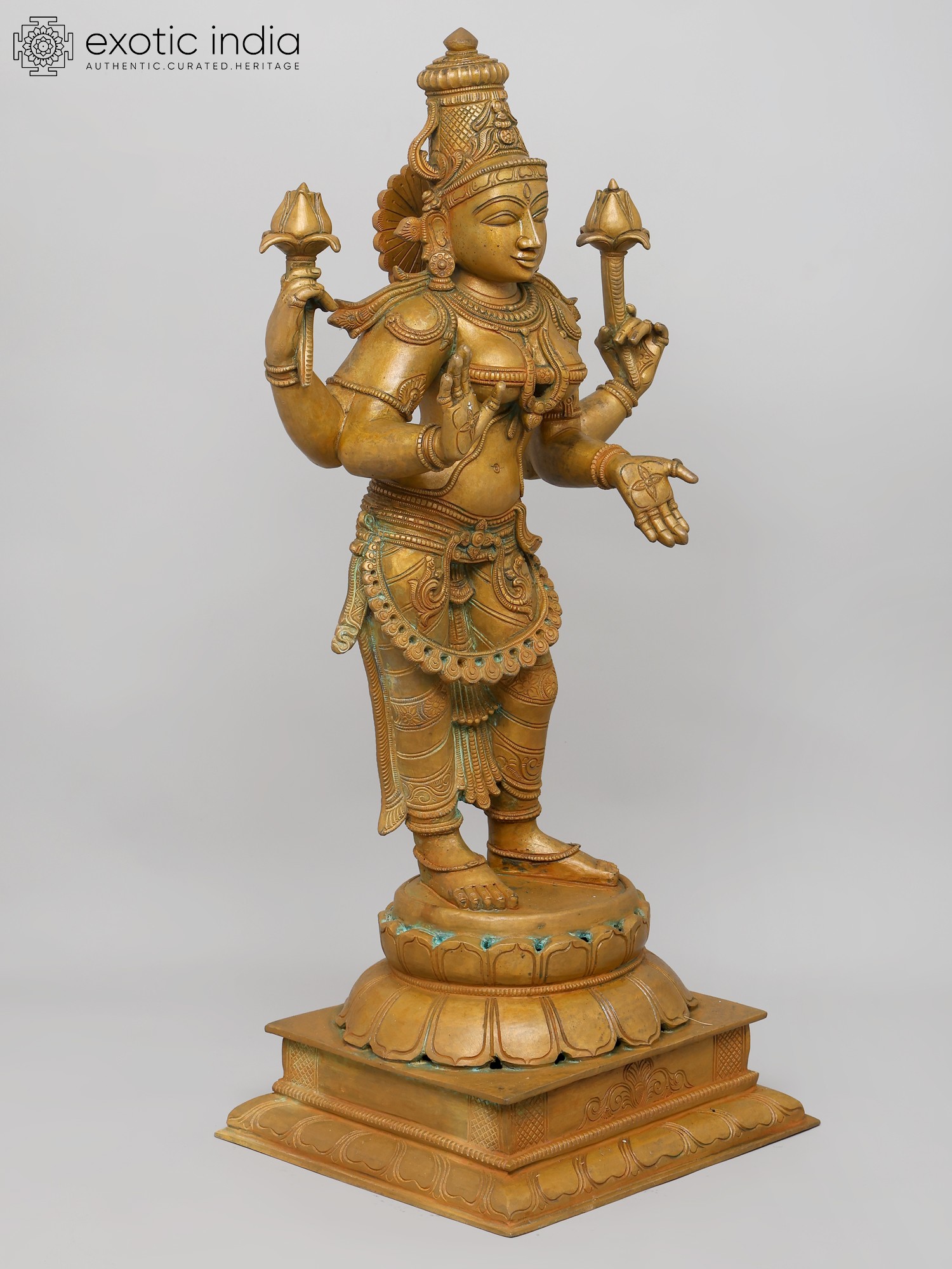 27" Standing Devi Lakshmi Idol on Lotus Base | Panchaloha Bronze from Swamimalai