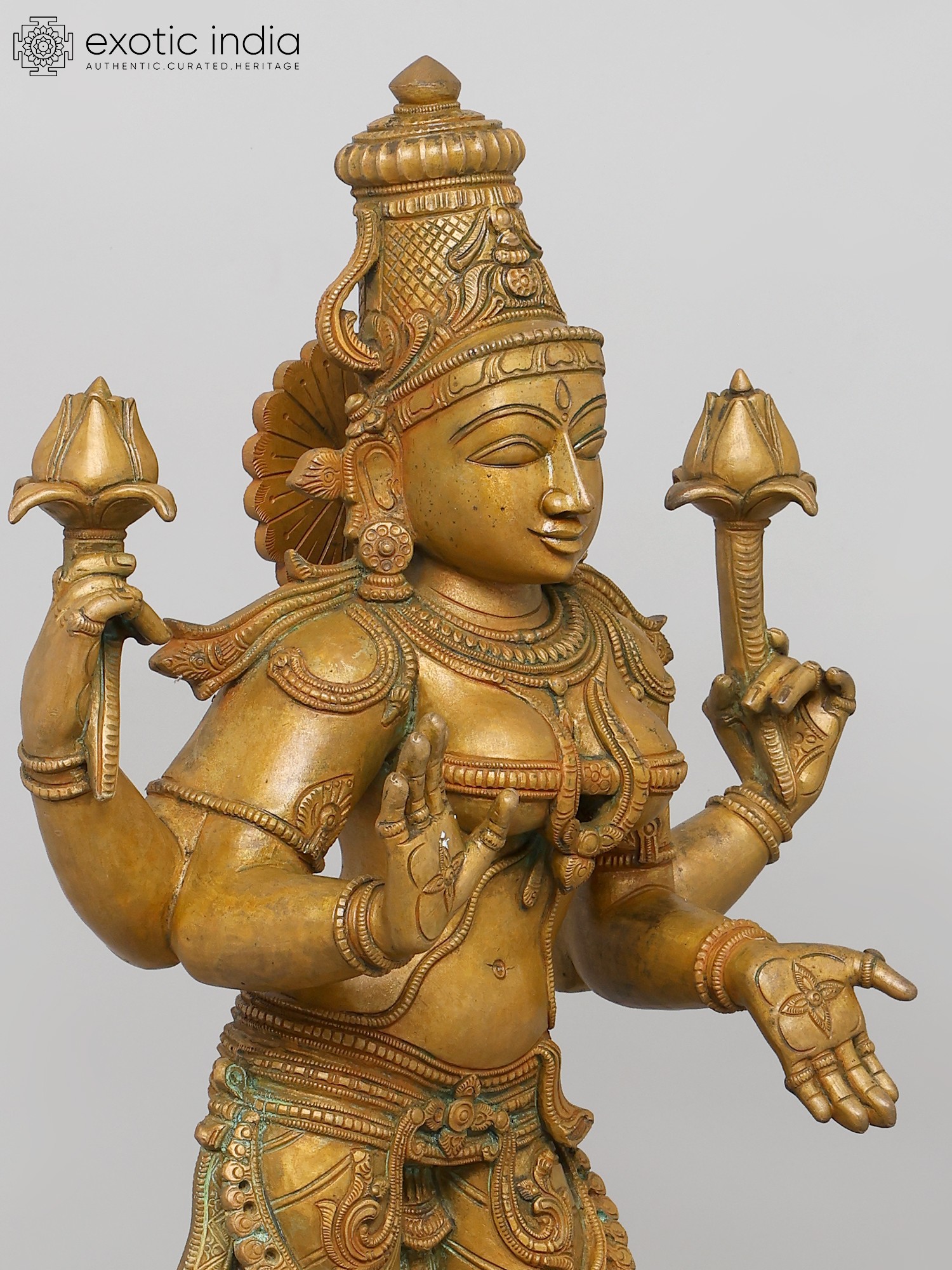 39" Large Four Armed Standing Goddess Lakshmi in Blessing Gesture | Madhuchista Vidhana (Lost-Wax) | Panchaloha Bronze from Swamimalai