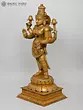 Crafted with exquisite artistry, this majestic bronze statue captures the benevolent essence of Goddess Lakshmi, the embodiment of wealth, fortune, and auspiciousness. Standing tall and radiant, the divine figure is depicted in a gesture of bestowing blessings, her presence radiating an aura of peace and abundance. This magnificent sculpture is a testament to the rich traditions of Indian metalwork, meticulously sculpted to honor one of the most revered deities in the Hindu pantheon. The goddess stands on a beautifully detailed lotus pedestal, a symbol of purity, beauty, and spiritual enlightenment, reflecting her divine nature and her association with the celestial realms. Her graceful posture and serene expression invite contemplation and devotion, making this statue a focal point for any sacred space or a cherished addition to a discerning collector's art ensemble. The lustrous bronze finish further enhances her divine glow, imbuing the piece with a timeless elegance and a sense of sacred power.