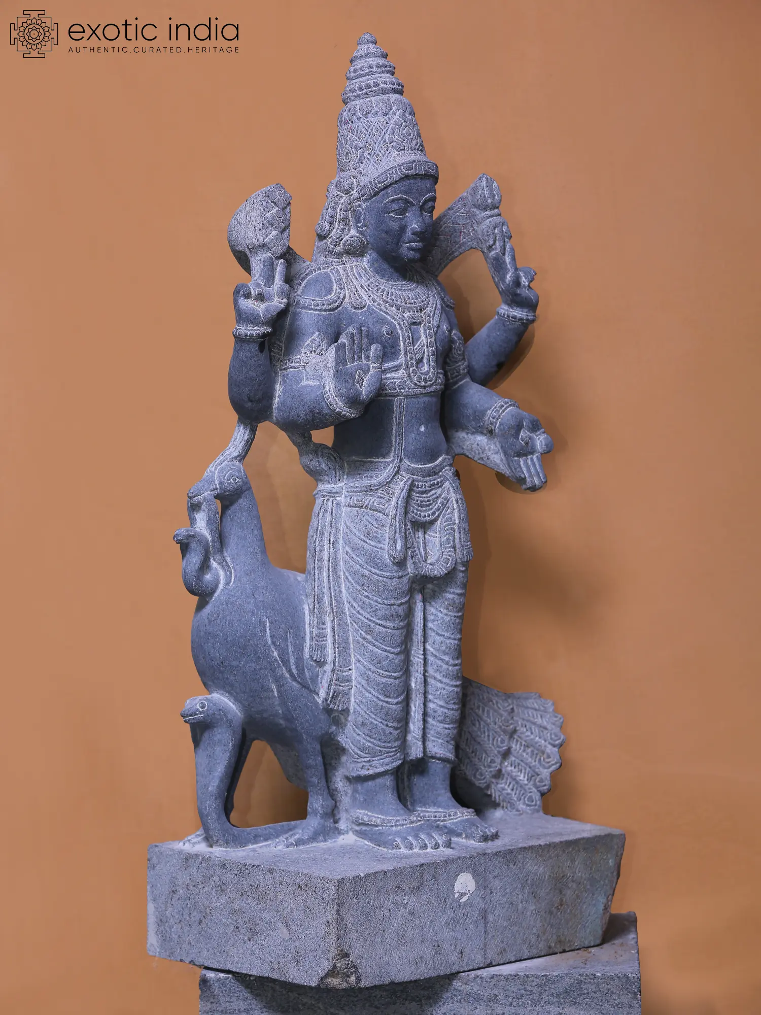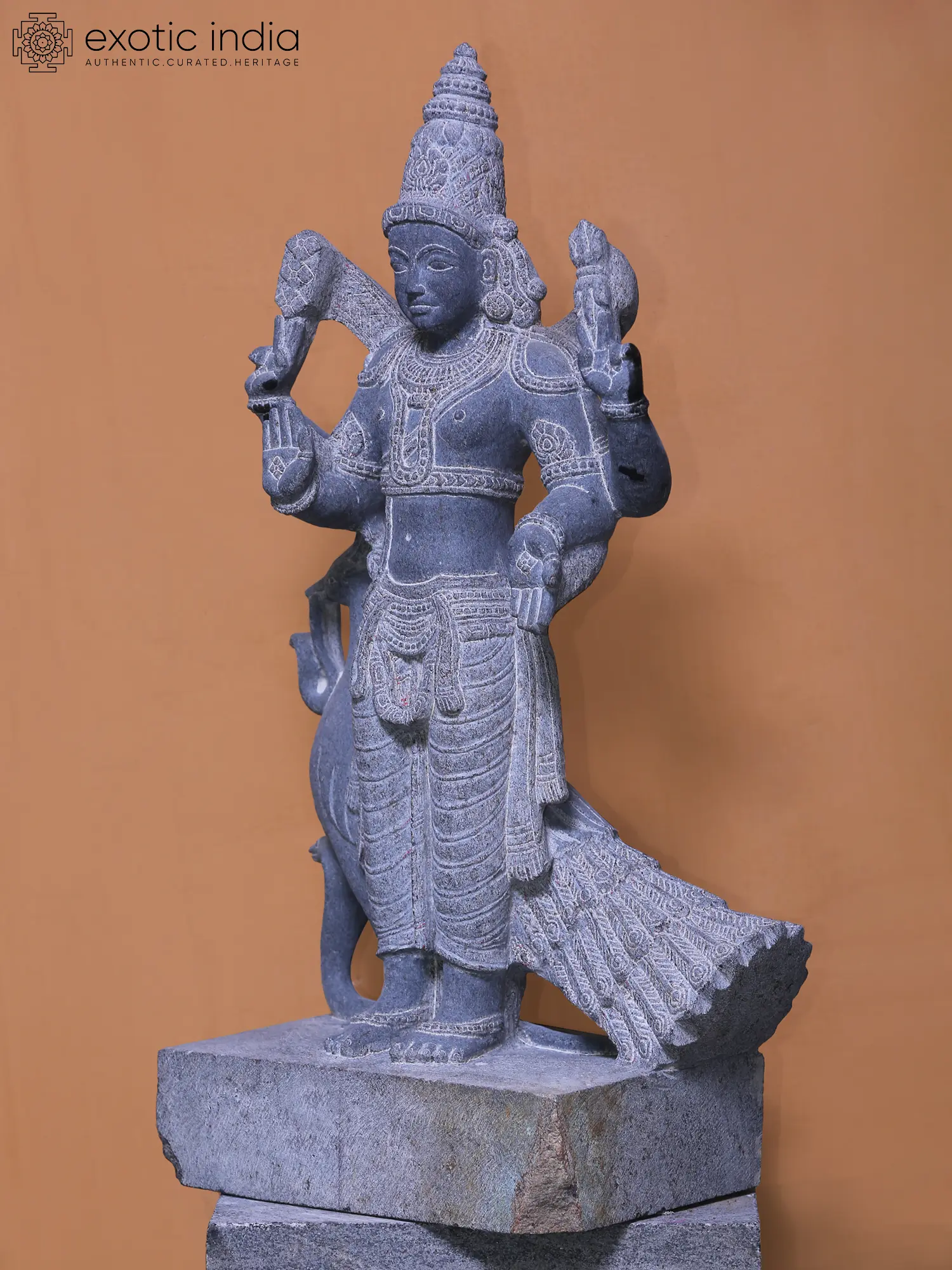 In this 2-foot granite statue, the Lord of Devasena Kumara or Murugan appears in a benevolent mood.
